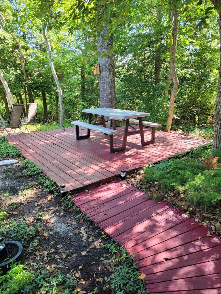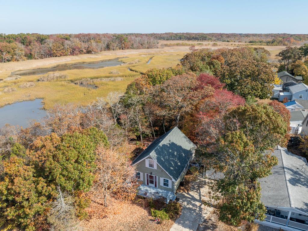 Forest meets the ocean at this charming log cabin one block from the Delaware Bay. Enjoy the very secluded back yard, surrounded by state land with a view of a small tidal pond. Three bedrooms include two queen beds and a set of twins, with two of the bedrooms upstairs and one off of the kitchen. Two full baths and an outdoor shower. Open plan kitchen and dinning room. Fully equipped kitchen.