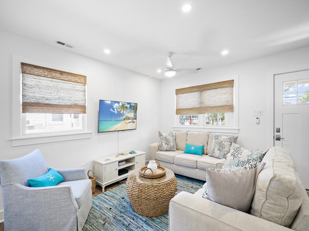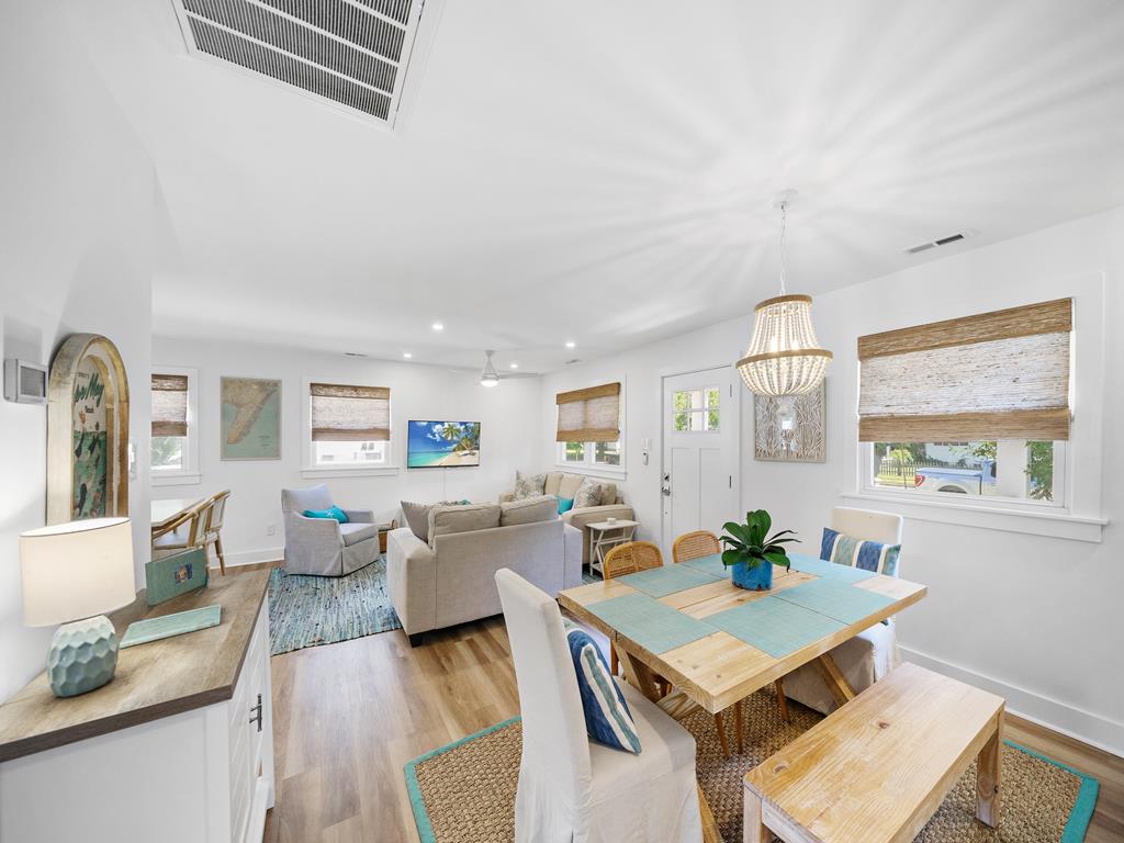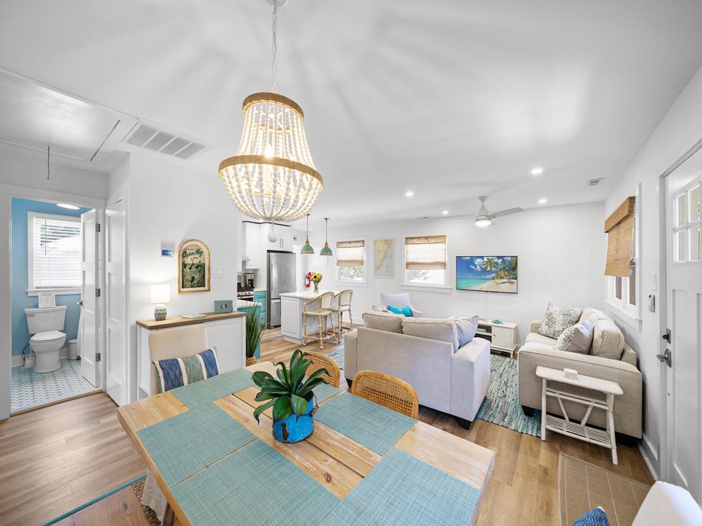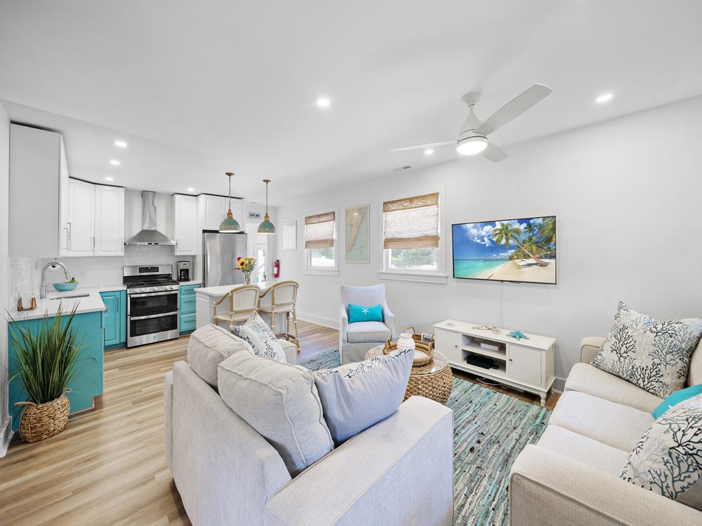Come enjoy a stay at Sea Star Cottage, a super stylish home close to Cape May's downtown and beautiful beaches! As soon as you arrive you are welcomed by the matching front porch swings where you can enjoy your early mornings or afternoons/evenings after a full day in Cape May. Upon entering you are met with an open concept living/dining/kitchen layout that is both spacious and inviting. The kitchen is fully stocked for all your cooking needs, dining table seats 6 with additional island seating for 2, and the living space has a comfy couch and chairs for all to kick back and relax. The 2 guest bedrooms, one with a full bed and the other with a pyramid bed (twin over double) plus a twin and hall bath with soaking tub are off the main living area. The primary bedroom is in the back of the house past the powder room and laundry room. It boasts tons of natural light, privacy and a beautifully tiled custom walk-in shower. The cottage has a private fenced in yard with Adirondack chairs, and a newly finished custom indoor/outdoor recreational retreat with a 55" smart TV, couches, ping pong table, darts and other games for those fun nights with family and friends! Stacked parking for 3 cars and plenty of free street parking. $325 cleaning fee on all stays. Come enjoy all Cape May has to offer while staying at this adorable cottage!