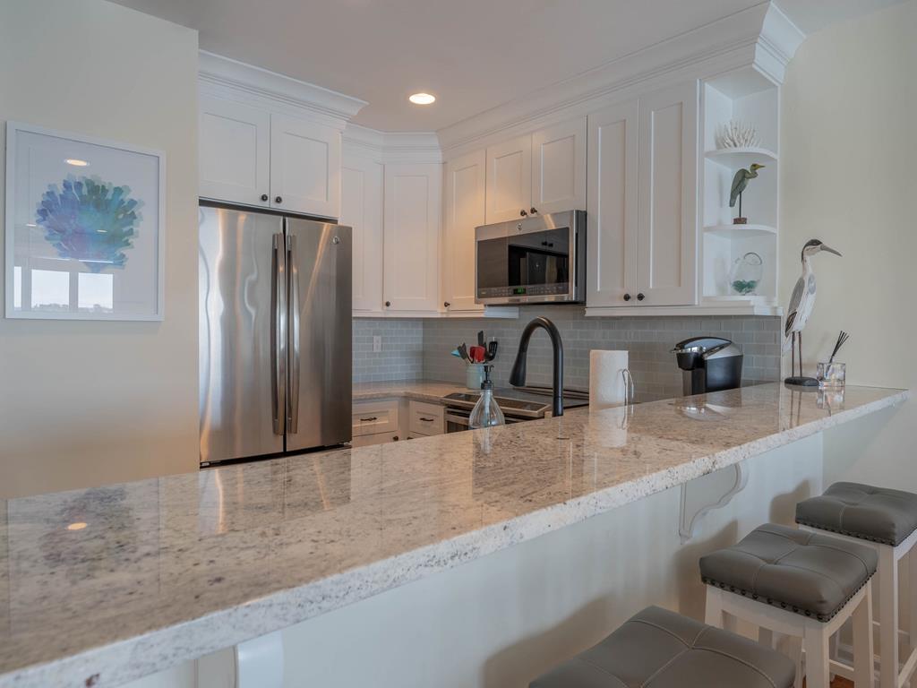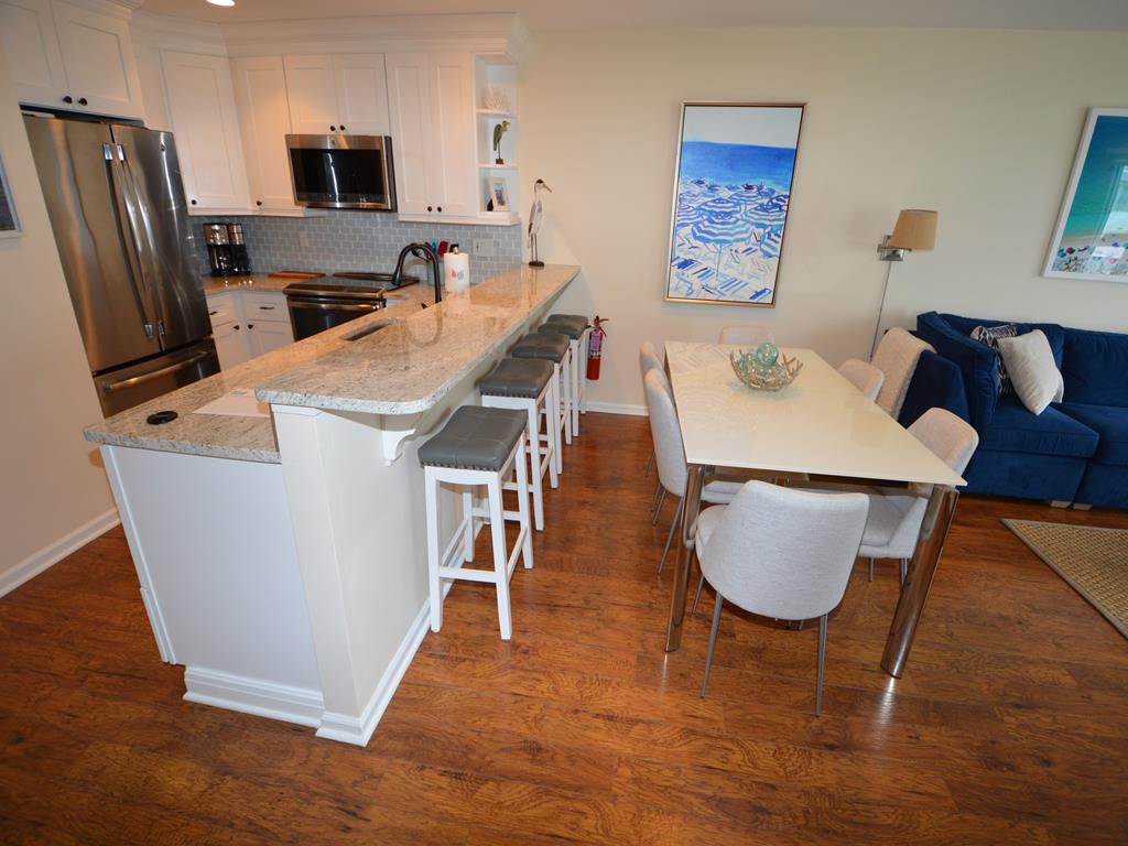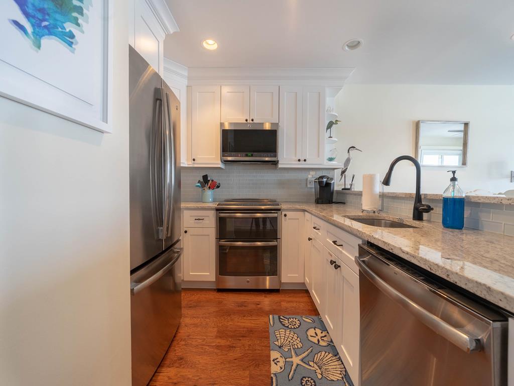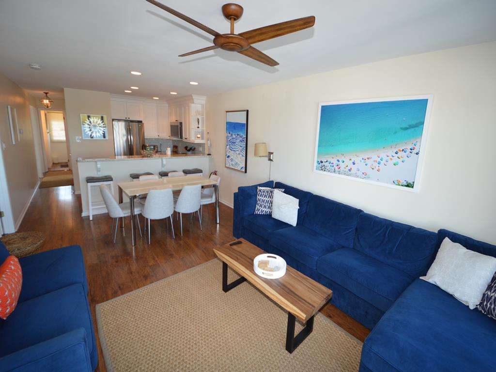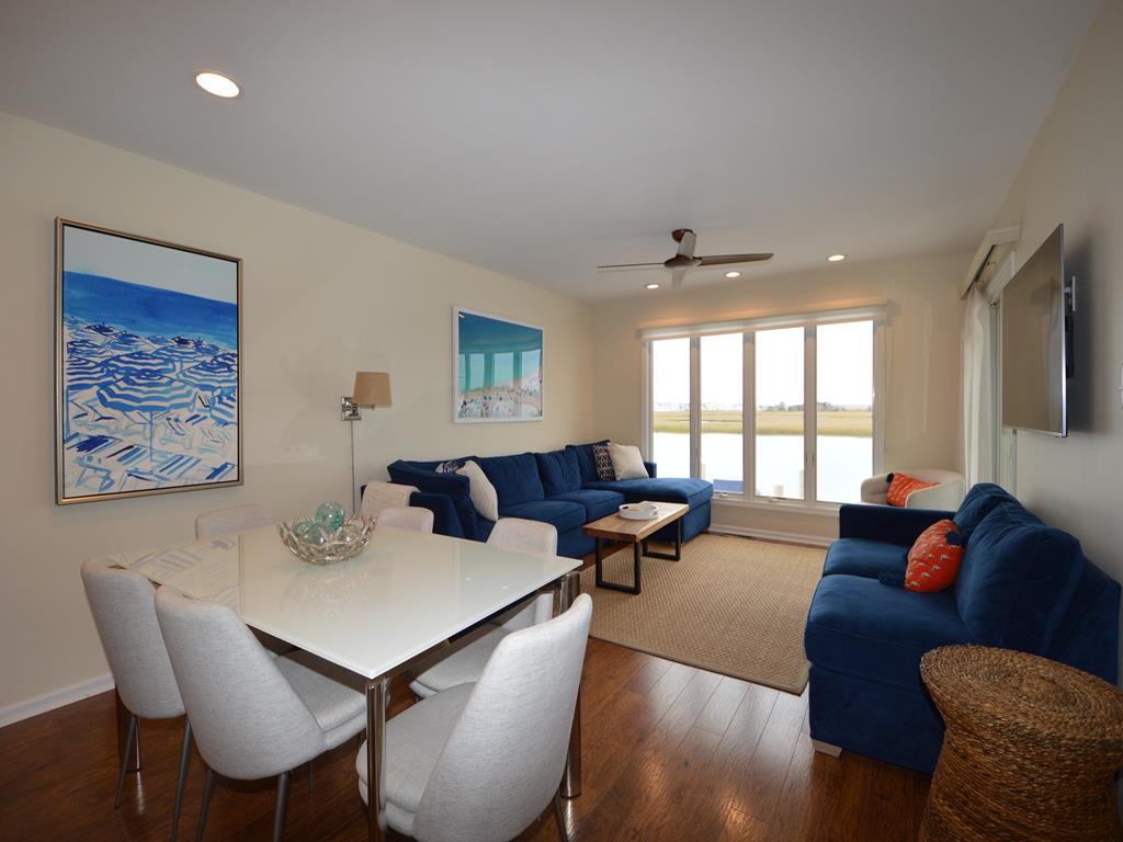 Bayfront! Friday to Friday Rental. Attractive 1st floor condo unit located on the bay in Avalon. Unobstructed views of the bay and wetlands, with easy boating access to the ocean. There is a private, covered deck that leads out to the dock and boat slip. The living area and master bedroom face the water. Master bedroom has ensuite bath with walk in shower and king bed, other bedrooms have a queen and the third bedroom has a twin bunk bed with an additional single bed. Updated interior decor and newer appliances. Proof of boaters insurance required for use of slip.