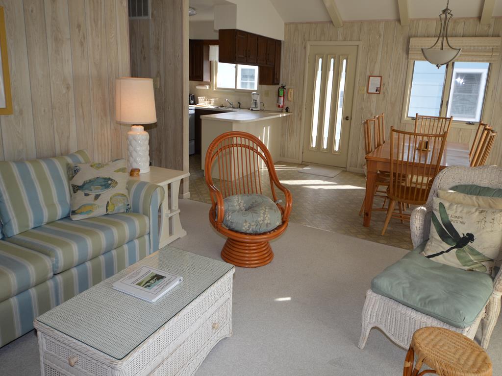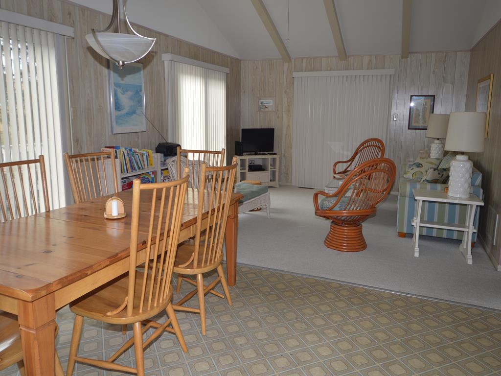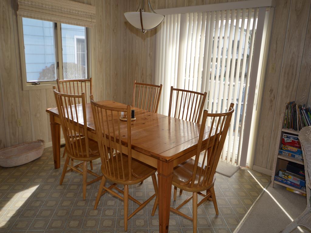 Friday to Friday rental property. This cute, cozy seashore home has three bedrooms and 2 bathrooms. Enjoy morning coffee or relax after a day at the beach on the wrap-around deck that features a picnic table seating 8 and Adirondack chairs. The living area opens onto the deck and includes a dining room and living room. No worries, Wi-Fi and an HDTV are also available. A bedroom suite has a queen bed and bathroom with a walk-in shower. There is another bedroom with a queen bed and the third has twin beds. A laundry room with a washer and dryer has access to the deck and backyard. More conveniences include an outside shower, a gas grill