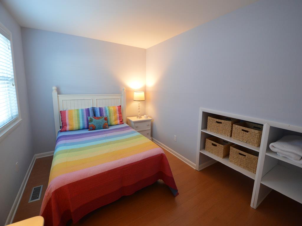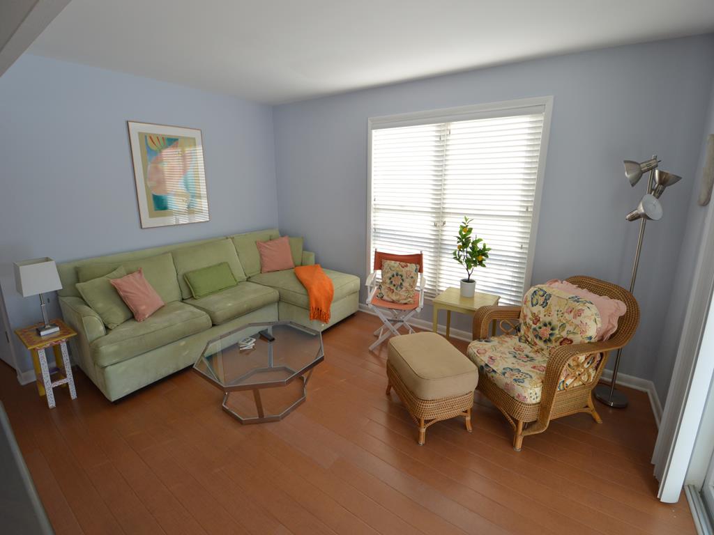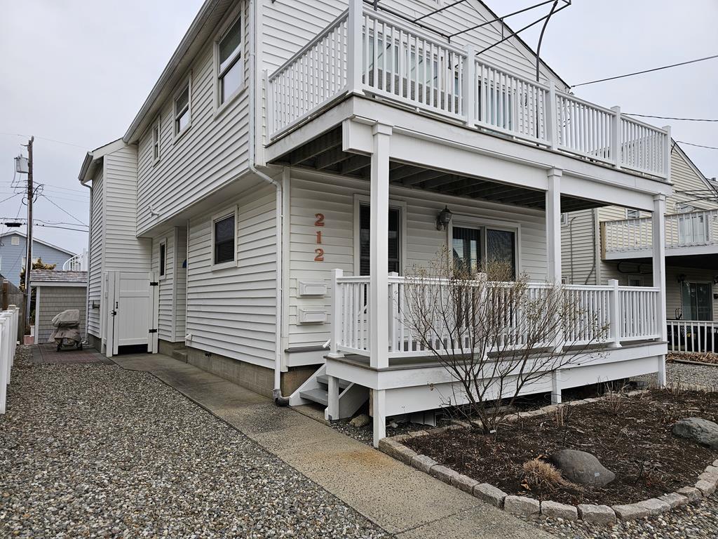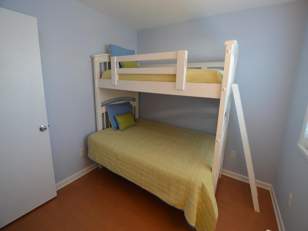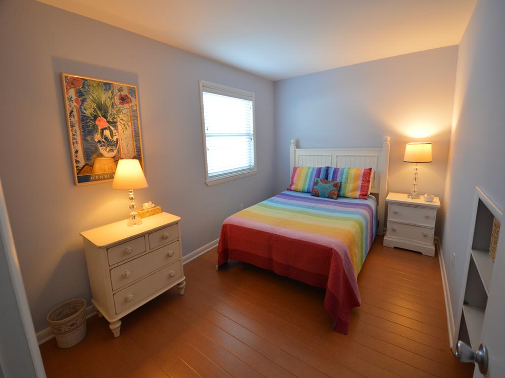 Prime south end location for your Stone Harbor vacation! Attractive 1st floor condo features a covered porch with southern exposure, perfect for outdoor meals and relaxing. The main living space has an open floor plan with ample natural light. This area has comfortable seating, a Smart TV with cable, a high top dining table and 4 stools, and fully equipped kitchen. The hall bathroom has a walk in stall shower. There is a stack washer and dryer. The primary bedroom has a queen bed. This room has a full size closet plus extra storage nooks. The guest bedroom features a twin over full size bunk bed. This room also has a closet. There is an outside shower, propane gas grill, and off street parking exclusive for this unit.