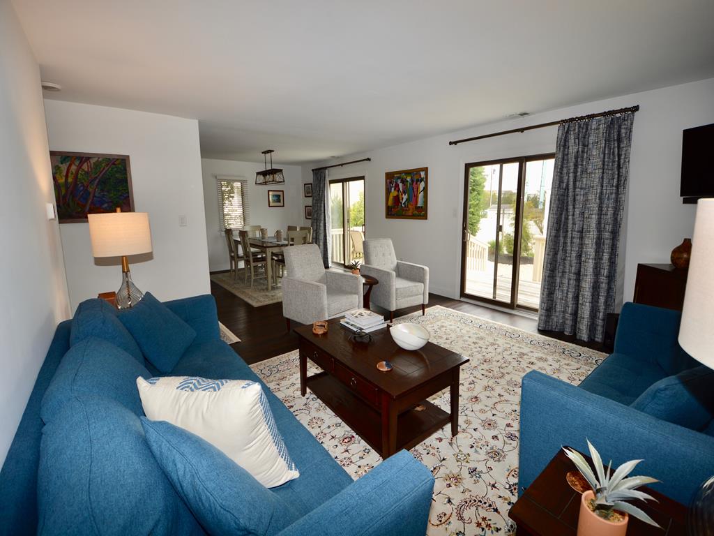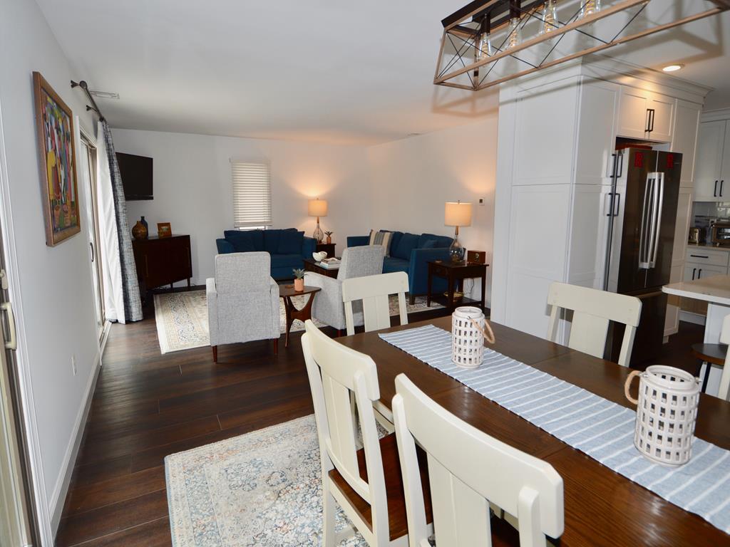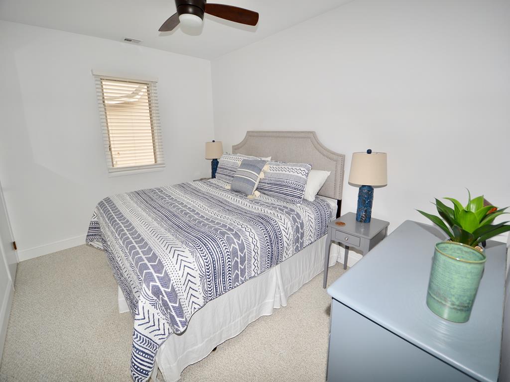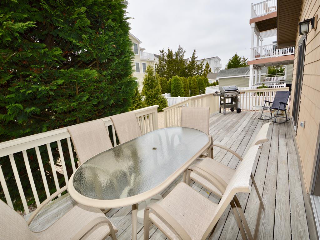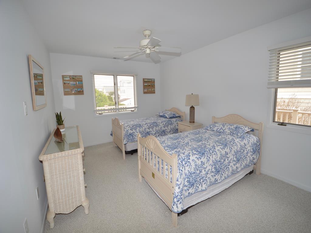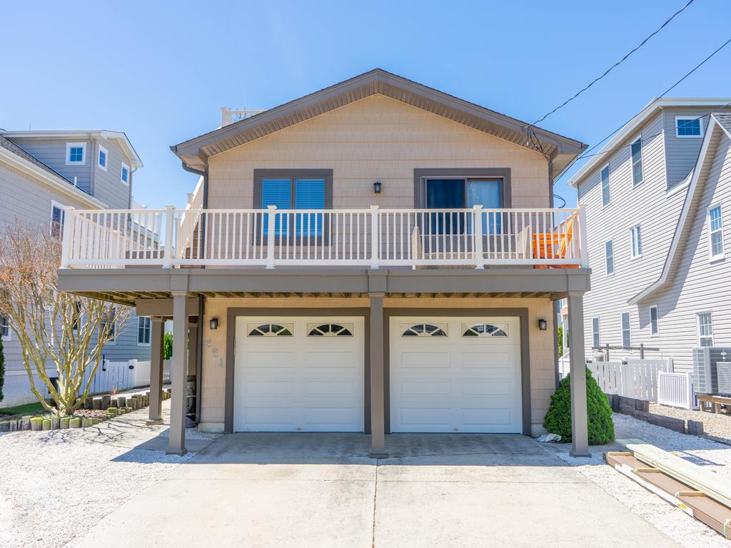 Two story traditional layout with foyer, newly renovated kitchen, dining and living area on the first floor open to rear yard and sun deck. One full bath and a bedroom with a king size bed also located on this floor. Interior entrance to a large 2-car garage, with washer/dryer and extra refrigerator. Second floor has 2 bedrooms, one with a king size bed and one with a set of twin/trundle beds. There is a full bath in the hall and access to the 2nd floor deck off the bedrooms with a staircase leading to a roof top deck. Well equipped and tastefully furnished throughout. conveniently located within 5 blocks of town center, 2 blocks to beautiful wide beaches and 2 blocks to tennis/basketball courts and playground on 39th Street. Sleeps 8 comfortably. Friday to Friday rental.