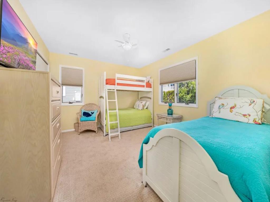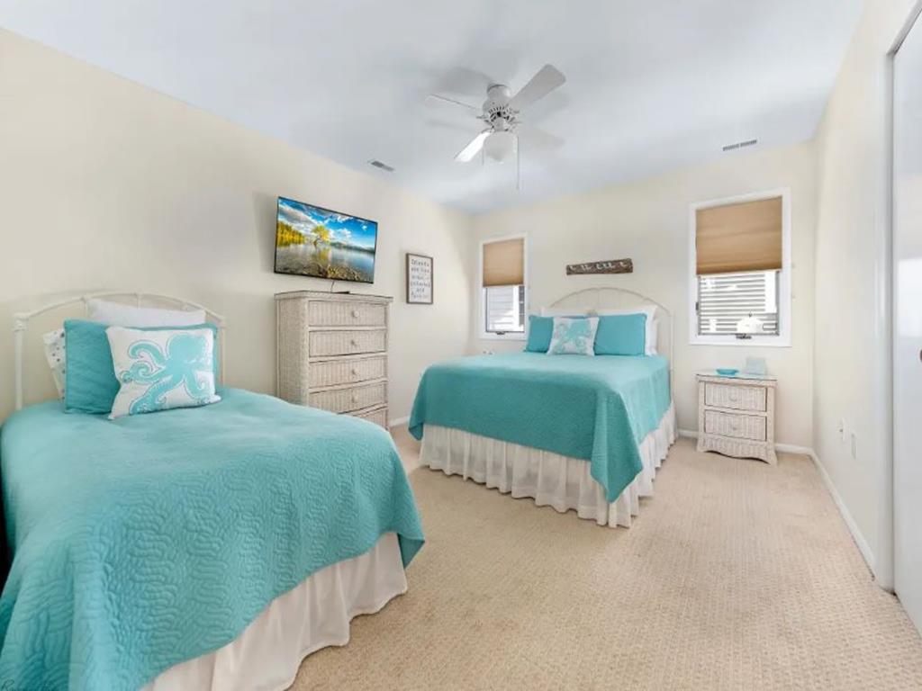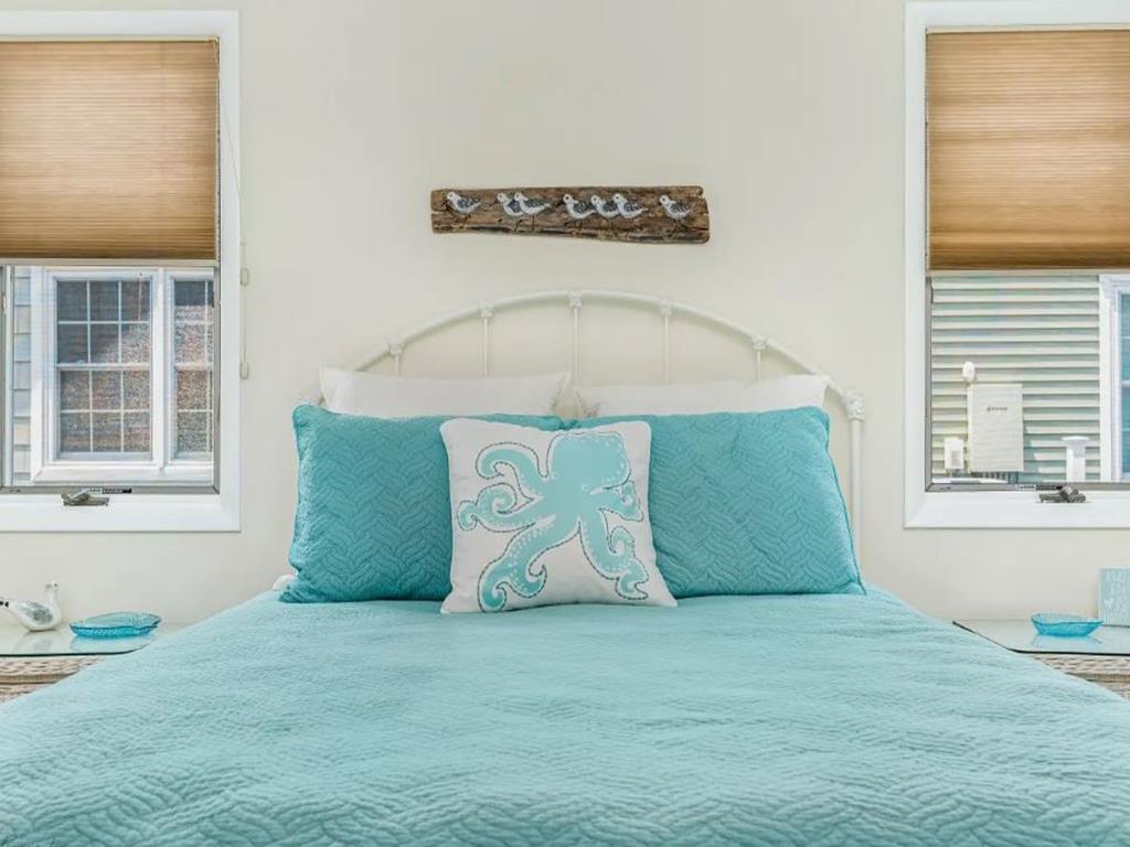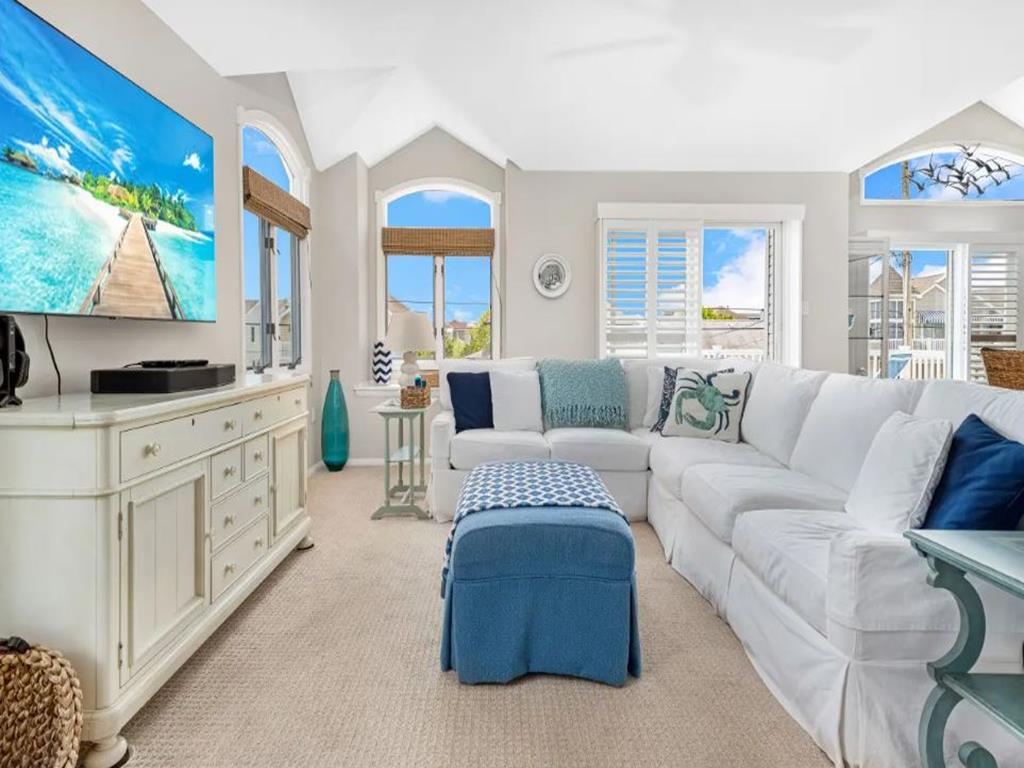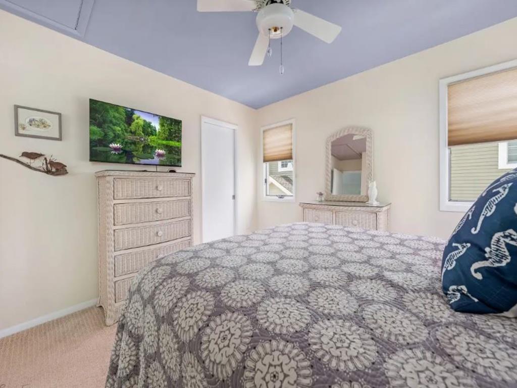 Four bedroom, two floor Avalon beach style house with three full bathrooms. The downstairs is perfect for kids with two bedrooms, 1 with a twin bunk, trundle and a queen bed, 2nd bedroom a queen bed, shared bath and smart TV's in each room. Our living room, kitchen, and dining room are located upstairs in an open floorplan. Two more bedrooms are on the 2nd floor, 1 king adn the 2nd bedoom with 2 queens, each with smart TV's and ensuite baths. A large deck with a gas grill and patio furniture is perfect for al fresco dining with the family, watching the sunset, or sunbathing.