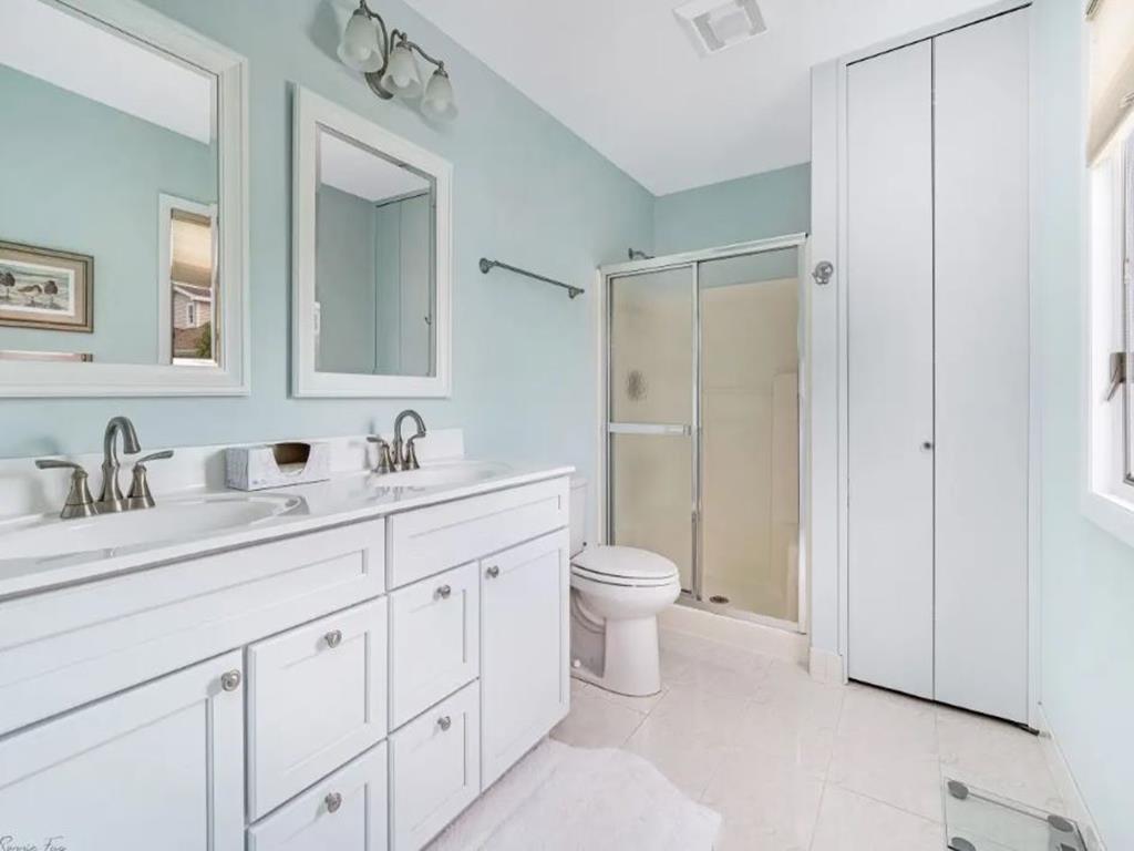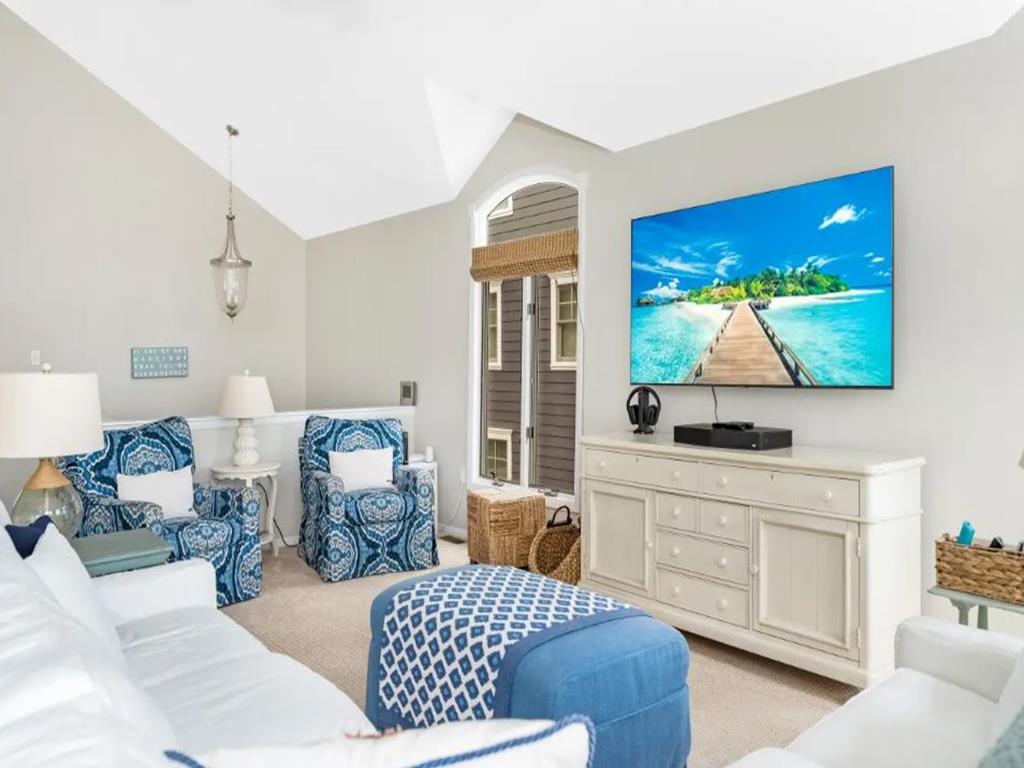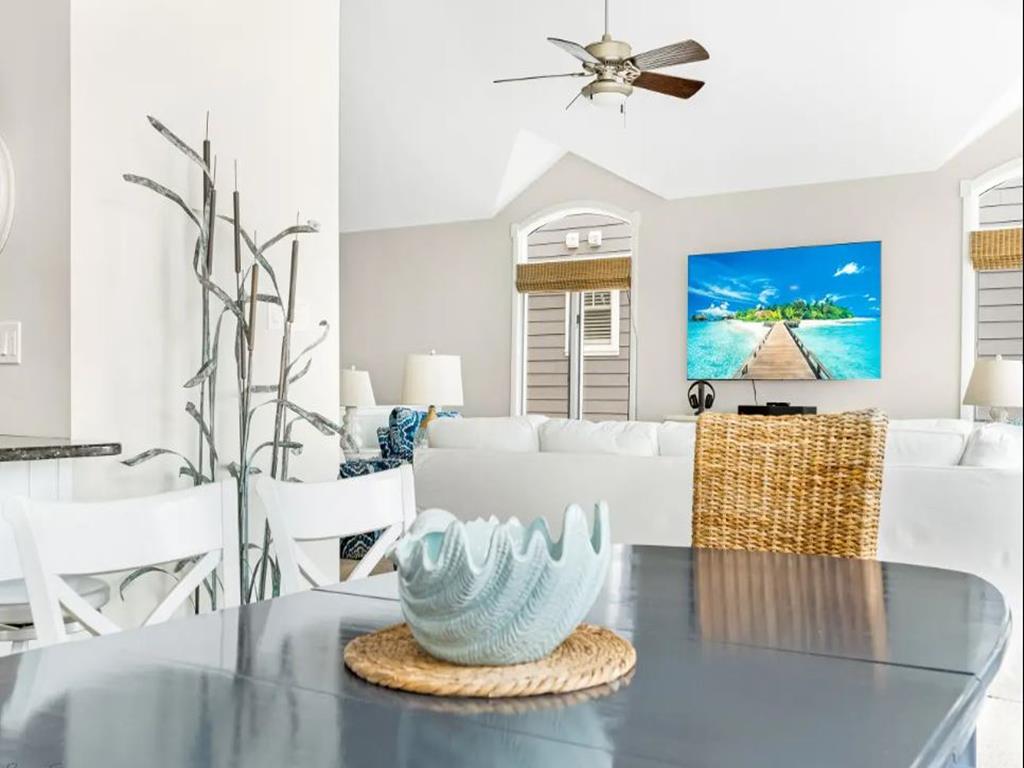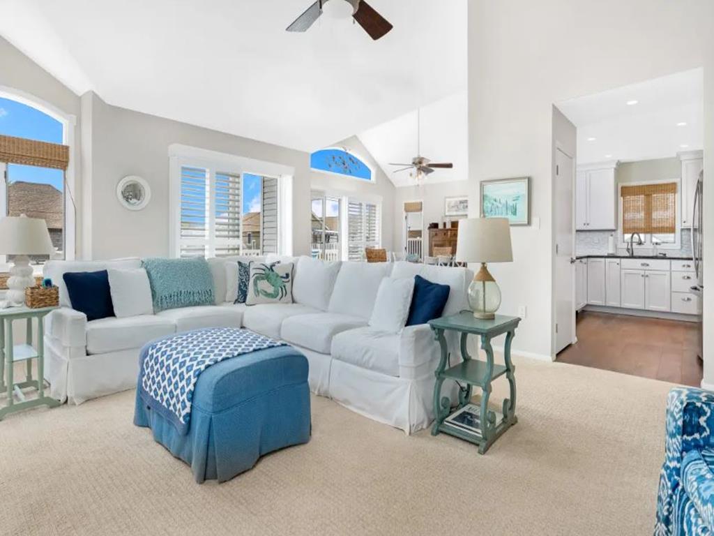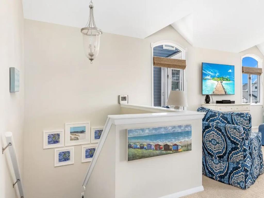 Four bedroom, two floor Avalon beach style house with three full bathrooms. The downstairs is perfect for kids with two bedrooms, 1 with a twin bunk, trundle and a queen bed, 2nd bedroom a queen bed, shared bath and smart TV's in each room. Our living room, kitchen, and dining room are located upstairs in an open floorplan. Two more bedrooms are on the 2nd floor, 1 king adn the 2nd bedoom with 2 queens, each with smart TV's and ensuite baths. A large deck with a gas grill and patio furniture is perfect for al fresco dining with the family, watching the sunset, or sunbathing.