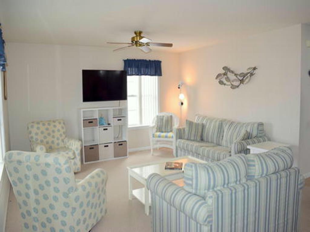 Pet Friendly! Single home with 5 Bedrooms, 2 Baths! This home is very spacious and well maintained. When you walk up stairs you will find the Living room with a queen sleep sofa. There is a dining are and Kitchen with a center island. Off the Kitchen is a room with a pyramid bed which can be used as a 6th bedroom for extra sleeping. On this floor are 2 bedrooms and a hall bathroom. When you enter the 2nd floor you will find 3 bedrooms and a bathroom. A queen bedroom and The master bedroom with a queen bed and bath and the twin bedroom which you enter by walking through the master bedroom. Large decks, ocean view, fenced in yard. There is a large garage and plenty of parking. A short walk to the beach and close to shopping and the restaurants. This home accepts pets!