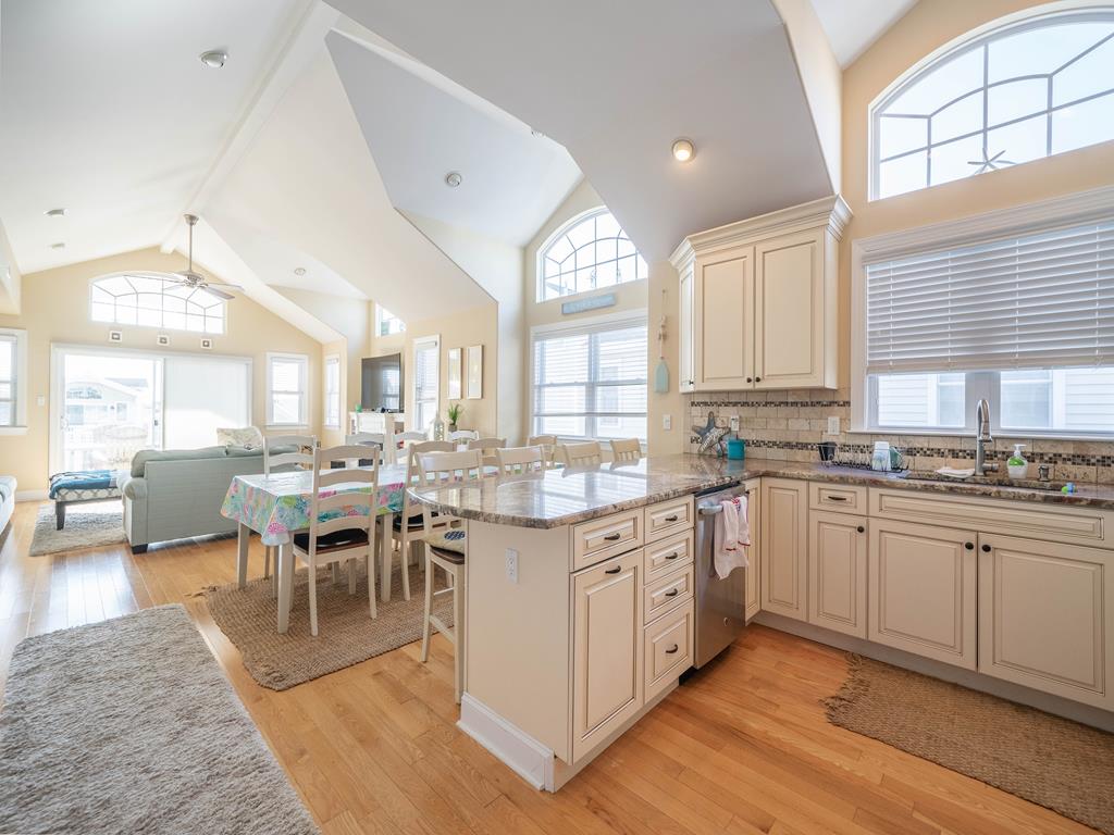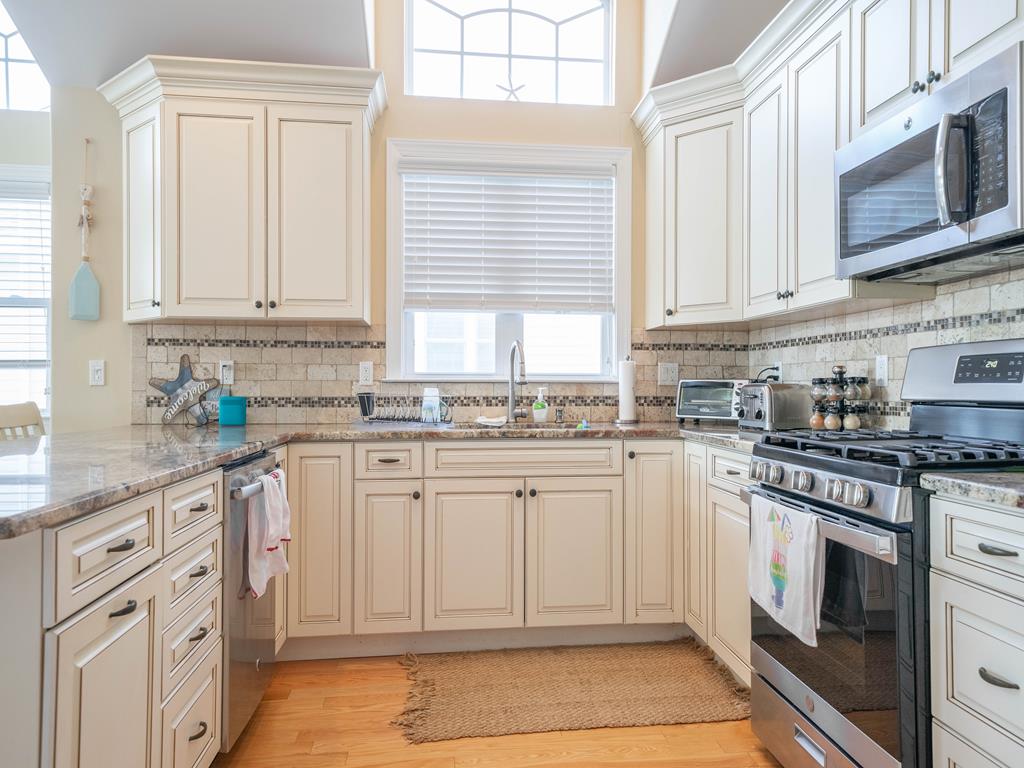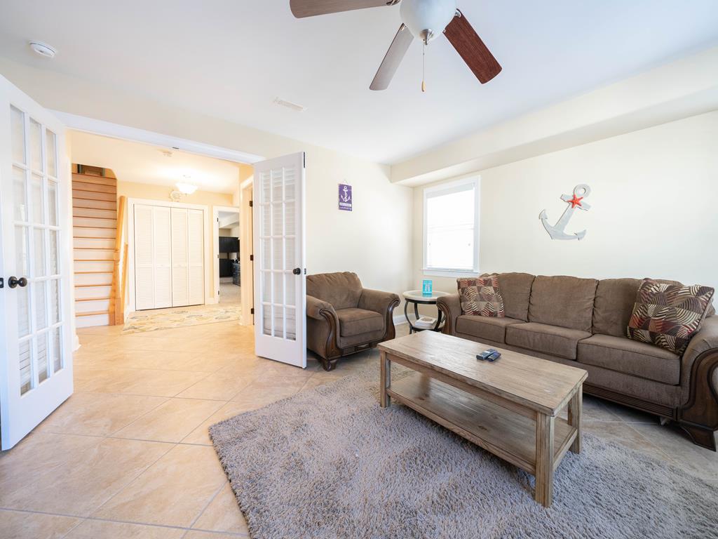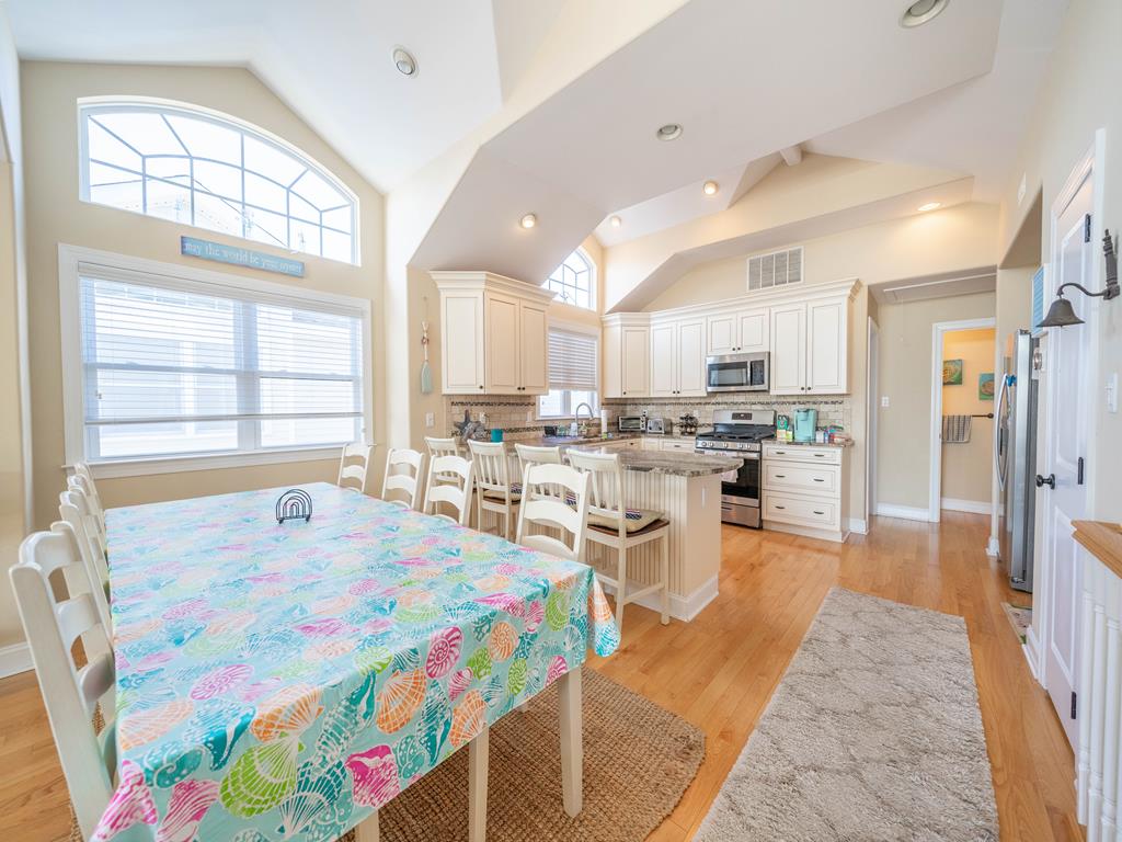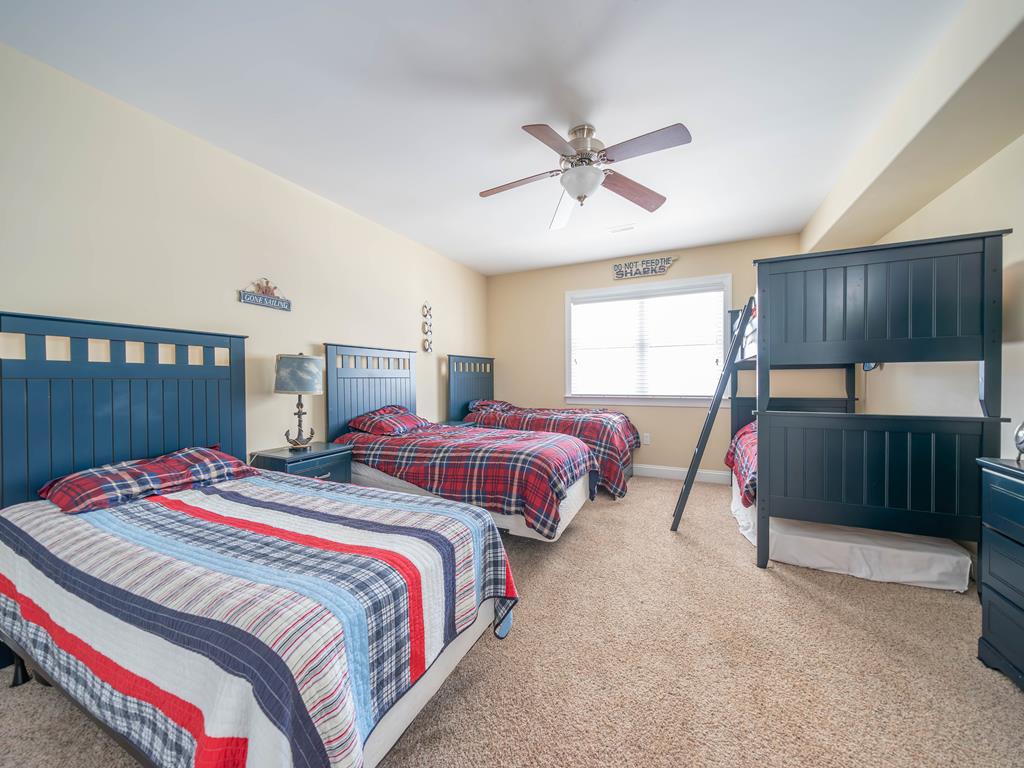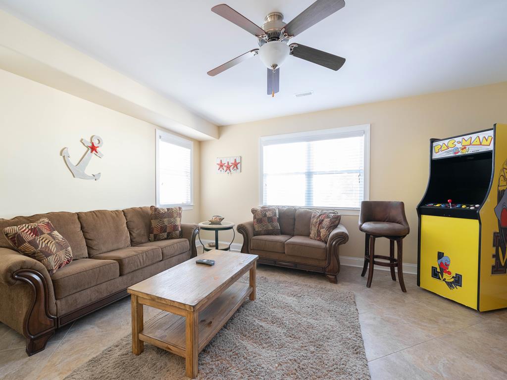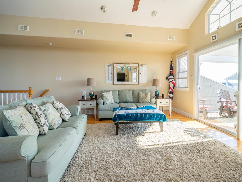 Absolutely beautiful townhome is located a short walk to the beach and downtown shopping. This 6 bedroom, 4.5 bath Townhome sleeps up to 18. It also has a spacious bonus room located on the first floor, Plenty of off street parking. One bedroom with 2 sets bunk beds (double over a double) on the First Floor. 4 bedrooms on the Second Floor. One King suite features a private bath and deck. One bedroom with 2-twin beds and the other features a queen bed. The fourth bedroom has a King bed. On the third floor is the Kitchen area with a great room, living and dining area. A furnished deck with great ocean views and a bedroom with a king size bed and private bath on this floor as well. This Townhome has 10 beach tags/8-Beach Tags (not guaranteed) beach carts, games and toys! Wi-Fi, both Streaming and Cable TVs..