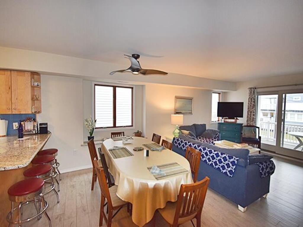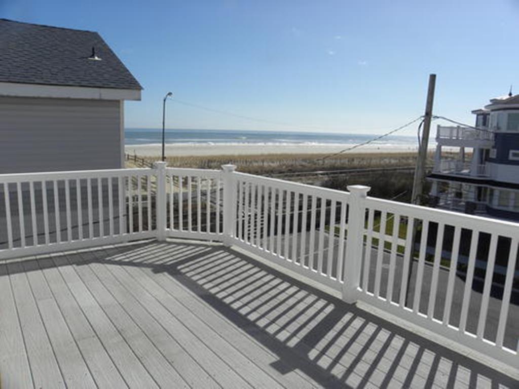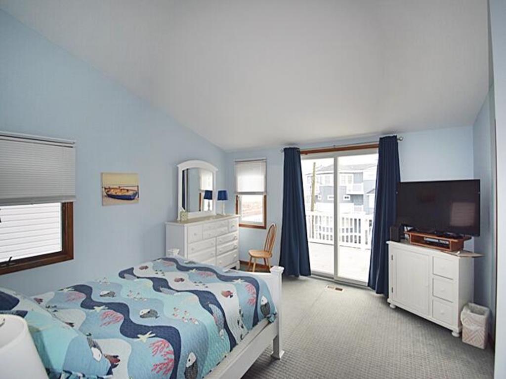 Location Location Location! One house off the beach. This townhome is a great set up 4 bedrooms with a 5th bedroom on the ground level/Bonus room. The ground floor is the garage plus a powder room and 5th bedroom/bonus room with a pyramid bed (twin over a full), Kitchenette with full size refrigerator, microwave and coffee maker, queen size sleeper sofa and Smart TV. This large room has a private entrance. The second floor is the kitchen, dining area and living room with a large deck with great ocean views. There is a Queen sleeper sofa in the Living room for guests. Behind the kitchen is a Queen bedroom with back deck and hallway bath with tile shower. The third floor has a hallway bath, one bedroom with 2-twin beds, and two bedrooms with a Queen bed in each. The front bedroom has a spacious deck with great ocean views. Beach Tags, chairs, umbrella with sand anchor, bikes, beach toys and boogie boards are courtesy of the owner. (not guaranteed) The owner will accept off season weekend rentals.