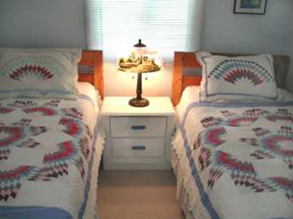 House is 300 feet from the beach and a short ride to Cape May, quiet area. 11/2 blocks to lighthouse and park. Bedroom #1, queen bed. Bedroom #2, queen bed. Bedroom #3, 2 twin beds. Living room has pull-out sofa (double) and a twin day bed. Backyard deck. One block from the beach (300 feet).
