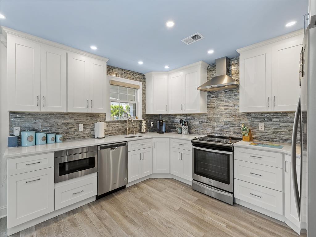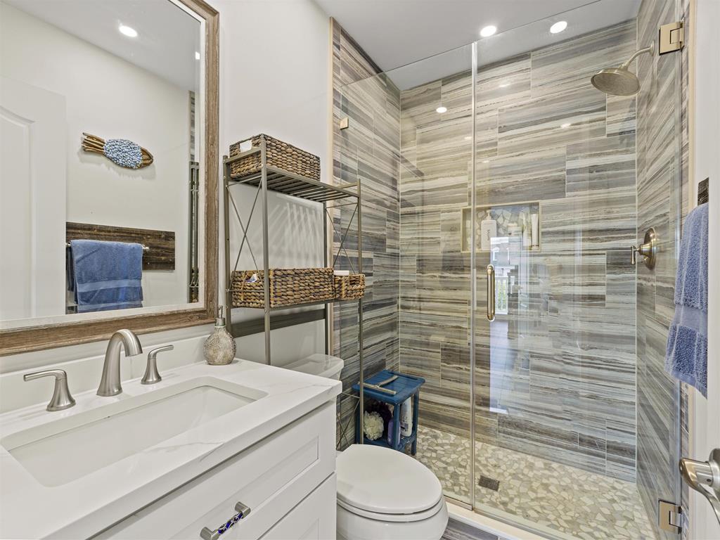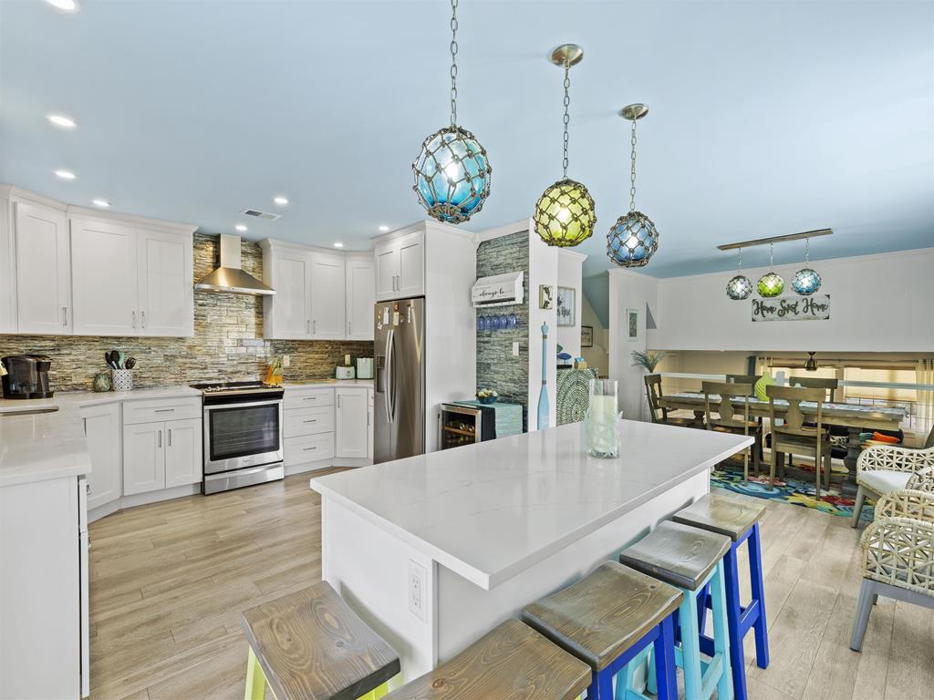 As you step inside, you are greeted by a spacious and bright living area, perfect for relaxing after a day at the beach. The fully equipped kitchen boasts stainless steel appliances, stone countertops, and ample cabinet space, making meal preparation a breeze. The dining area is ideal for enjoying family meals or entertaining guests.