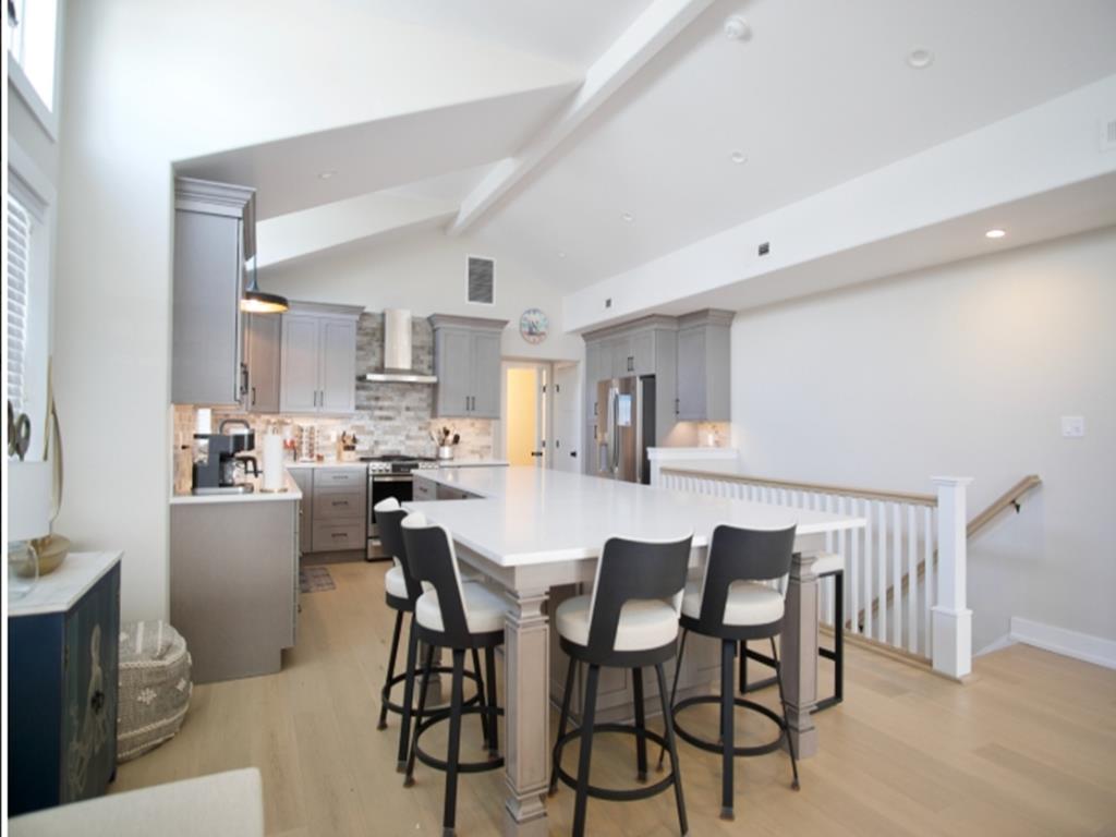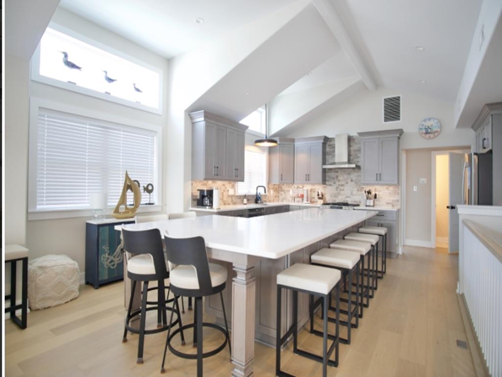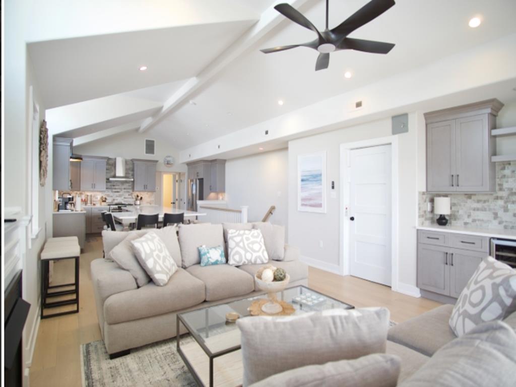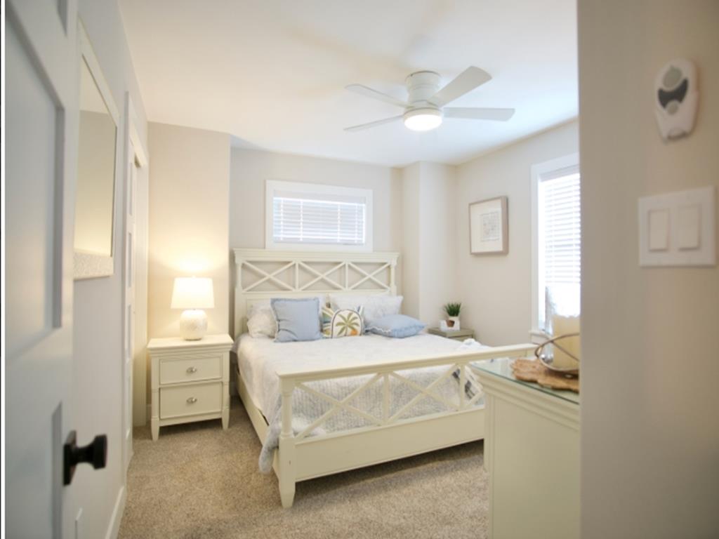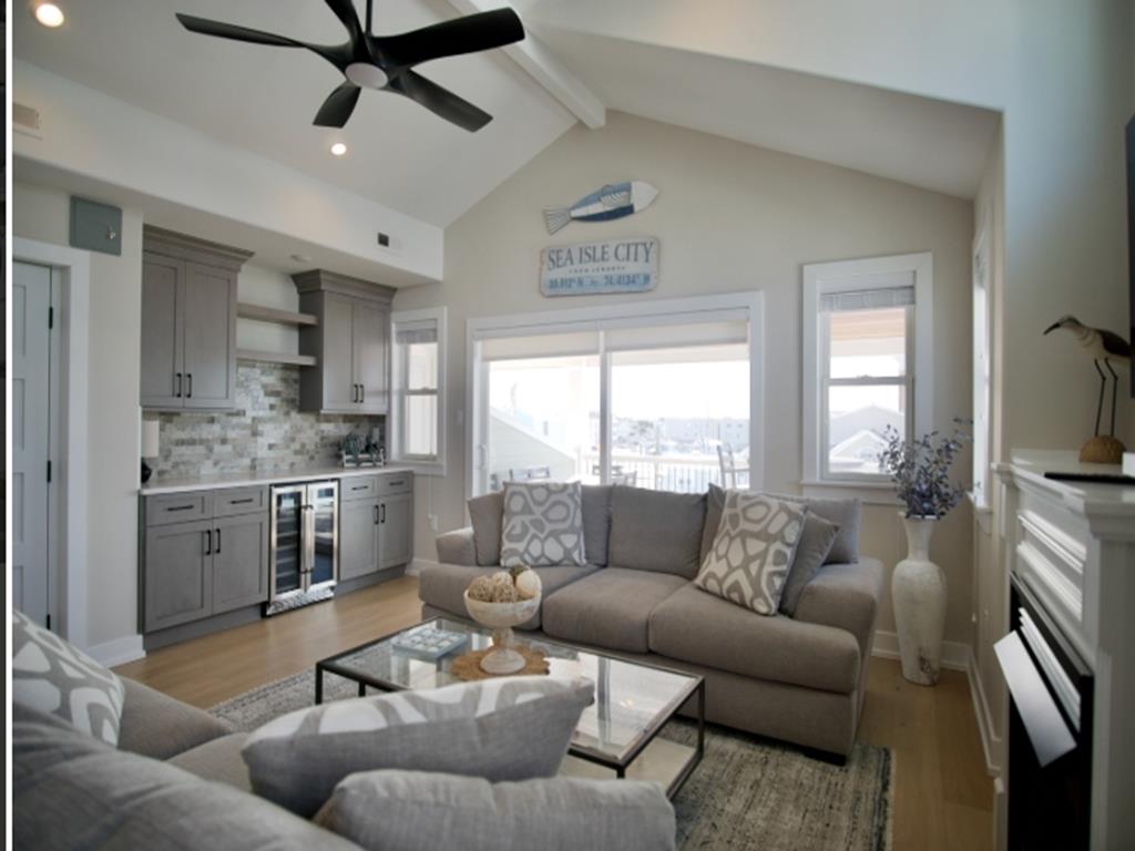 The third floor is where the home truly shines. The open-concept living area is spacious and bright, featuring a large kitchen island perfect for preparing meals or casual dining. The adjoining family room offers plenty of seating for everyone, making it the ideal place to gather together. From here, step out onto the third-story sun deck to enjoy the ocean breeze and stunning views. A King bedroom on this floor ensures comfort and privacy, with ample space for everyone.
