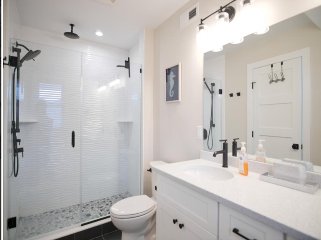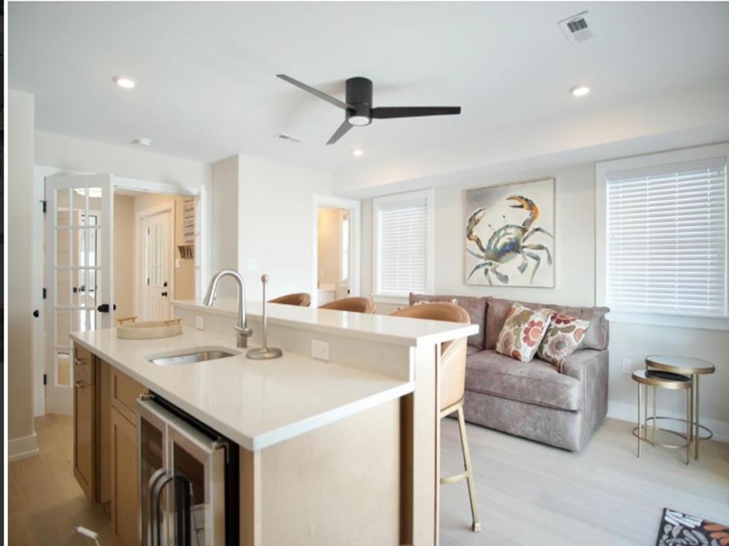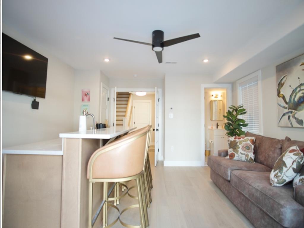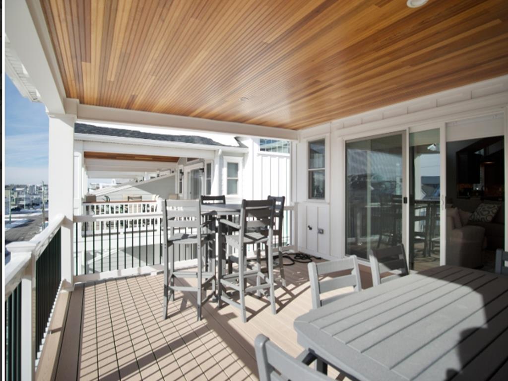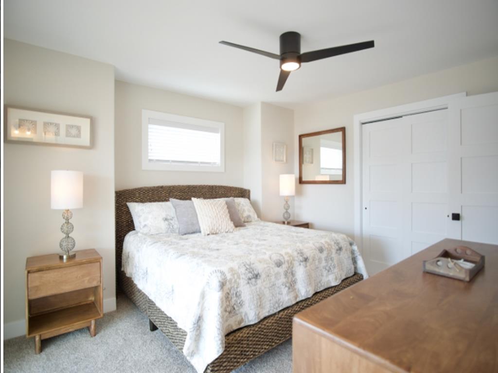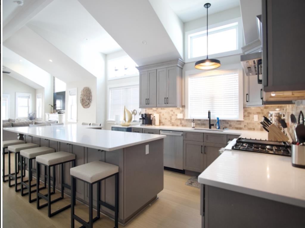 The third floor is where the home truly shines. The open-concept living area is spacious and bright, featuring a large kitchen island perfect for preparing meals or casual dining. The adjoining family room offers plenty of seating for everyone, making it the ideal place to gather together. From here, step out onto the third-story sun deck to enjoy the ocean breeze and stunning views. A King bedroom on this floor ensures comfort and privacy, with ample space for everyone.