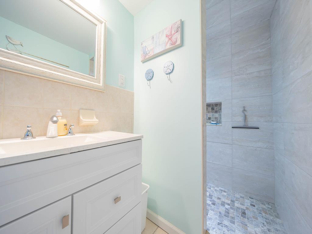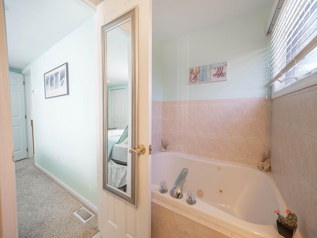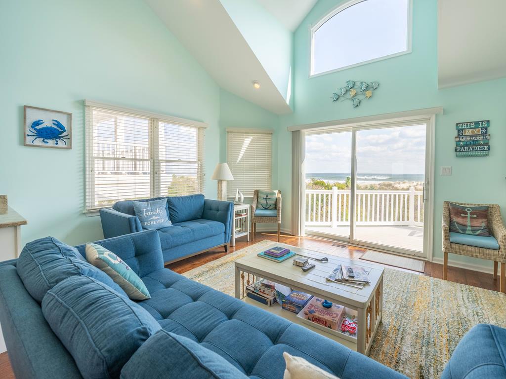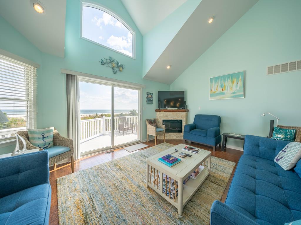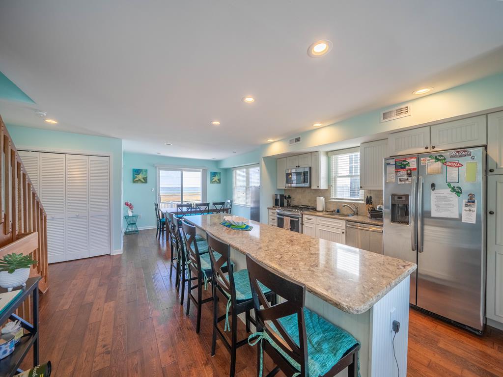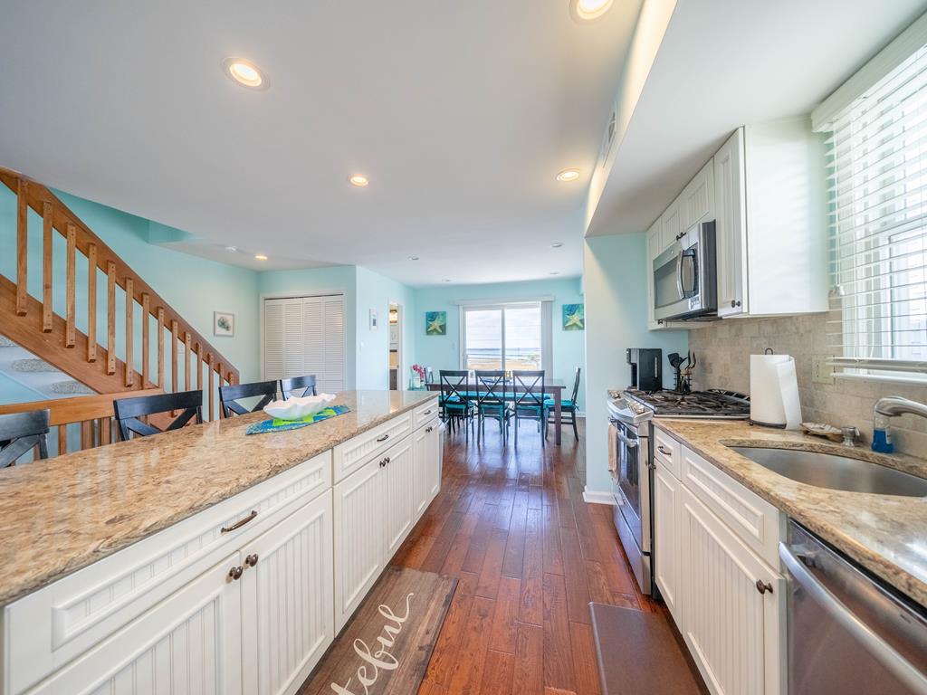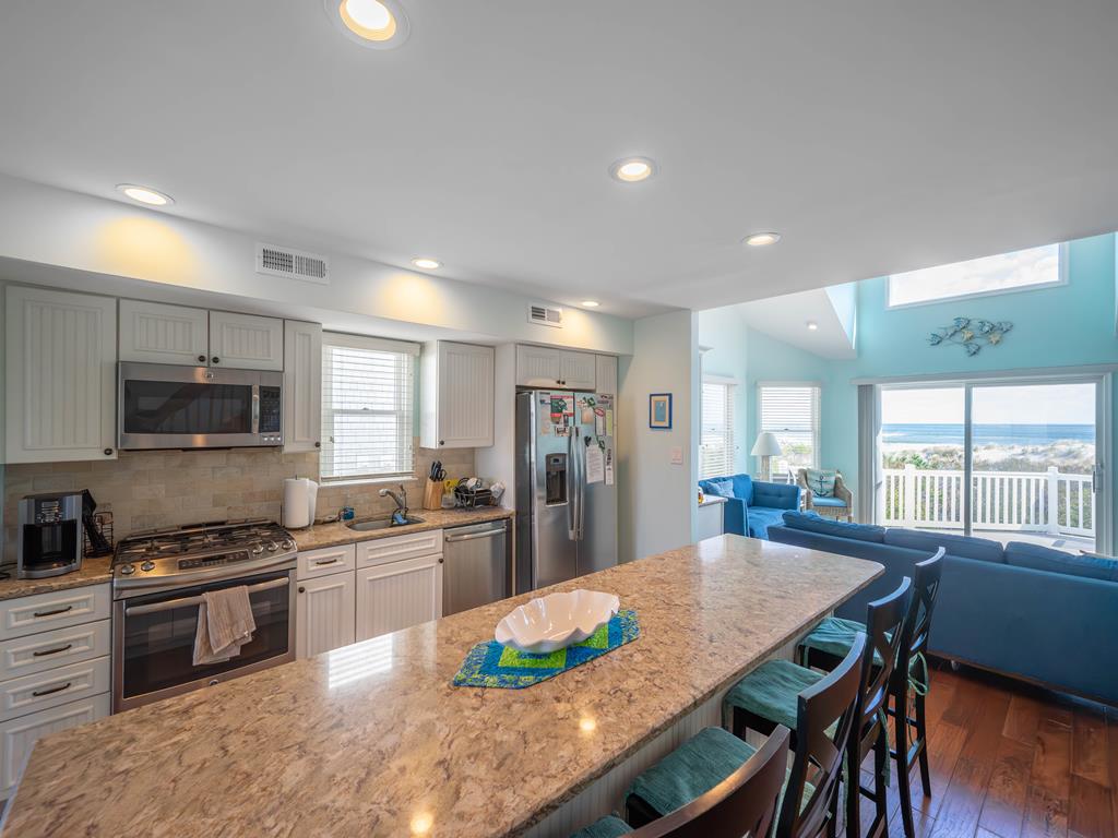 Spectacular Ocean Views! This meticulously maintained beachfront townhome is located in the north end of the island. This home features 4 bedrooms, 3.5 baths, central air, decks and off street parking. The first floor features 3 bedrooms, 1 with 2 twins and the other 1 Pyramid Bunk (single over a double) with a Trundle, and a hall bath. A master bedroom with a queen bed, TV and private bath. There is also a deck off this bedroom. The second floor features the living area with wet bar, a large deck with gorgeous ocean views. Spacious kitchen, dining area has a deck with bay views. There is also a powder room on this level. The third floor bedroom has a Queen and a private bath with a jacuzzi tub and walk in shower. Ocean AND Bay Views!