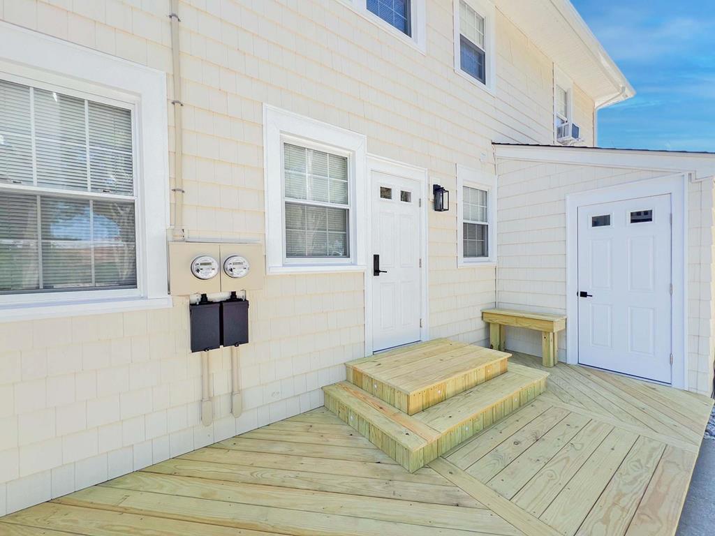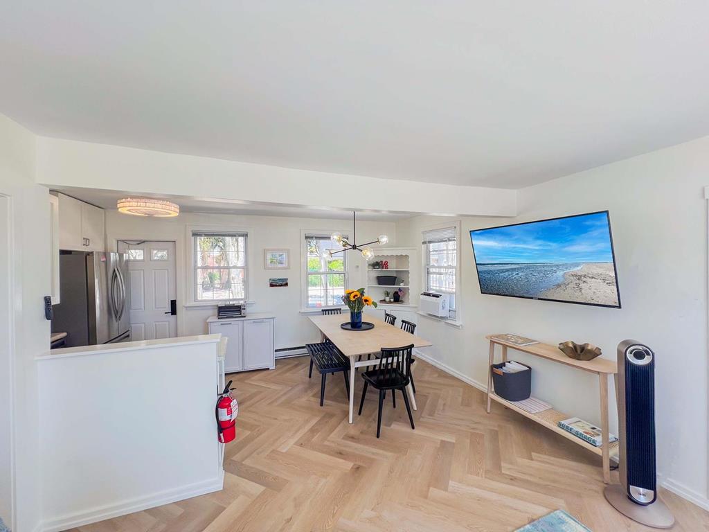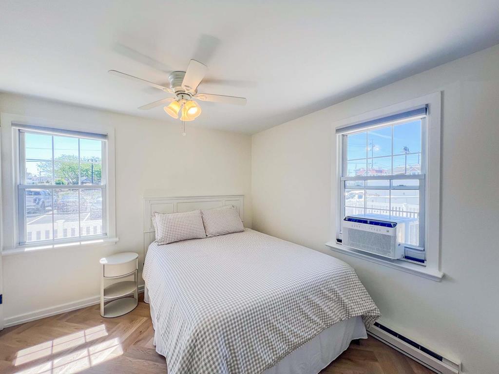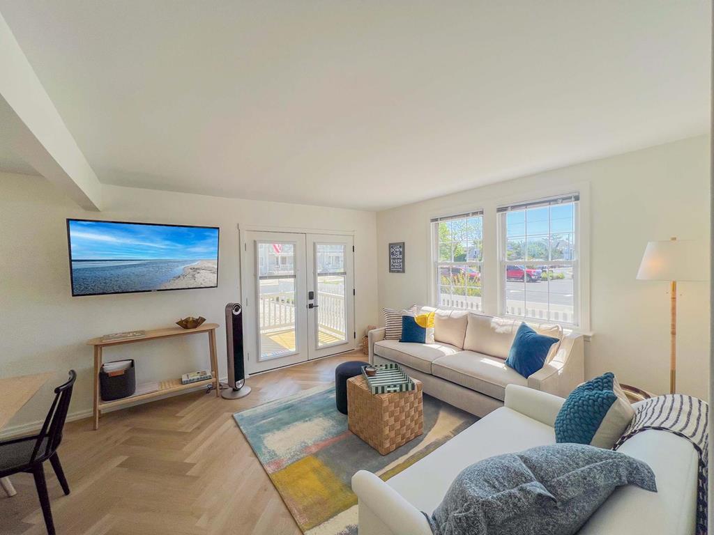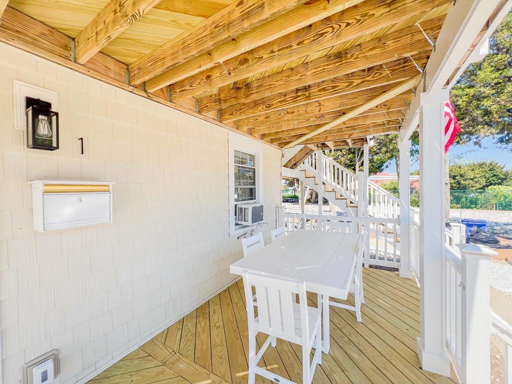 First Floor Unit offering 3 bedrooms, 1 bath and sleeps 8. This home has access to swimming pool with spa area. The pool is SHARED between the first and second floor unit renters. The property offers 2 off-street parking spaces, keypad access, queen sofa bed in living room, central air, washer and dryer in outside shared common space but each unit has its own labelled stackable unit, keurig, shared outside shower, propane BBQ, shared WIFI access, 2 televisions (living room and primary bedroom with ROKU -no cable), front deck has a table with 6 chairs and LED solar umbrella , active external cameras on front door, side door and second floor main door, This property is located a short walk to the beach and Stone Harbor town area.