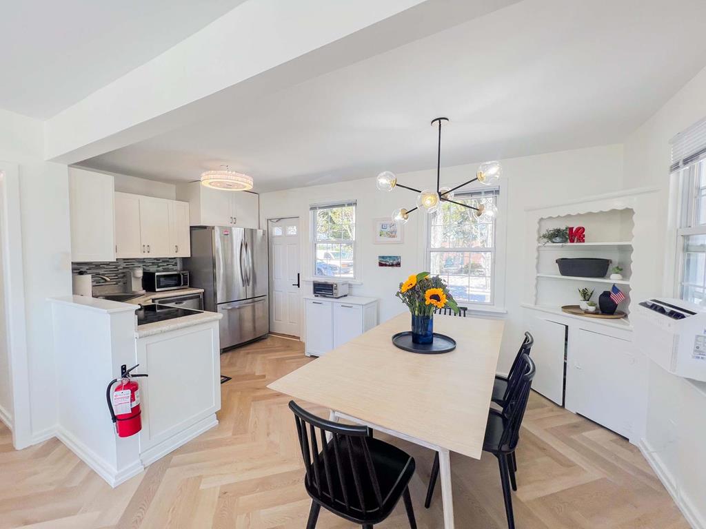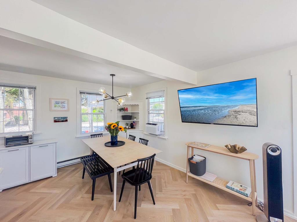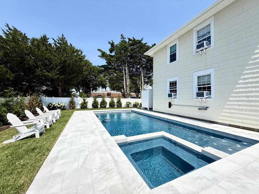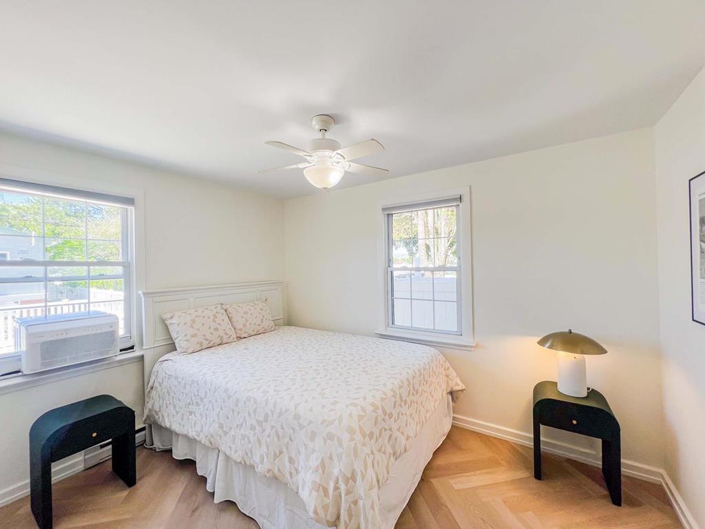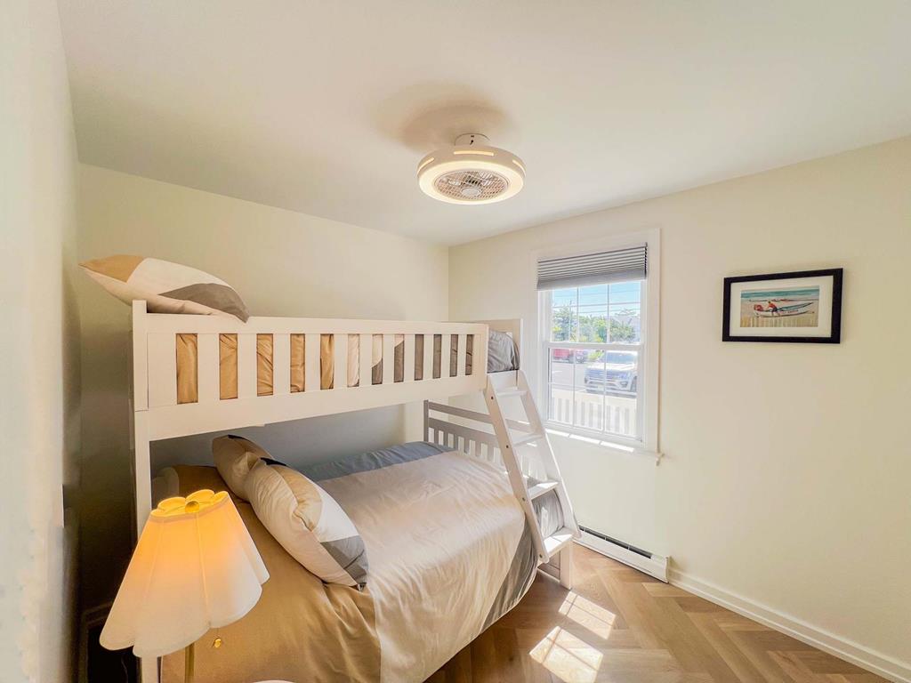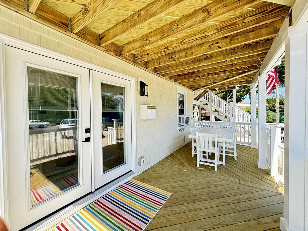 First Floor Unit offering 3 bedrooms, 1 bath and sleeps 8. This home has access to swimming pool with spa area. The pool is SHARED between the first and second floor unit renters. The property offers 2 off-street parking spaces, keypad access, queen sofa bed in living room, central air, washer and dryer in outside shared common space but each unit has its own labelled stackable unit, keurig, shared outside shower, propane BBQ, shared WIFI access, 2 televisions (living room and primary bedroom with ROKU -no cable), front deck has a table with 6 chairs and LED solar umbrella , active external cameras on front door, side door and second floor main door, This property is located a short walk to the beach and Stone Harbor town area.