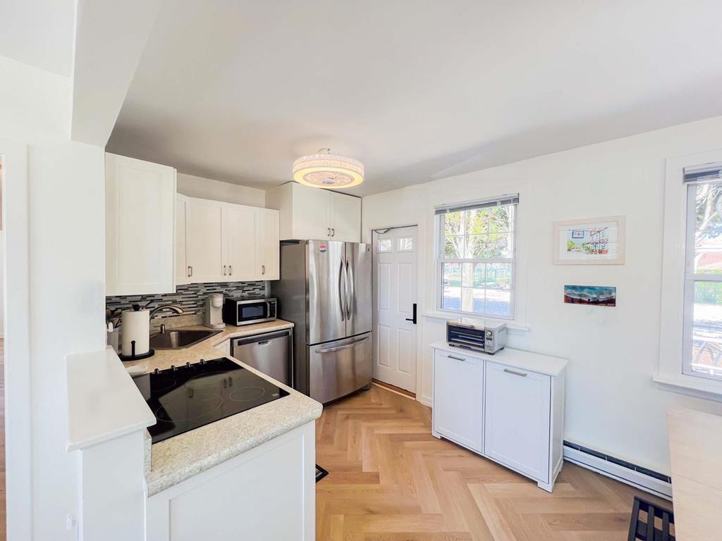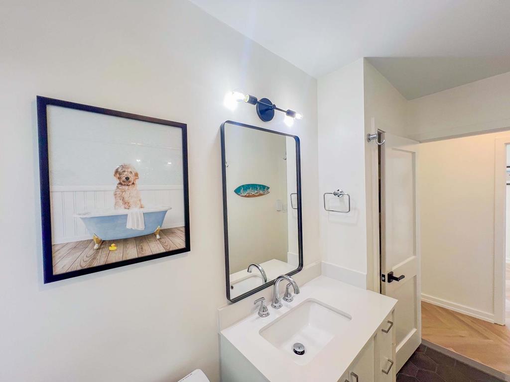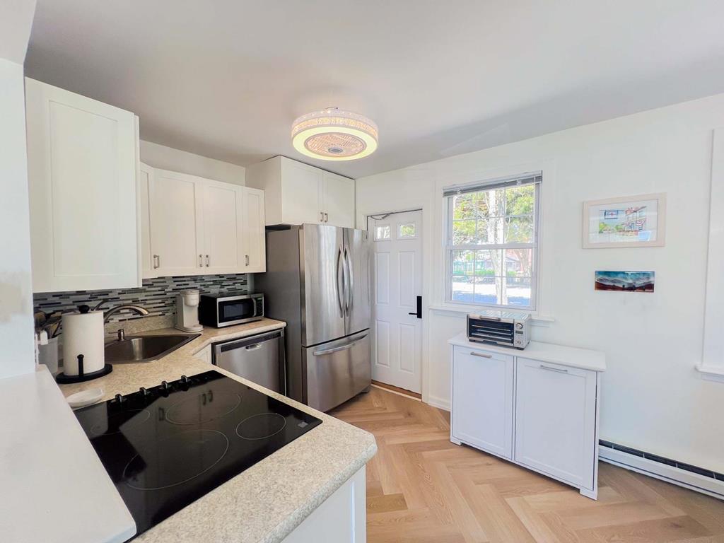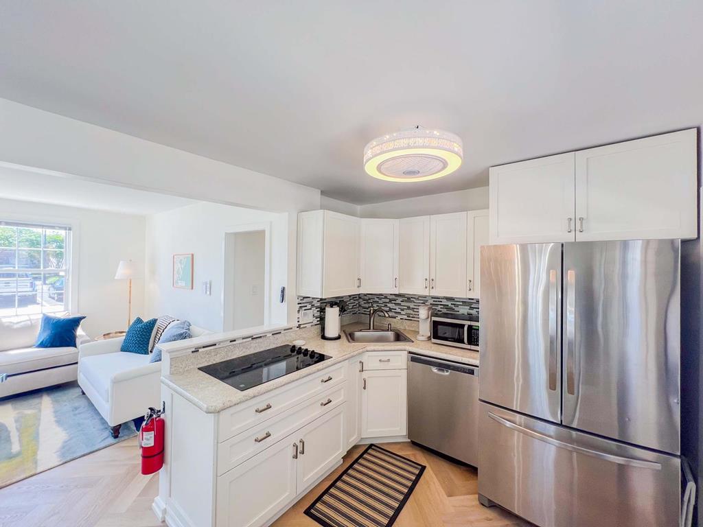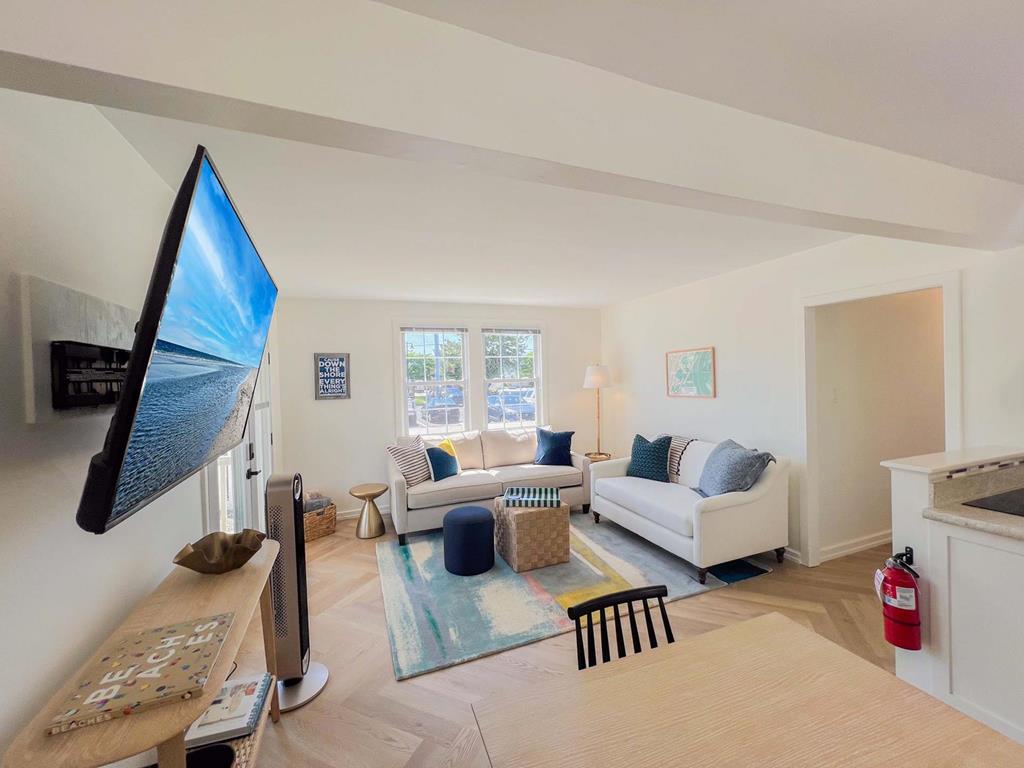 First Floor Unit offering 3 bedrooms, 1 bath and sleeps 8. This home has access to swimming pool with spa area. The pool is SHARED between the first and second floor unit renters. The property offers 2 off-street parking spaces, keypad access, queen sofa bed in living room, central air, washer and dryer in outside shared common space but each unit has its own labelled stackable unit, keurig, shared outside shower, propane BBQ, shared WIFI access, 2 televisions (living room and primary bedroom with ROKU -no cable), front deck has a table with 6 chairs and LED solar umbrella , active external cameras on front door, side door and second floor main door, This property is located a short walk to the beach and Stone Harbor town area.