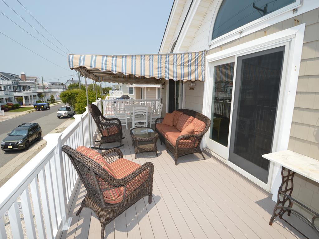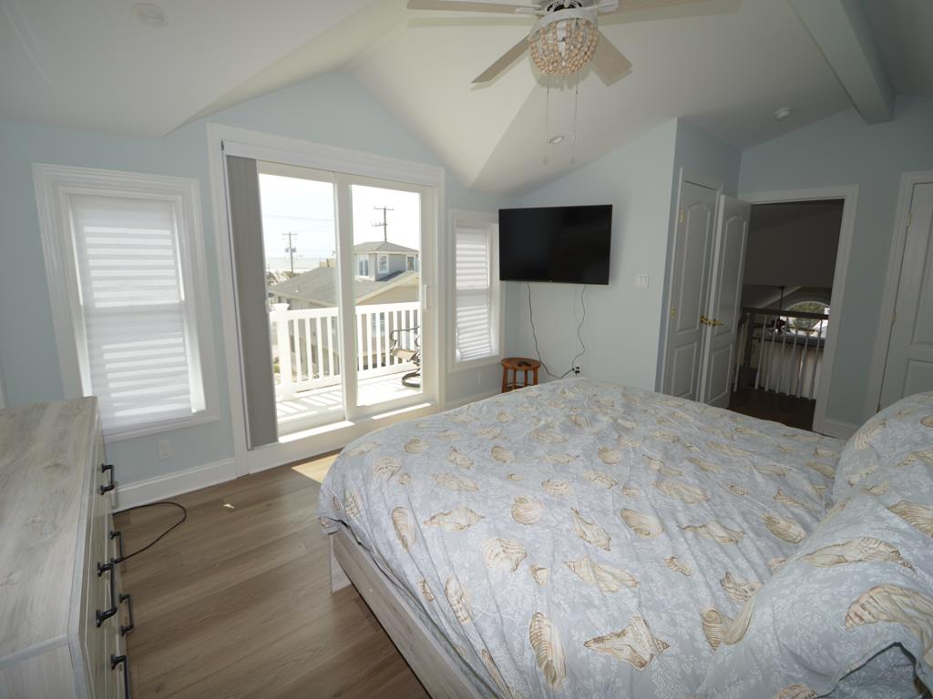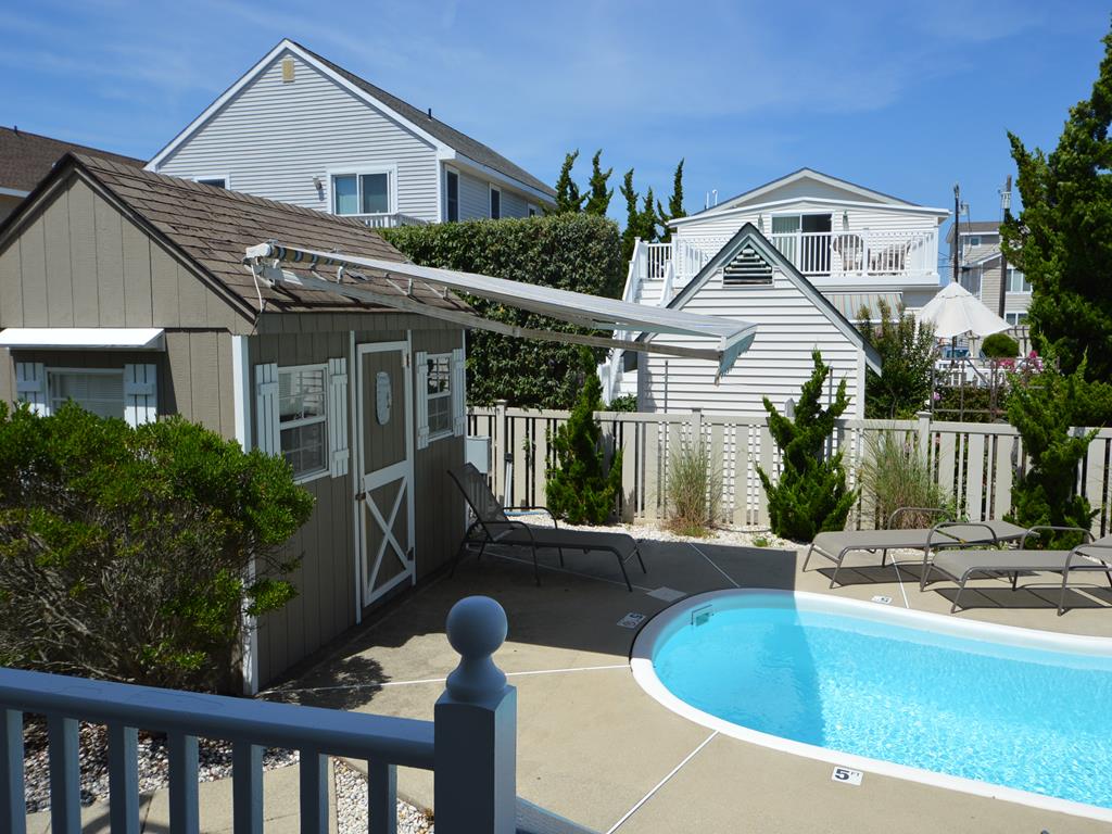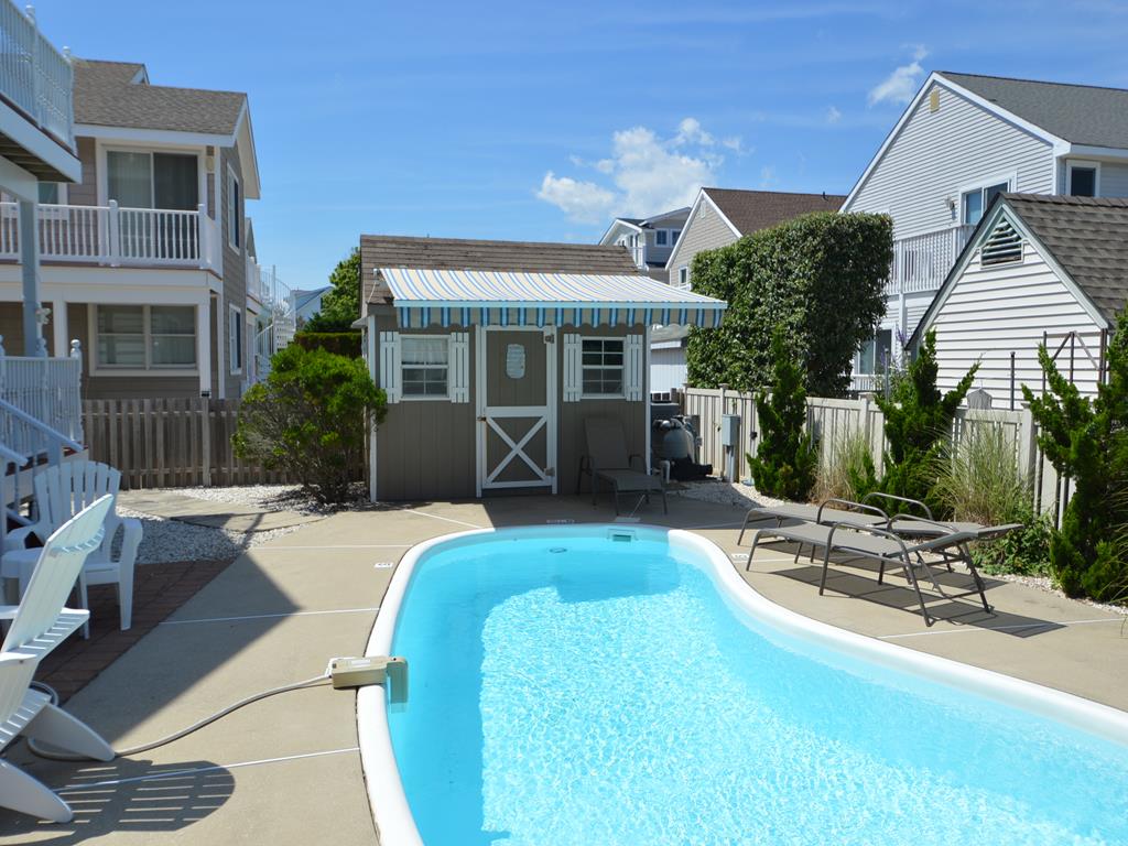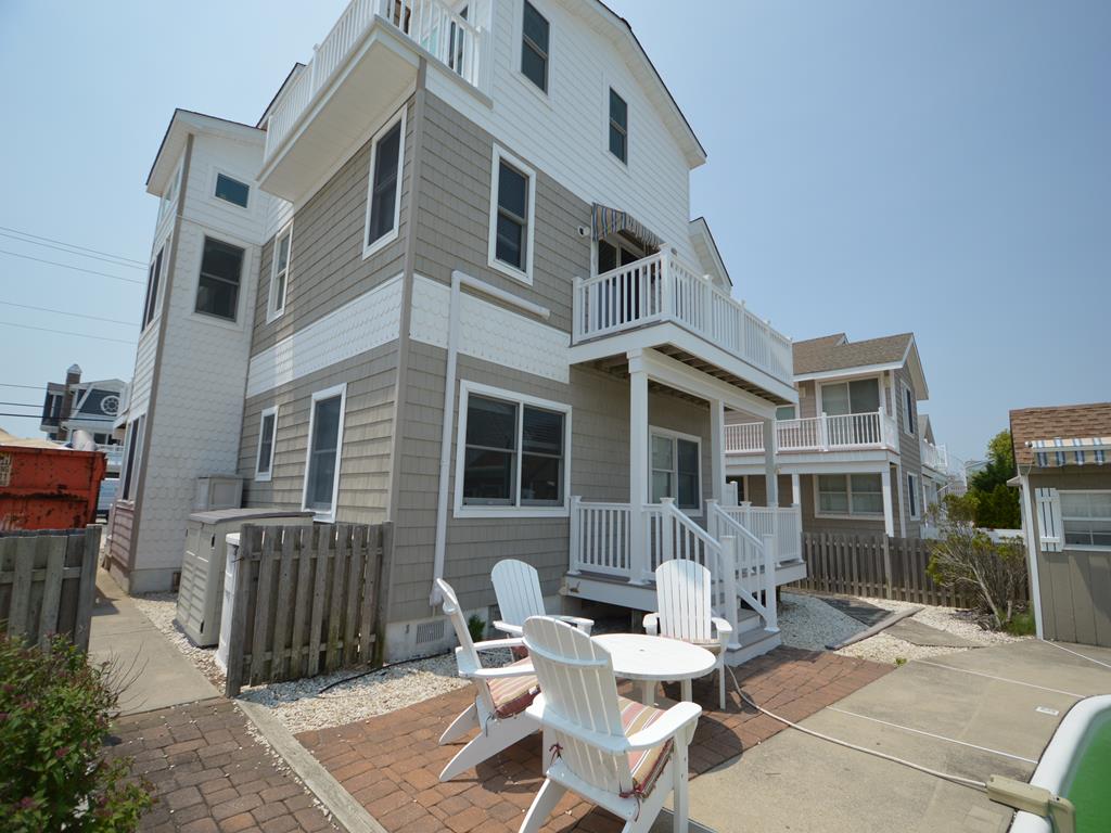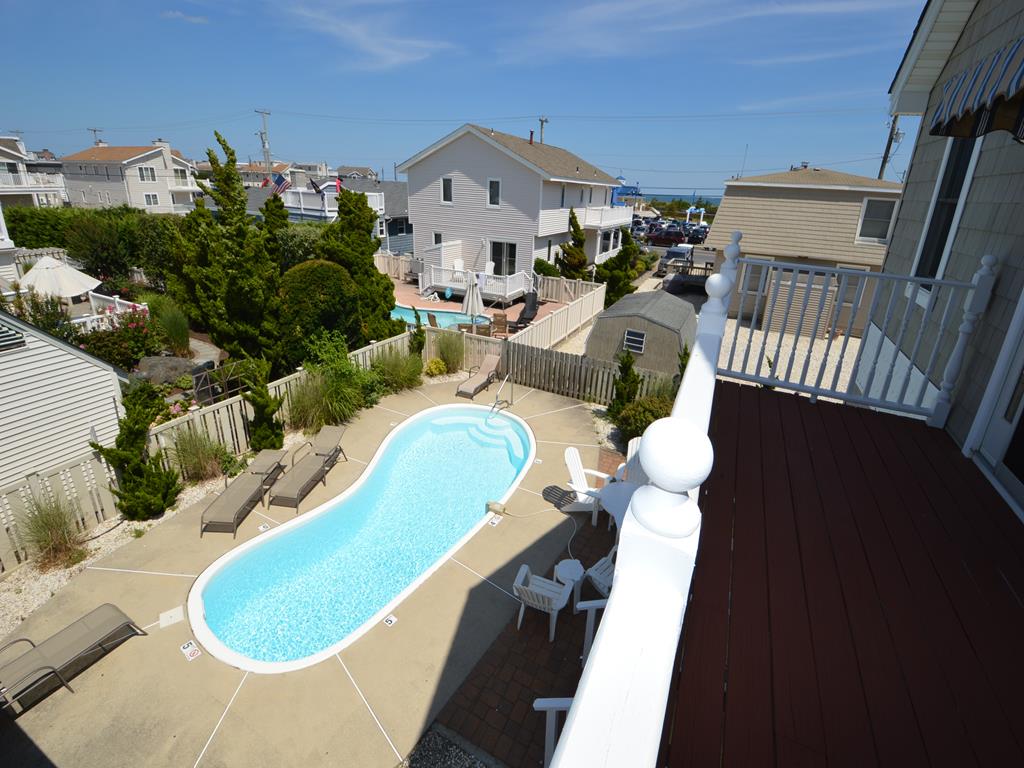 Almost beach block! Exceptional location with easy access to the beach. Ocean views from both inside the house, and from the sun decks. A fenced in backyard with a heated pool. The pool area features plenty of sunny and shaded spots, and a cabana with a full size refrigerator for cold drinks. Off of the first floor foyer, there is a family room (sofa bed) with French doors if used as a 6th bedroom. Three bedrooms (one with a queen bed, one with a single and queen, and one with two single beds) two hall bathrooms, and a utility room with a door to the outside shower and walkway to the pool complete this level. The second floor has an open great room with living/dining areas, and a modern kitchen. Sliding glass doors lead to the front sun deck which is partially covered with an awning to create a comfortable outdoor living space. Wonderful views from deck, plus a natural gas grill. Past the hallway powder room, there is a spacious secondary master bedroom with a private bathroom (large walk in shower with grab bar). This room has a king bed, and a small sun deck. The new 3rd floor bedroom has a king bed, private bath, and small deck with incredible views! Cross Avalon Avenue and walk up the ramp to the boardwalk and beach access. There is a shaded pavilion adjacent to the beach. Owner will consider rental with 1 dog (with references).
