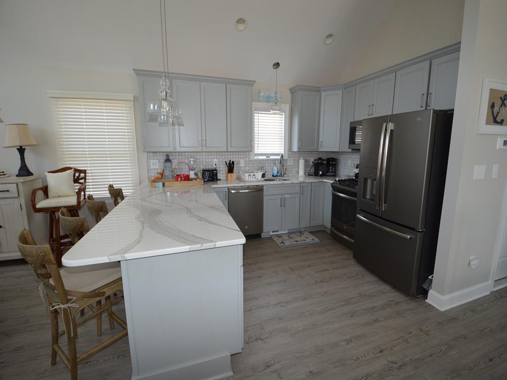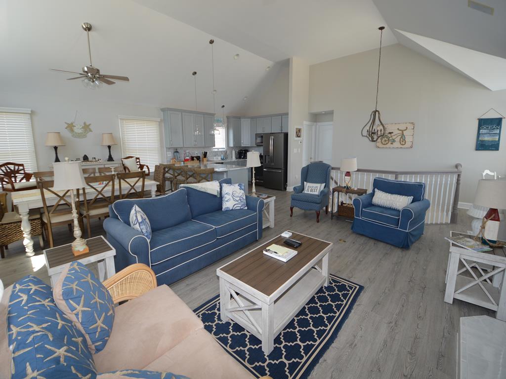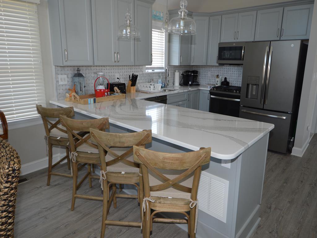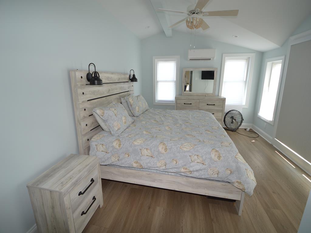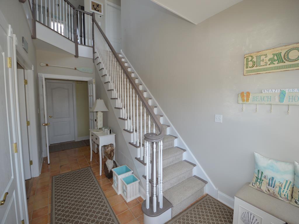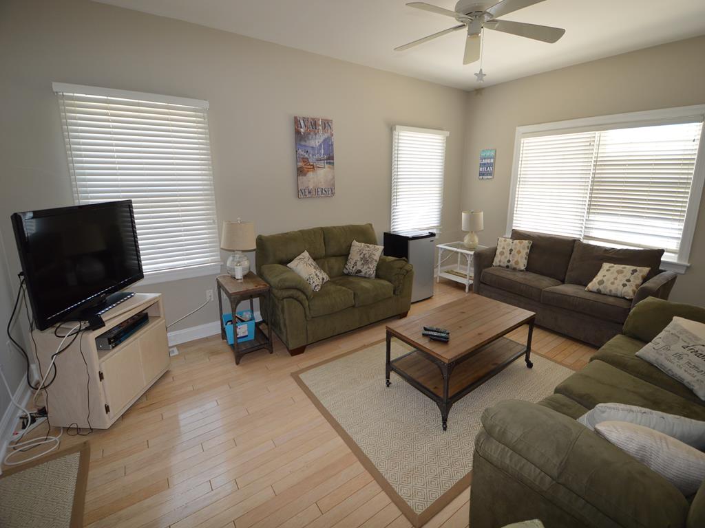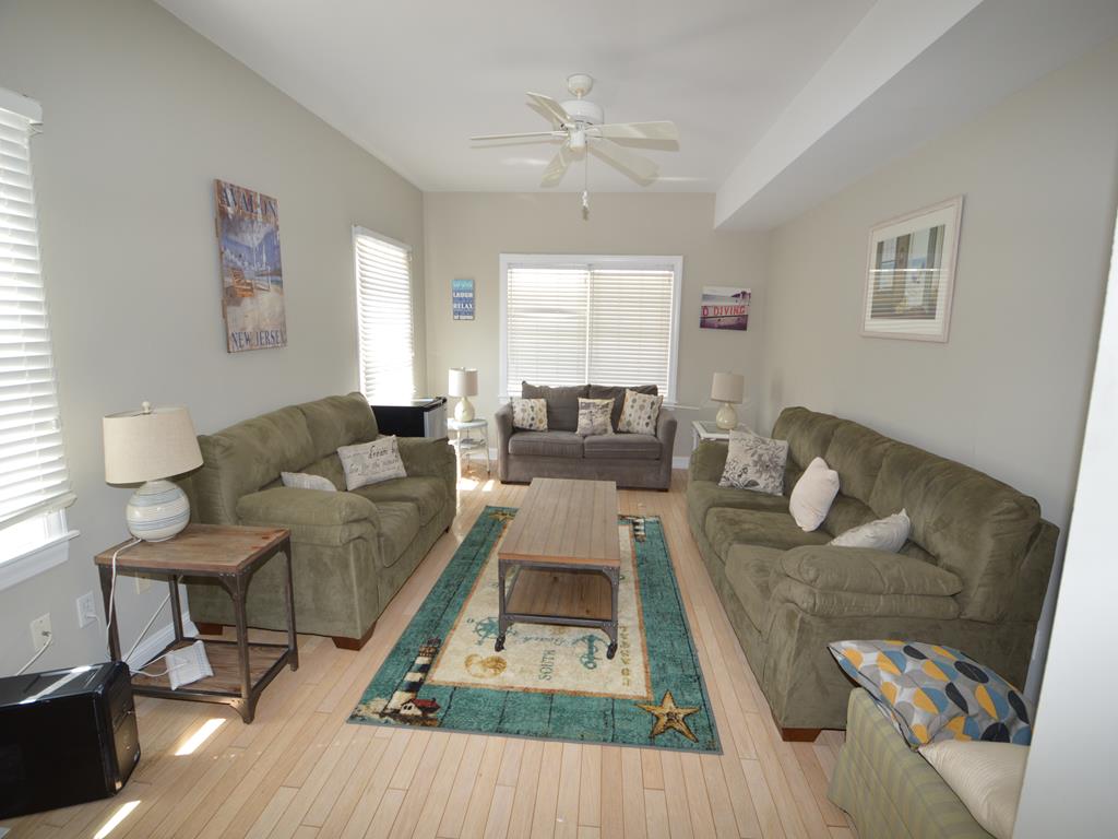Almost beach block! Exceptional location with easy access to the beach. Ocean views from both inside the house, and from the sun decks. A fenced in backyard with a heated pool. The pool area features plenty of sunny and shaded spots, and a cabana with a full size refrigerator for cold drinks. Off of the first floor foyer, there is a family room (sofa bed) with French doors if used as a 6th bedroom. Three bedrooms (one with a queen bed, one with a single and queen, and one with two single beds) two hall bathrooms, and a utility room with a door to the outside shower and walkway to the pool complete this level. The second floor has an open great room with living/dining areas, and a modern kitchen. Sliding glass doors lead to the front sun deck which is partially covered with an awning to create a comfortable outdoor living space. Wonderful views from deck, plus a natural gas grill. Past the hallway powder room, there is a spacious secondary master bedroom with a private bathroom (large walk in shower with grab bar). This room has a king bed, and a small sun deck. The new 3rd floor bedroom has a king bed, private bath, and small deck with incredible views! Cross Avalon Avenue and walk up the ramp to the boardwalk and beach access. There is a shaded pavilion adjacent to the beach. Owner will consider rental with 1 dog (with references).