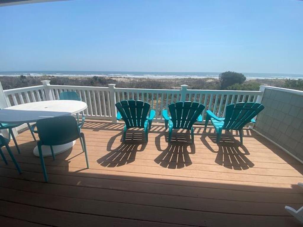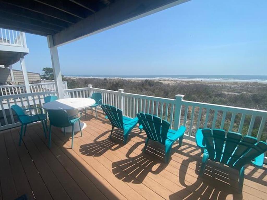 BEACHFRONT town home located in the north end of the island. This well maintained home has everything you need and want for your perfect family vacation. It's beach is almost private but protected by lifeguards. The views are Spectacular featuring both ocean and bay from multiple decks. It has a very will stocked kitchen for all your cooking needs. This home features 4 bedrooms and 3 1/2 baths. The first floor has three bedrooms, with the front room having 2 sets of bunk beds, a full bath, 2 rooms have queen size beds with the front bedroom having a private bath and deck. Washer/dryer on this floor. Spacious living, dining areas and kitchen on the second floor. Front and Rear decks offer both ocean and bay views. The third floor master bedroom has a queen size bed, private bath and deck. Steps to the beach. Owner provides Beach chairs, toys, games, high chair, and a pack-n-play. Book this home today!