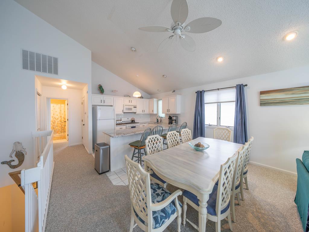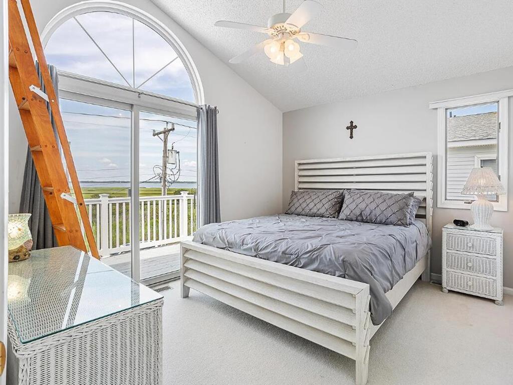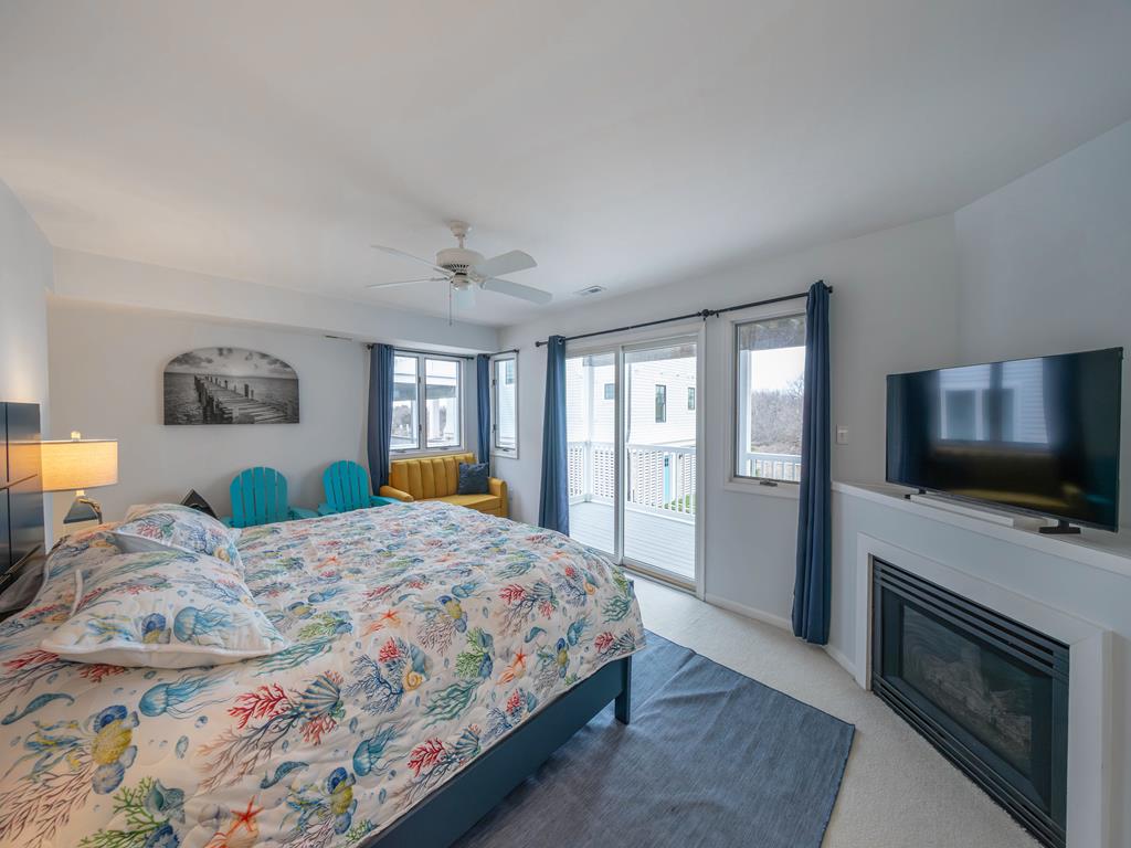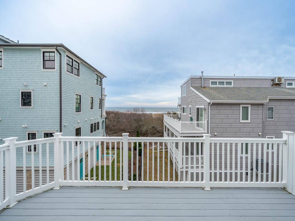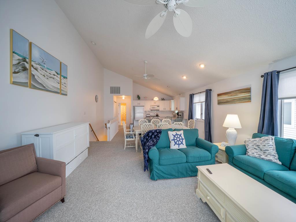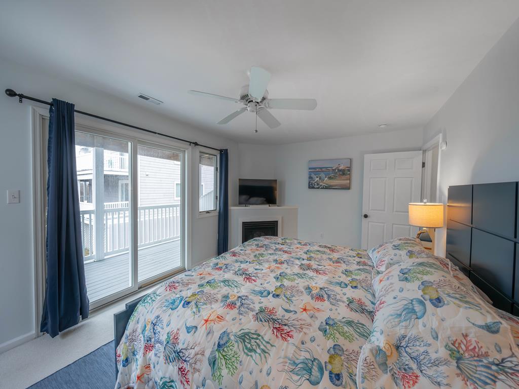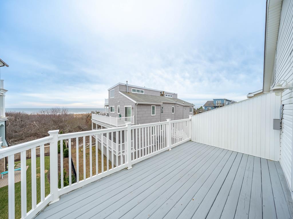 VIEWS..VIEWS...VIEWS...Ocean and Bay VIEWS!!! No streets to cross. Steps to the beach and promenade! First floor features 3 bedrooms & 2 full baths. Front bedroom is master bedroom with full bath, private deck facing the ocean, king bed, love seat/single pull out, EZ on/off fireplace, and TV. Middle bedroom has a pyramid bunk with double and single beds, and TV. Rear bedroom has queen bed and private deck with lovely bay views. 2nd floor features bedroom, full bath, direct ocean views from spacious kitchen, living & dining rooms. Large front deck with grill looks out at ocean. Living room has spacious, comfy queen pullout murphy-bed, TV and EZ on/off fireplace. Kitchen has counter bar seating for 4 and dining room seats 8. Off the kitchen is a pantry for food storage. Rear bedroom has high ceiling, queen bed, and private deck overlooking the bay. 2nd floor pocket doors can create second master suite with full bath. Central Air, ceiling fans, Pollywood deck furniture, and room darkening curtains throughout. This home is very clean and well maintained, bright and airy. Great vacation location! Sleeps 12: 1-King, 2-Queen, 1-Pyramid (1 Double & 1 Twin), 1-Sofabed (Queen), 1-sofabed (single/twin). Off-street parking for 5 cars. Outside hot/cold shower. Lawn for yard games.