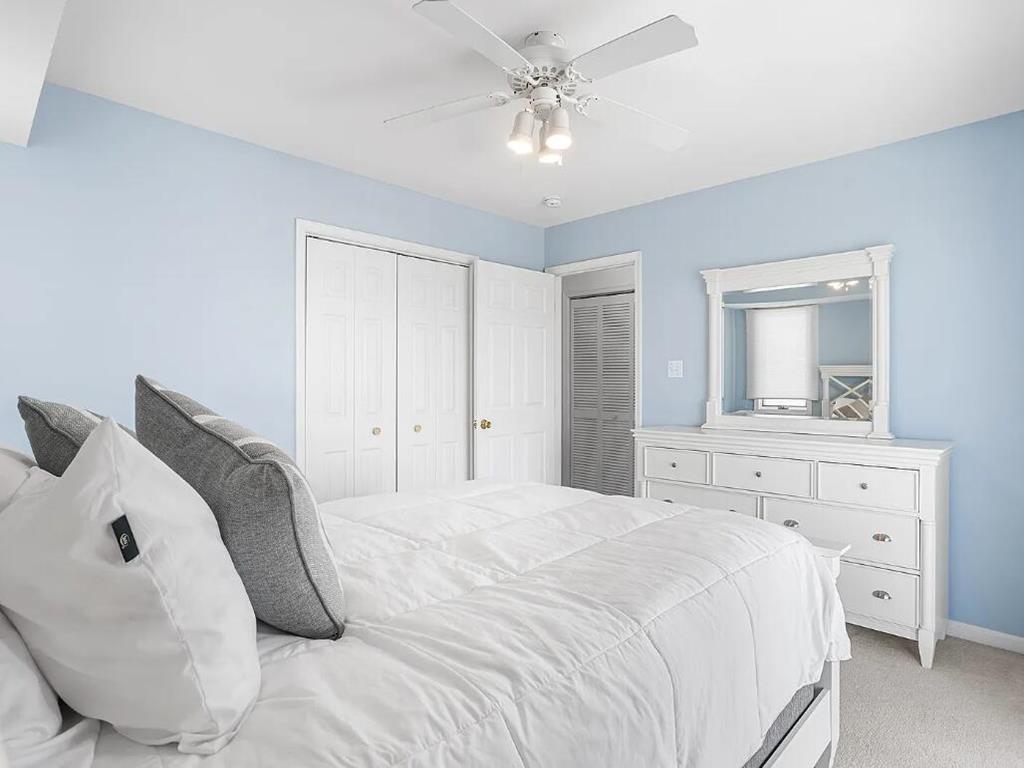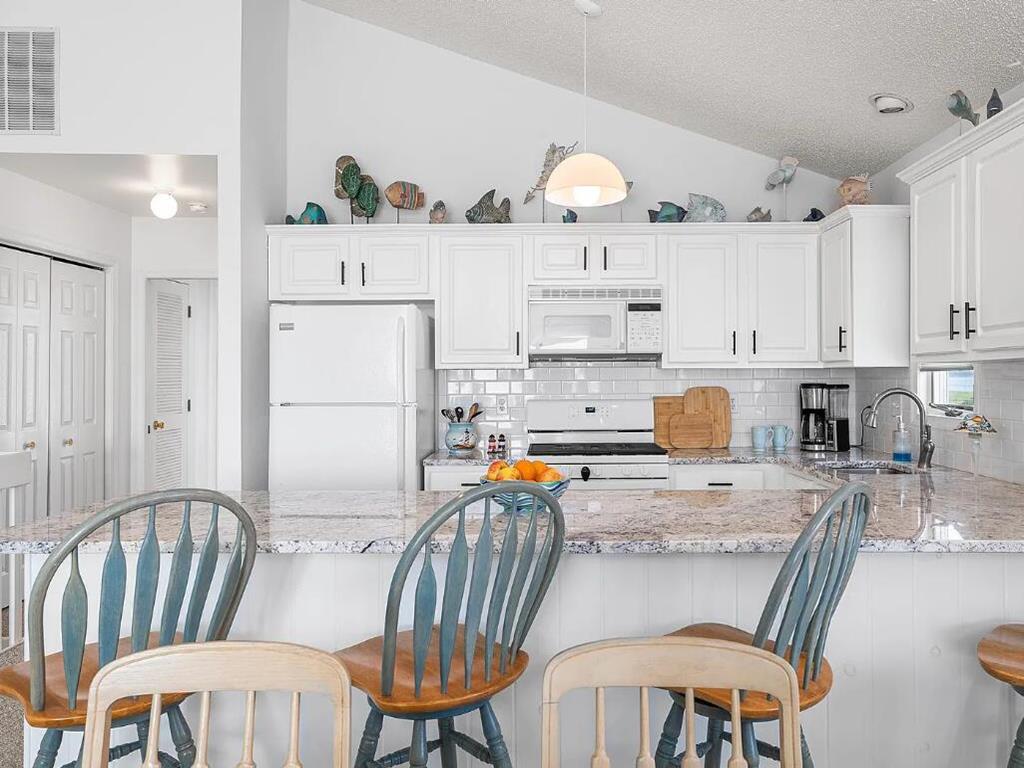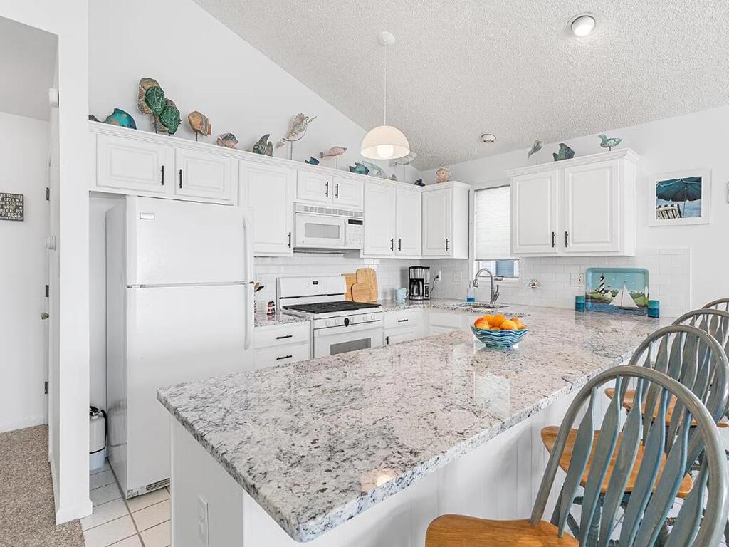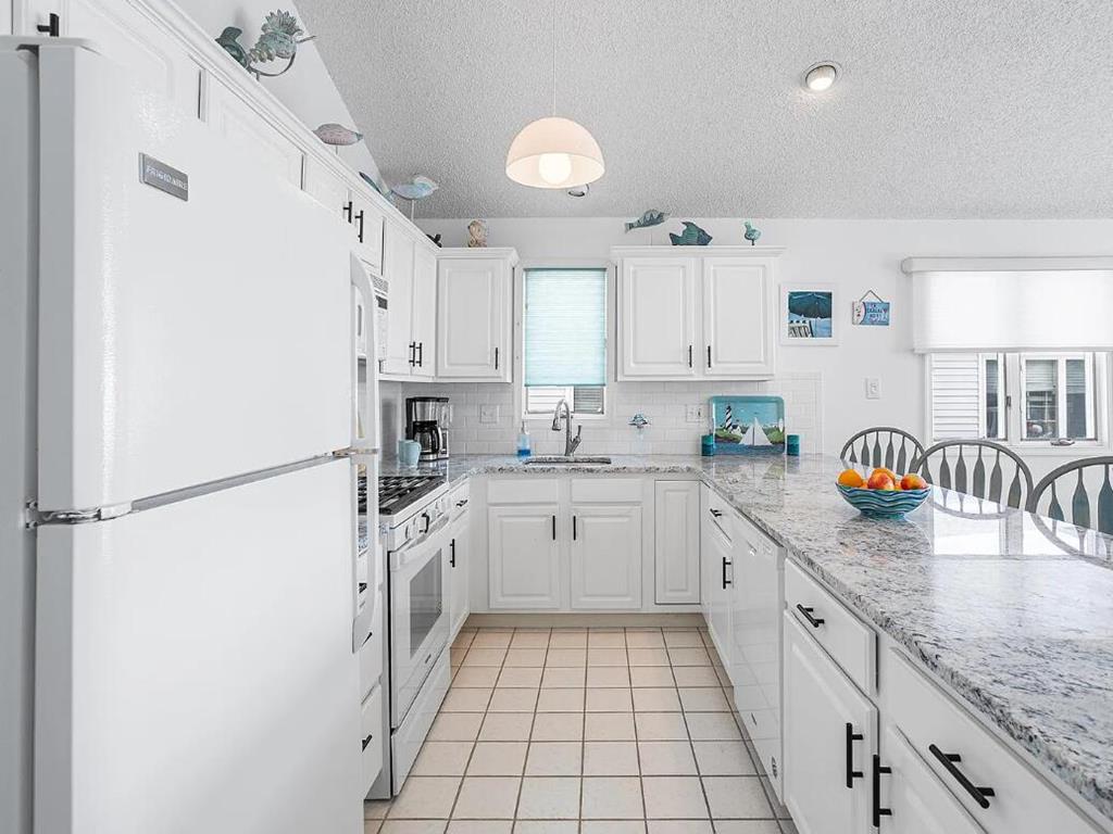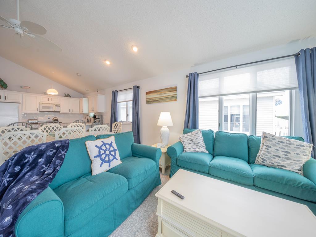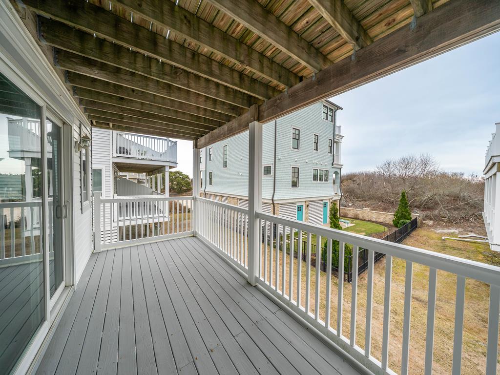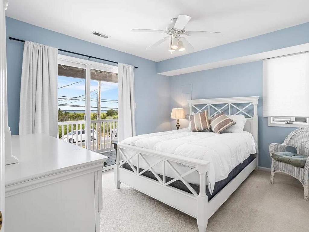 VIEWS..VIEWS...VIEWS...Ocean and Bay VIEWS!!! No streets to cross. Steps to the beach and promenade! First floor features 3 bedrooms & 2 full baths. Front bedroom is master bedroom with full bath, private deck facing the ocean, king bed, love seat/single pull out, EZ on/off fireplace, and TV. Middle bedroom has a pyramid bunk with double and single beds, and TV. Rear bedroom has queen bed and private deck with lovely bay views. 2nd floor features bedroom, full bath, direct ocean views from spacious kitchen, living & dining rooms. Large front deck with grill looks out at ocean. Living room has spacious, comfy queen pullout murphy-bed, TV and EZ on/off fireplace. Kitchen has counter bar seating for 4 and dining room seats 8. Off the kitchen is a pantry for food storage. Rear bedroom has high ceiling, queen bed, and private deck overlooking the bay. 2nd floor pocket doors can create second master suite with full bath. Central Air, ceiling fans, Pollywood deck furniture, and room darkening curtains throughout. This home is very clean and well maintained, bright and airy. Great vacation location! Sleeps 12: 1-King, 2-Queen, 1-Pyramid (1 Double & 1 Twin), 1-Sofabed (Queen), 1-sofabed (single/twin). Off-street parking for 5 cars. Outside hot/cold shower. Lawn for yard games.