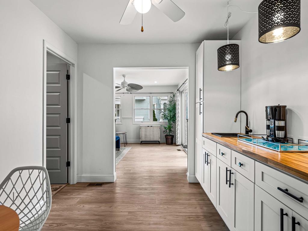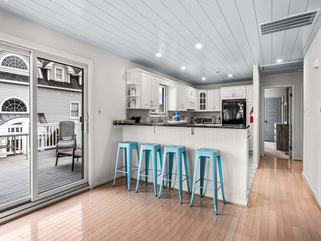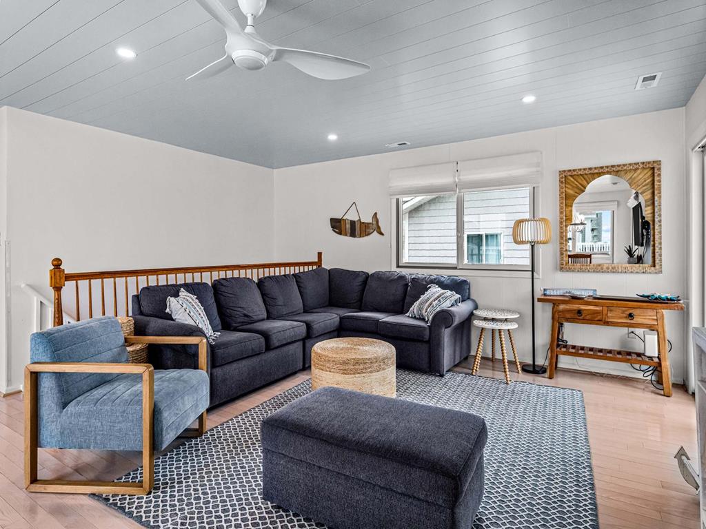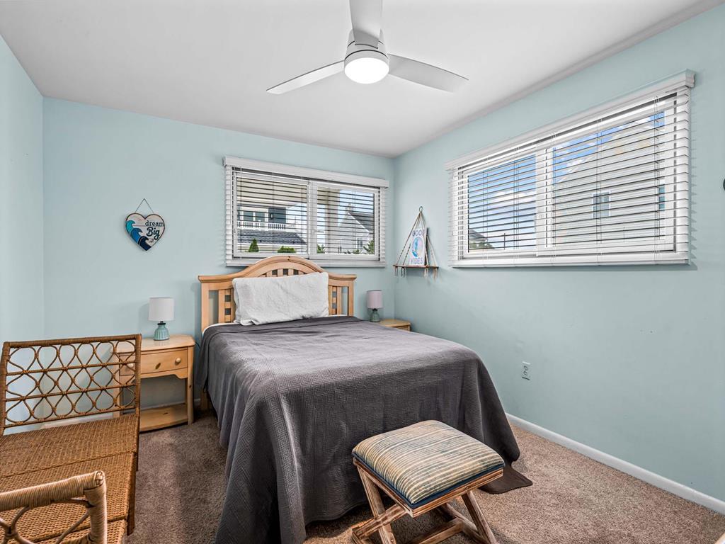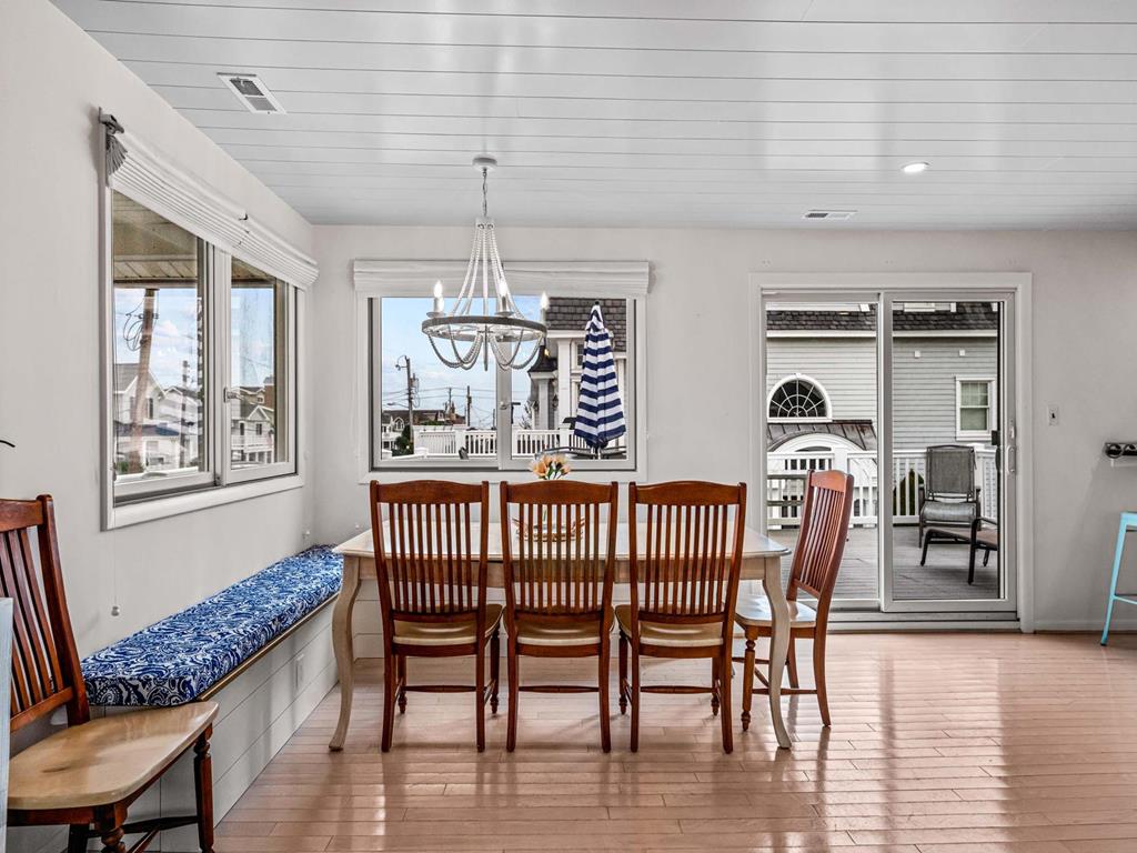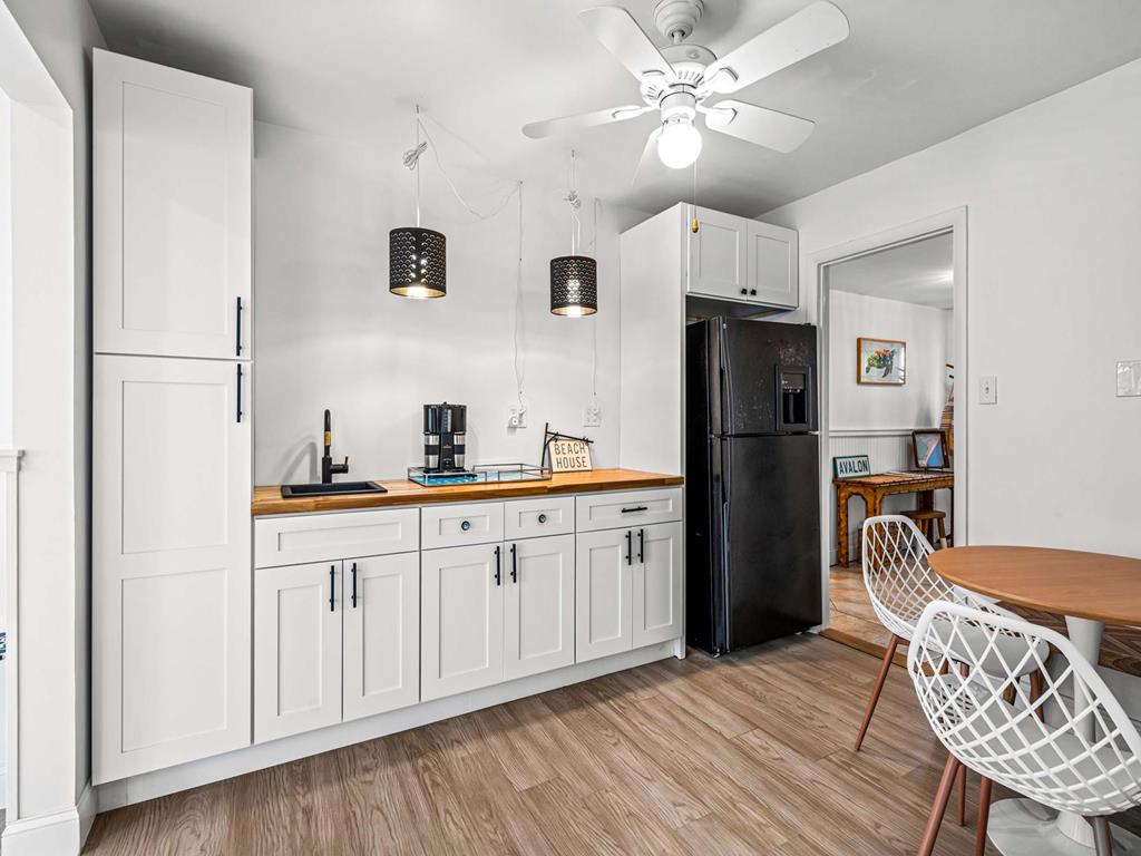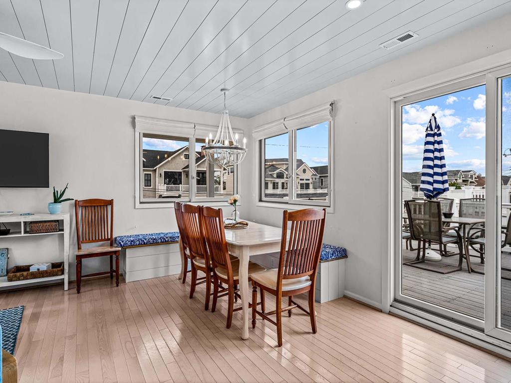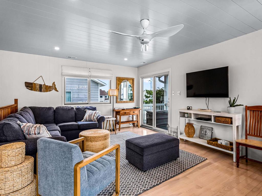 Recently updated this 5 bedroom, 4 bathroom single family home is just 11 homes from the beach path in the south-end of Avalon. The property has been newly furnished, painted, new flooring and exterior upgrades. The first floor consists of a large family room, bar area, 3 bedrooms, a full hall bath, laundry and powder room. Bedrooms include a king ensuite with walk in shower, a queen bedroom and a bedroom with a queen & twin trundle. Enjoy the ocean views from the second floor with an expansive wrap around deck, large family room open dining area and kitchen, all outfit with a gorgeous shiplap ceiling. Seating is never an issue with a dedicated dining area and peninsula seating in the kitchen. A full hall bath is located just off the kitchen area. Towards the rear of the second floor, another king primary ensuite and a bedroom with a set of twins. This home is pet friendly and impeccably maintained! With just a short bike ride to Avalon and Stone Harbor, this central location truly lends itself to the best beach living you will find. Book your family vacation now to enjoy everything Avalon has to offer. Owner offers YouTube TV streaming.