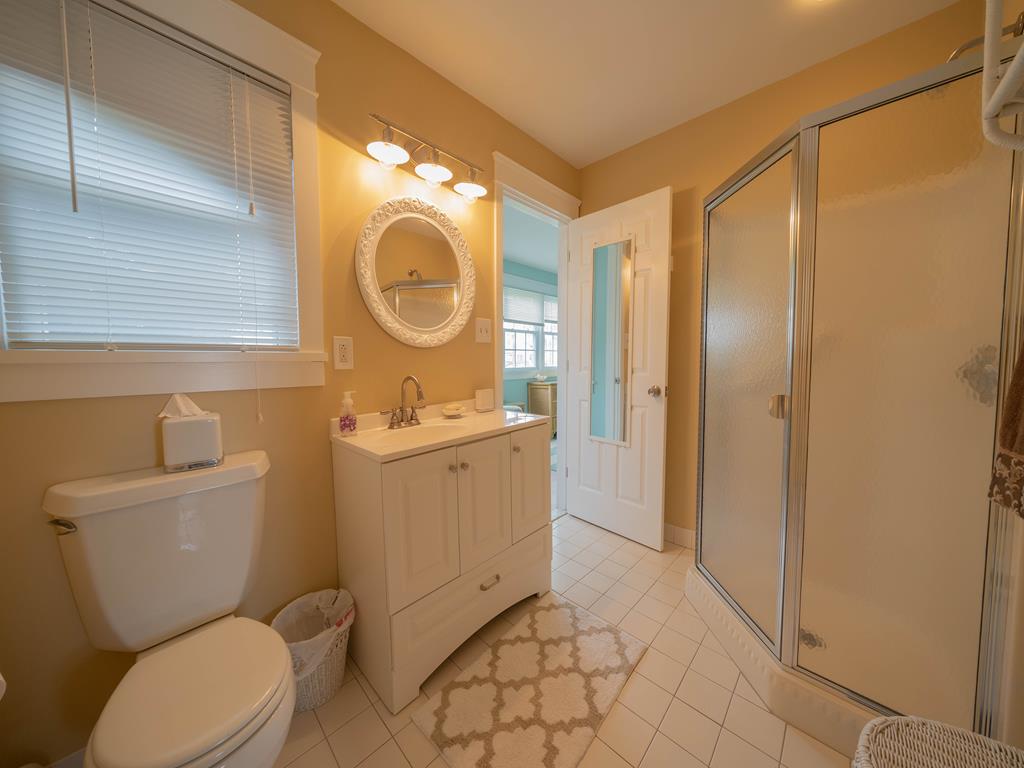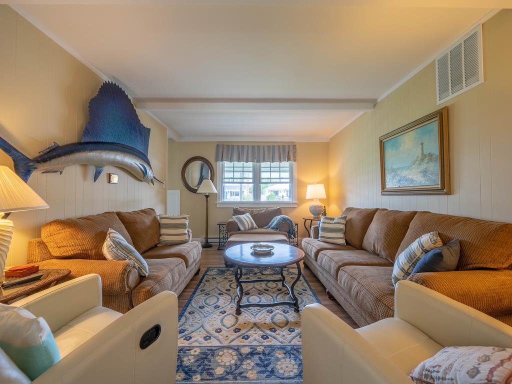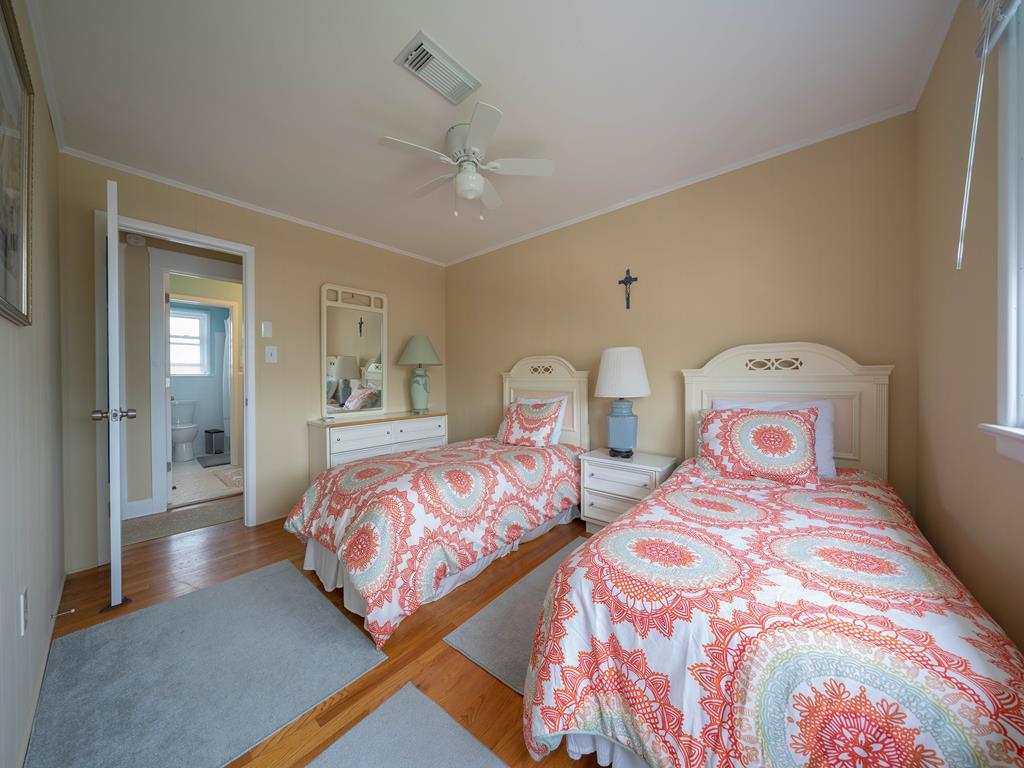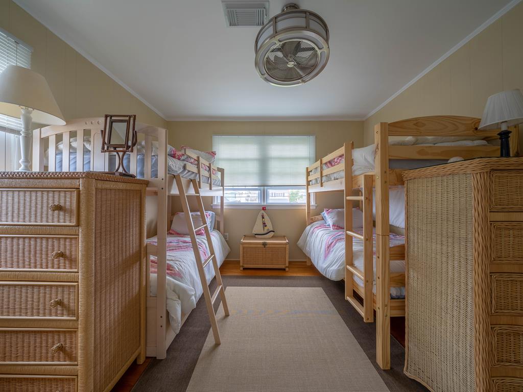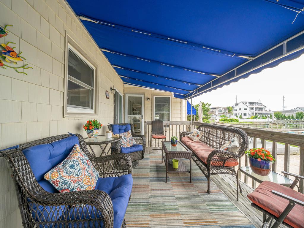 Extremely well equipped 2 story home with traditional floor plan, located on the bay with direct water access and outstanding sunset views. The first floor consists of 2 bedrooms (1 facing the bay) with an adjoining jack and jill full bath, kitchen, dining area, enclosed porch all facing the bay and opening out to a covered patio, and spacious deck with plenty of room for grilling, entertaining, dining and relaxing outdoors. There is a separate laundry room and full bath located on the side of the house with easy access to rear yard and outdoor shower. A cozy living room with a large tv, fireplace, and oversized comfortable furniture completes this living space. The second floor consists of 4 bedrooms, the master suite has a private bath and large partially covered deck for enjoying the bay views and summer breezes. There are 3 more bedrooms (1 facing the bay) and a full size hall bath. This home has been recently updated with new flooring, kitchen, baths, paint, some furniture and bedding. Tenants may use beach equipment and water toys. (12 beach tags, 2 kayaks, 2 paddle boards, 6 bikes, 6 beach chairs provided) Plenty of off-street parking.