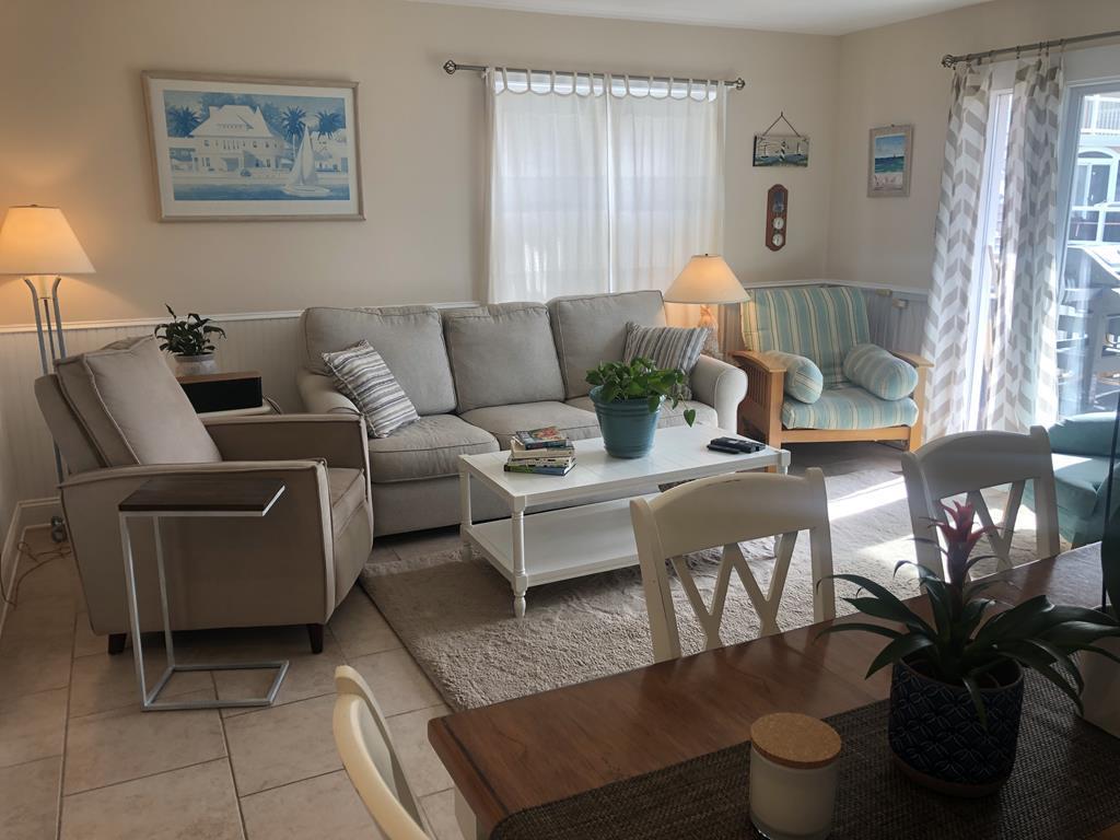 Bay Front with a Boat Slip! This 4 bedroom pet friendly bayfront home has multiple decks with plenty of outdoor seating and open space to take advantage of being directly on the bay. The boat slip has a 20 foot allowance maximum. There is a garage on the ground floor, the first level is the living room, kitchen, and dining area. There is one bedroom on this level as well. A spacious deck is off the living area with stunning bay views and access to the lower level deck with bay access. The top level has three more bedrooms- one with a bunk bed, one with a Pyramid bunk bed, and the last with a King bed and deck access. In addition to having bay access, amazing sunsets, you are only a short walk to downtown where there are many restaurants, shops, the promenade, and beach! Fantastic location! Fantastic views! Pet Friendly!