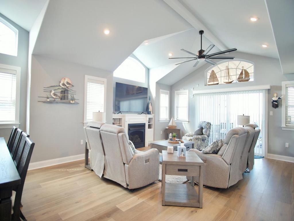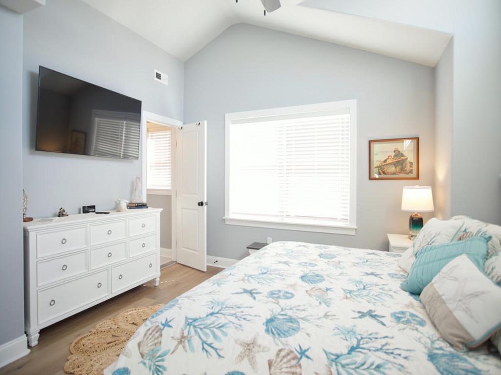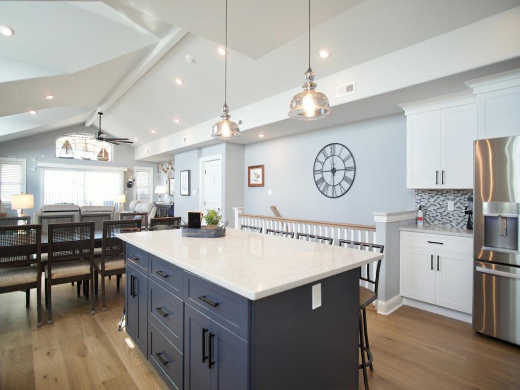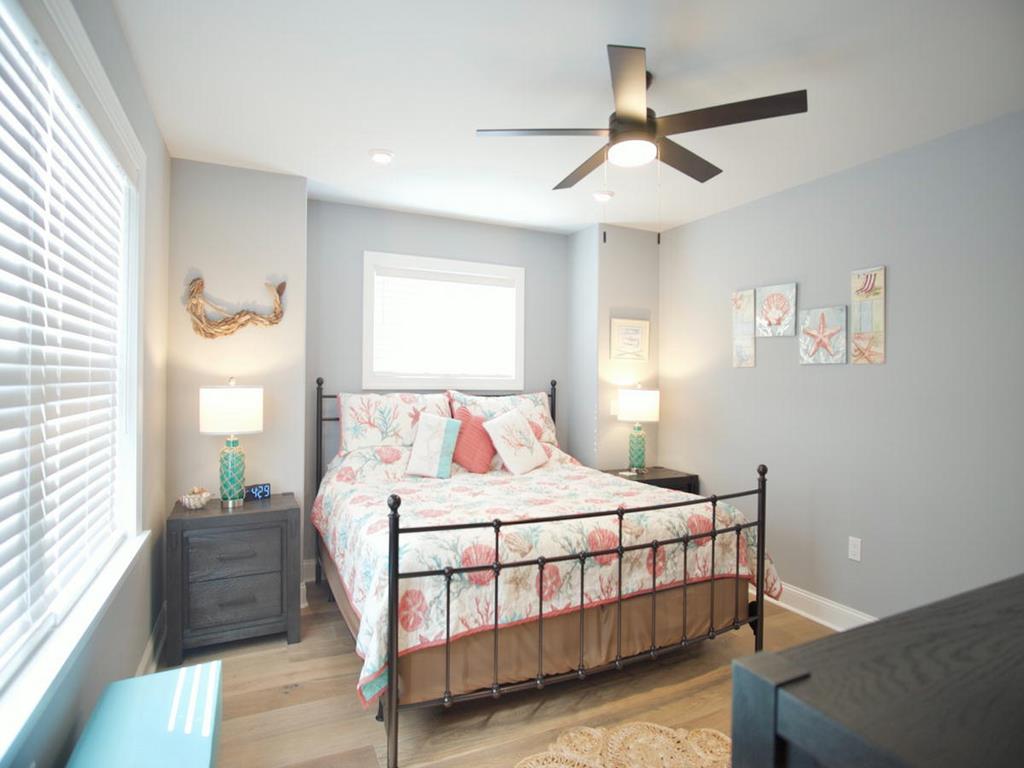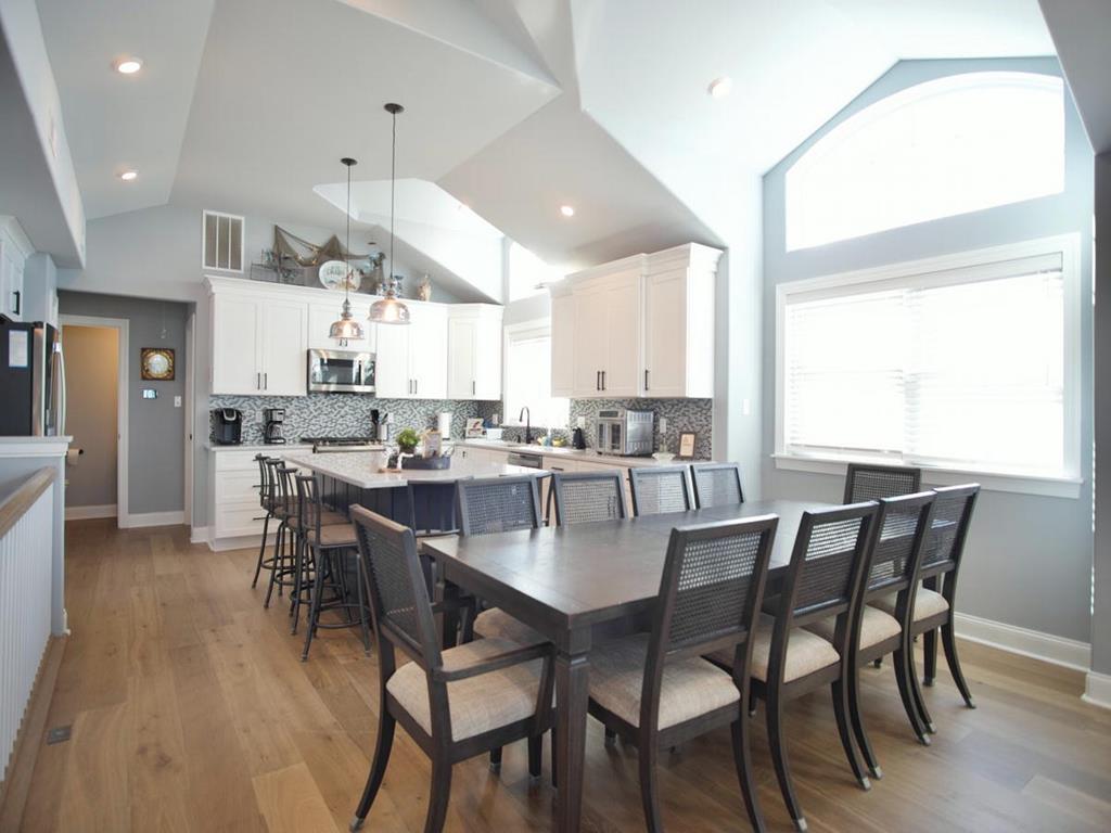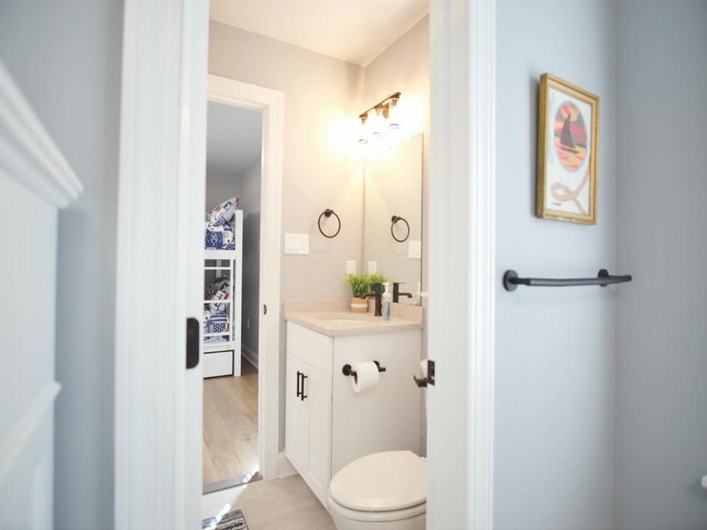 5 bedroom/5.5 bath townhouse with ground floor elevator and a bonus room with full bath! As you enter the front door there is a large bonus room with a king bed, private full bathroom with a tub, mini kitchen, seating area, tv, and sliding doors that lead to a rear deck with access to the backyard. The second floor features 4 bedrooms, 3 full bathrooms, and a laundry closet. The first bedroom is a king suite with its own private bathroom including walk-in shower and a private covered deck. The second bedroom has 2 twin bunk beds, tv, and access to a Jack and Jill bathroom. The third bedroom has a full bunk bed (full on the top and bottom) with a single trundle underneath, tv and also connects to the Jack and Jill bath. Fourth bedroom is another king suite with its own private bathroom including walk-in shower and has a tv. The top level of this home features a spacious great room with a tv, fireplace, dining area, kitchen with quartz countertops, all new stainless-steel appliances, and a large covered deck overlooking the wetlands. Located on this level is also the fifth bedroom which is a king suite with private bath, walk-in shower, and tv. The elevator goes from the garage up to the second and third floors- it does not stop on the floor with the bonus room. There is an extra fridge in the garage along with beach chairs and beach equipment for you to use during your stay.