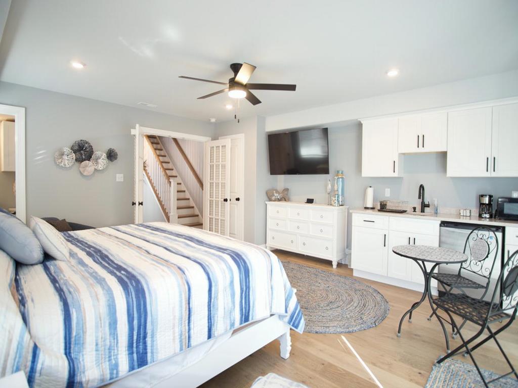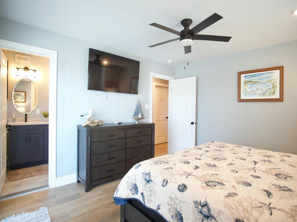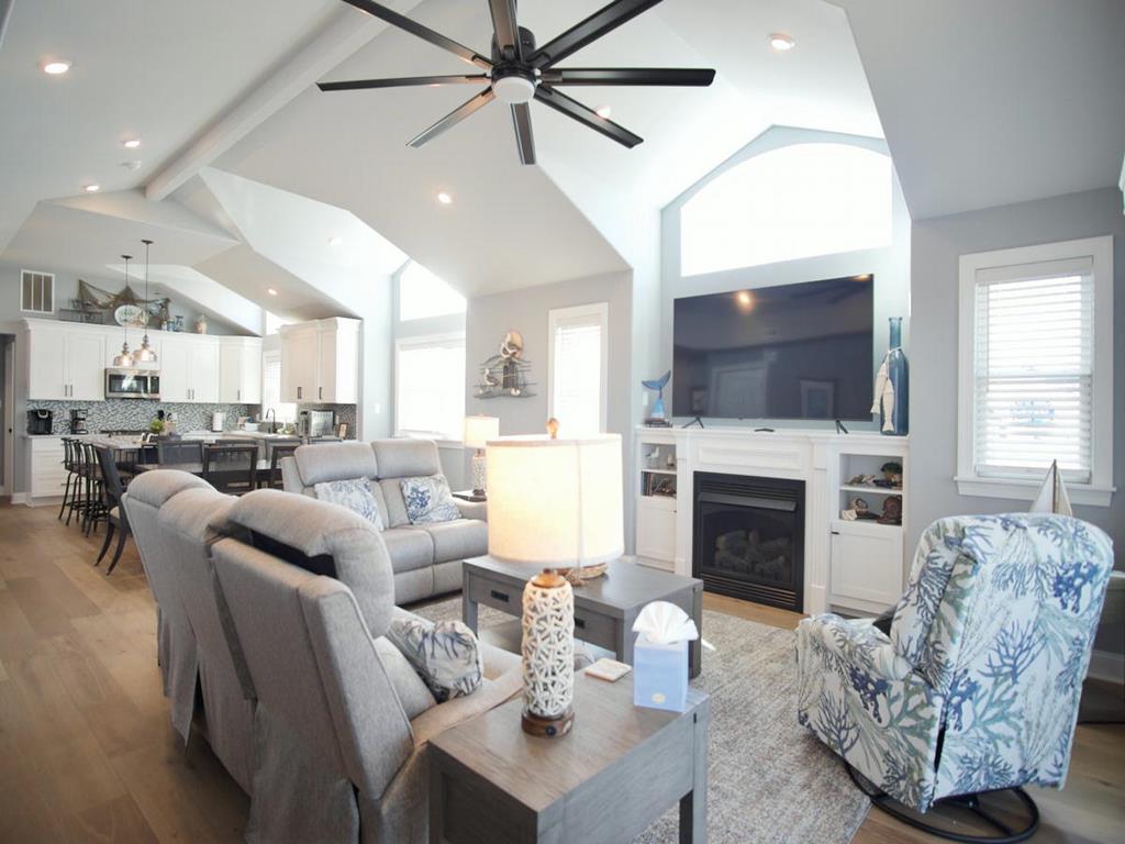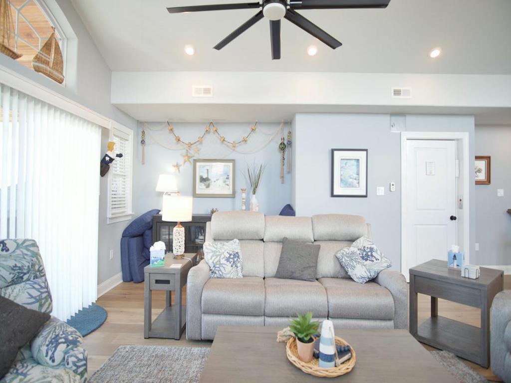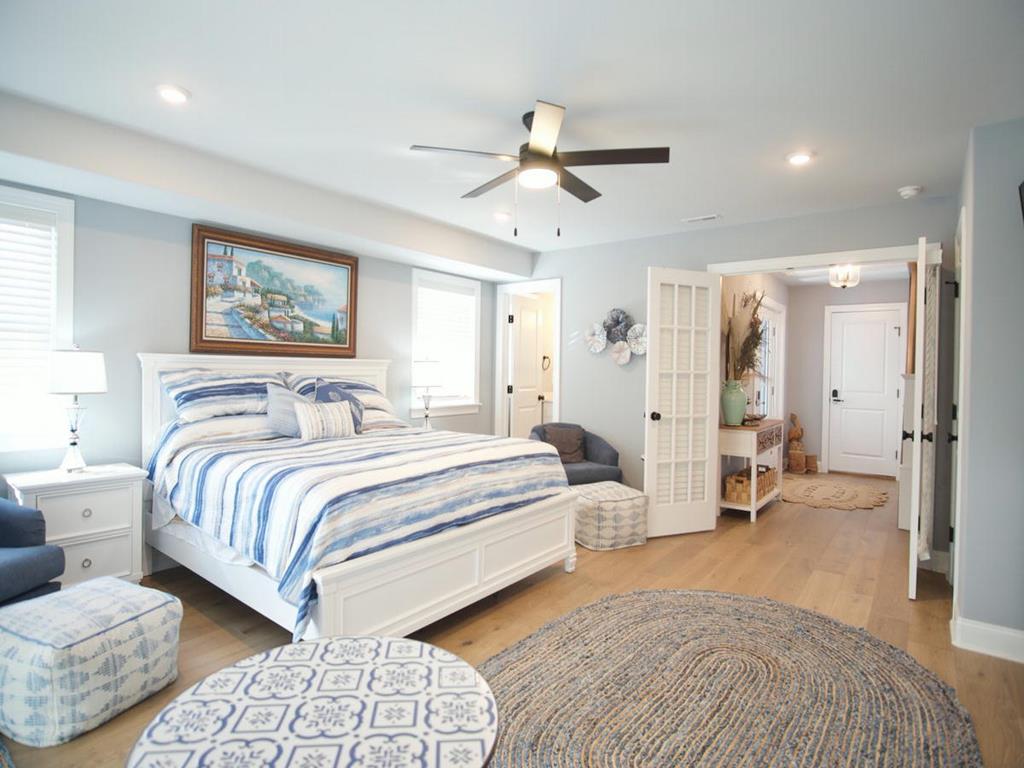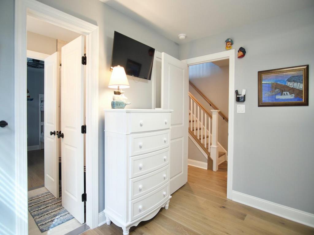 5 bedroom/5.5 bath townhouse with ground floor elevator and a bonus room with full bath! As you enter the front door there is a large bonus room with a king bed, private full bathroom with a tub, mini kitchen, seating area, tv, and sliding doors that lead to a rear deck with access to the backyard. The second floor features 4 bedrooms, 3 full bathrooms, and a laundry closet. The first bedroom is a king suite with its own private bathroom including walk-in shower and a private covered deck. The second bedroom has 2 twin bunk beds, tv, and access to a Jack and Jill bathroom. The third bedroom has a full bunk bed (full on the top and bottom) with a single trundle underneath, tv and also connects to the Jack and Jill bath. Fourth bedroom is another king suite with its own private bathroom including walk-in shower and has a tv. The top level of this home features a spacious great room with a tv, fireplace, dining area, kitchen with quartz countertops, all new stainless-steel appliances, and a large covered deck overlooking the wetlands. Located on this level is also the fifth bedroom which is a king suite with private bath, walk-in shower, and tv. The elevator goes from the garage up to the second and third floors- it does not stop on the floor with the bonus room. There is an extra fridge in the garage along with beach chairs and beach equipment for you to use during your stay.