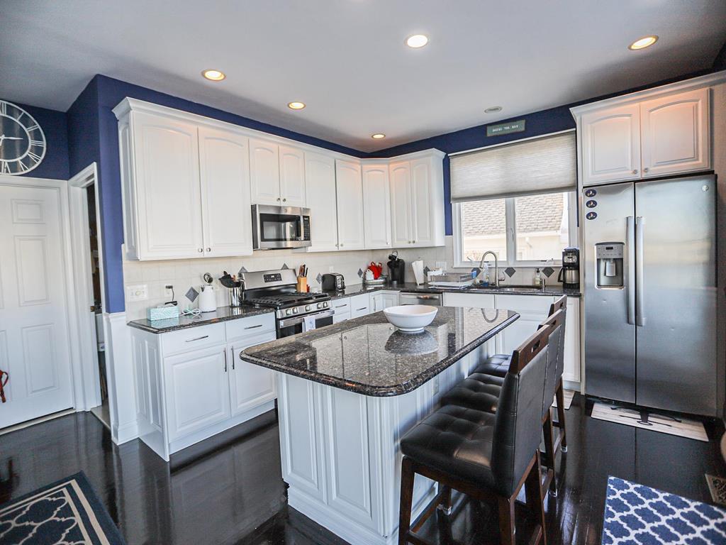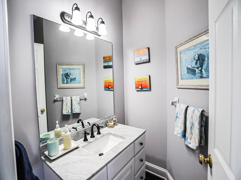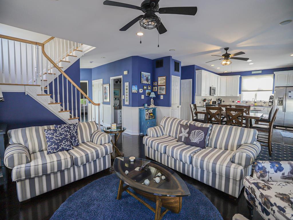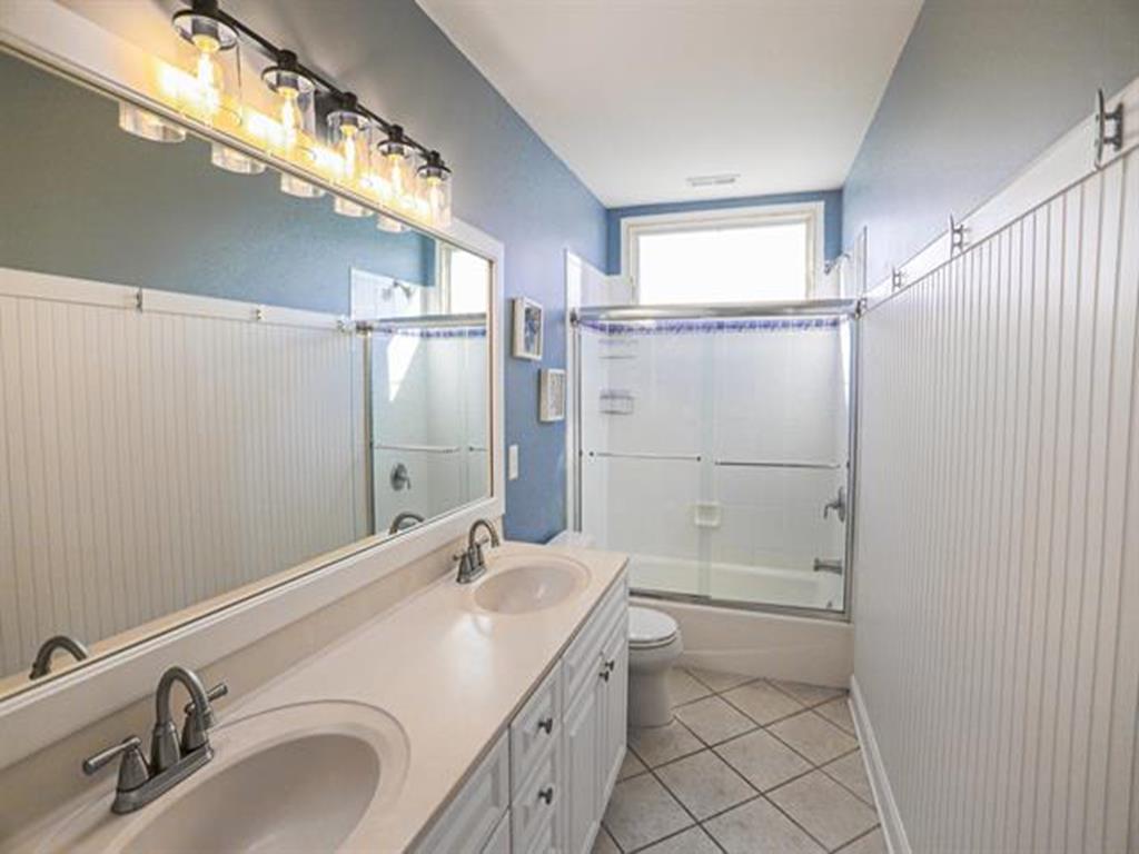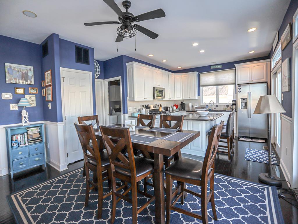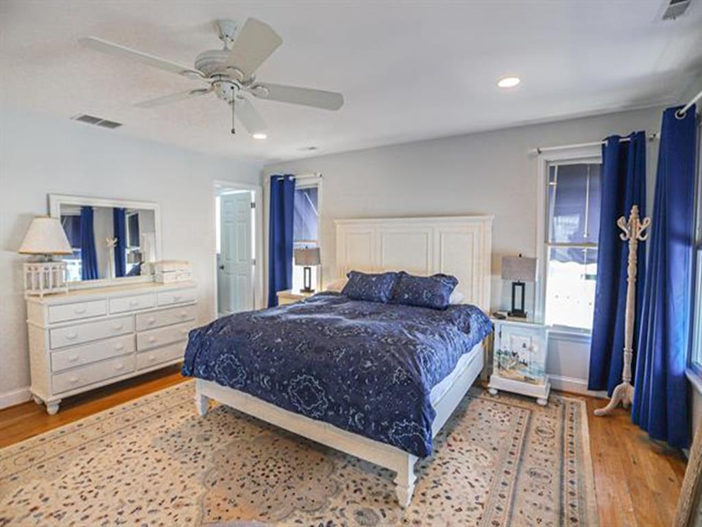 This beautiful bayfront offers 5 bedrooms, 3.5 baths and sleeps 15. First floor has a bedroom with a queen & a twin bed, ensuite tub/bath combo - perfect for any family needing single floor living. Spacious living room and kitchen areas, table seats 6 and the island has an additional seating for three. The second level has four more bedrooms and two full bathrooms. 2 bedrooms each have a queen & double size beds, these bedrooms share a private deck off the front of the house with the third bedroom with a queen. These bedrooms share a hall bath with a tub/shower combo. The master has a king bed and an ensuite with walk in shower. Access to the roof top deck is also off the master. Bay views from all decks and bedrooms. Explore the outdoor area through the three sets of sliders off the living and dining areas that lead to the spacious back deck and private dock overlooking the bay, complete with a boat slip, ready for aquatic adventures. Fire up the gas grill and dine al fresco. A private outdoor shower for rinsing off after a day spent at the beach or on the water. Owner provides beach tags, beach chairs, umbrella, bikes, fishing poles, kayak and an extra refridgerator in garage for your convenience. Store your bikes & beach gear in the garage. Parking for 1 car in the driveway and plenty of off street parking. Walk to dinner, shopping, recreation and the guarded beach. The perfect location!