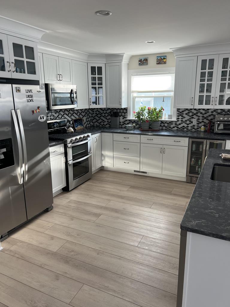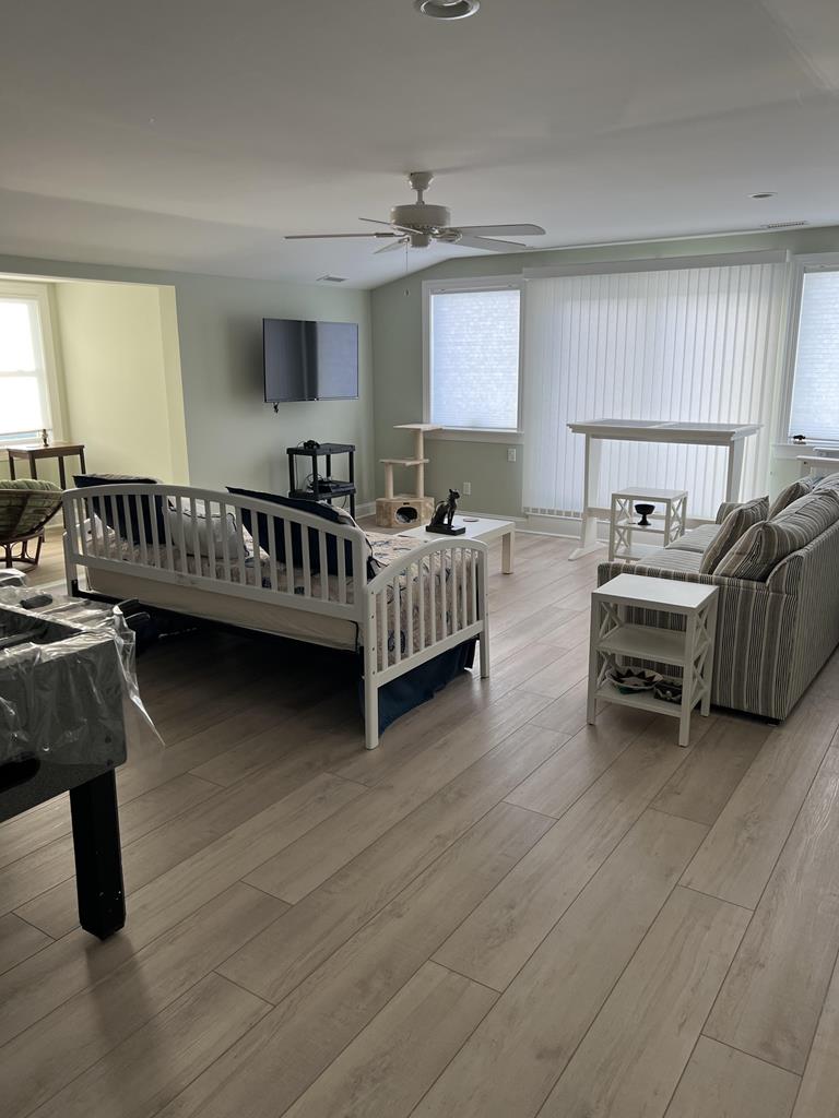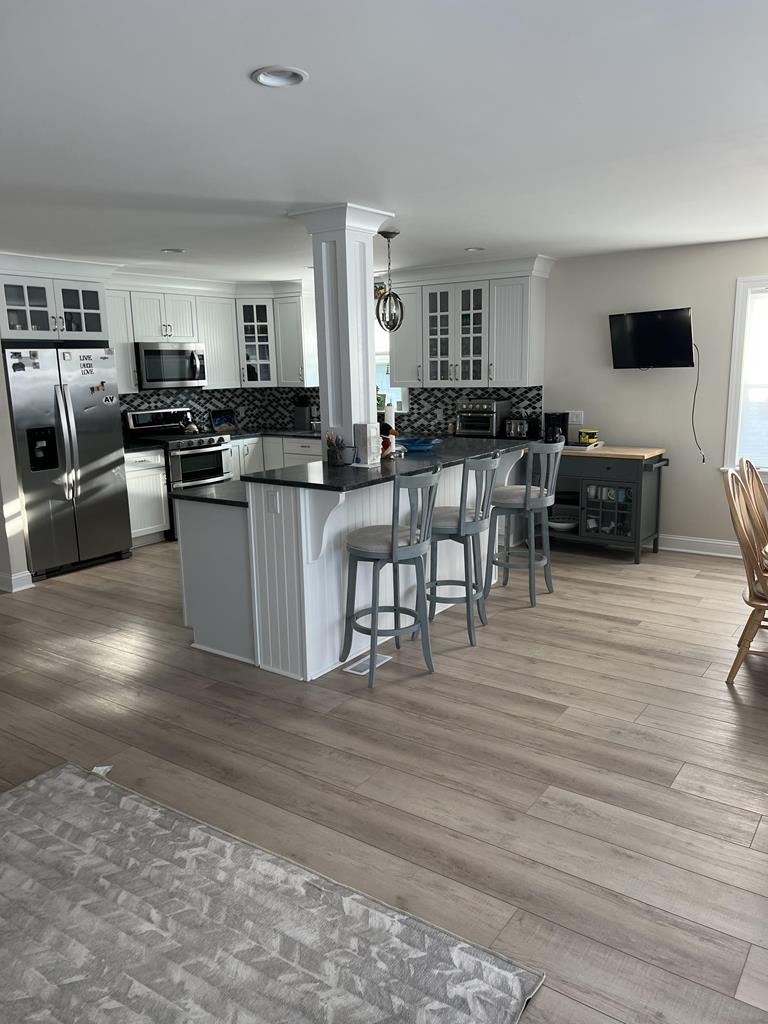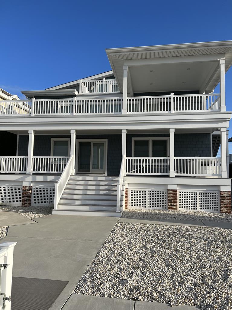 This recently built 3 story home is located in the Lagoon section of Avalon. The views of the waterway and marshland are spectacular. You may swim from the floating dock and there is one boatslip for your use. The elevator goes from the ground level to all floors. There is a living area on all 3 floors. The first floor has 3 bedrooms, each with their own bathroom, an office, powder room and a family room with a kitchenette. There is a deck off of the family room overlooking the bay. The second floor has the master bedroom and bathroom, a powder room, living area, dining area and kitchen. There is a bayside deck and a deck from the master bedroom. The third floor has a family room with a queen sofabed and one day bed, a bathroom and a deck on the bayside. This is a great spot to take a bayfront vacation at the Shore.