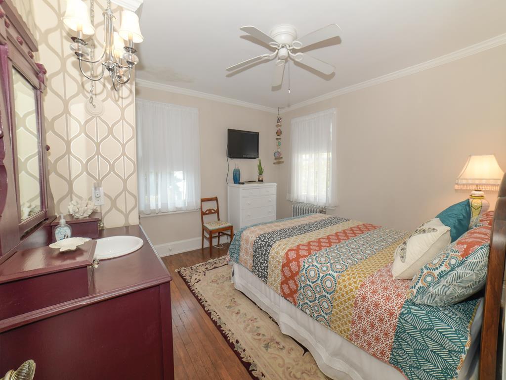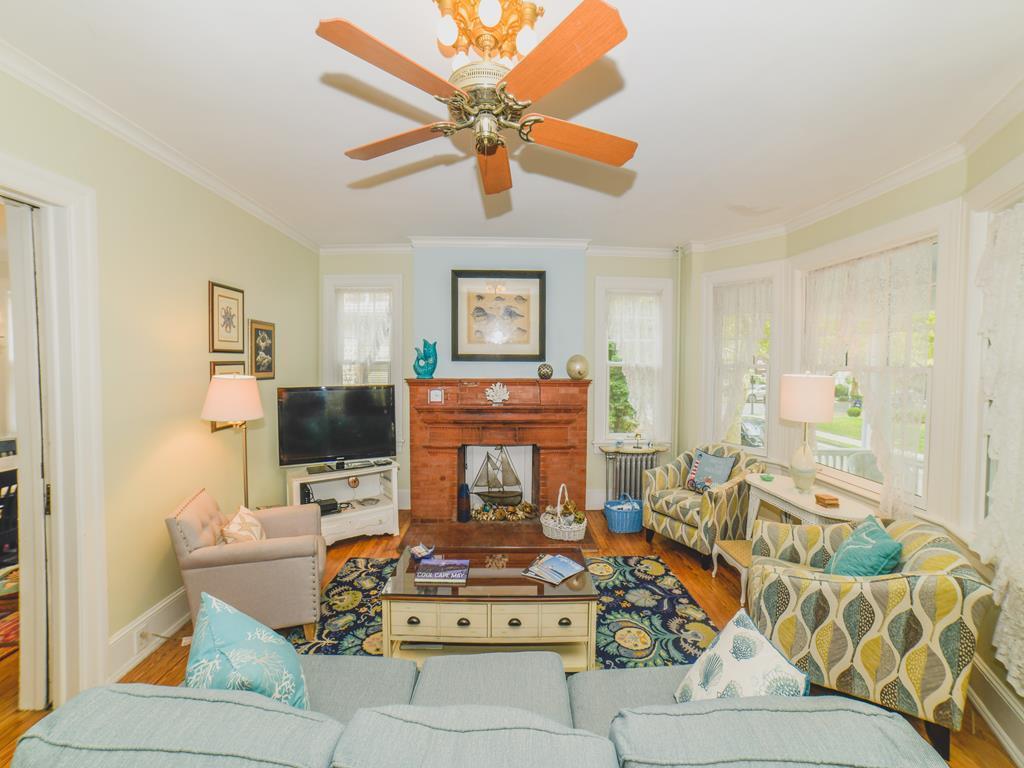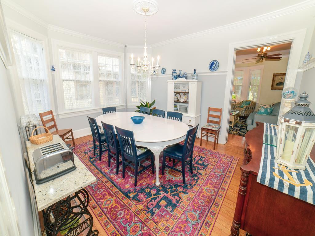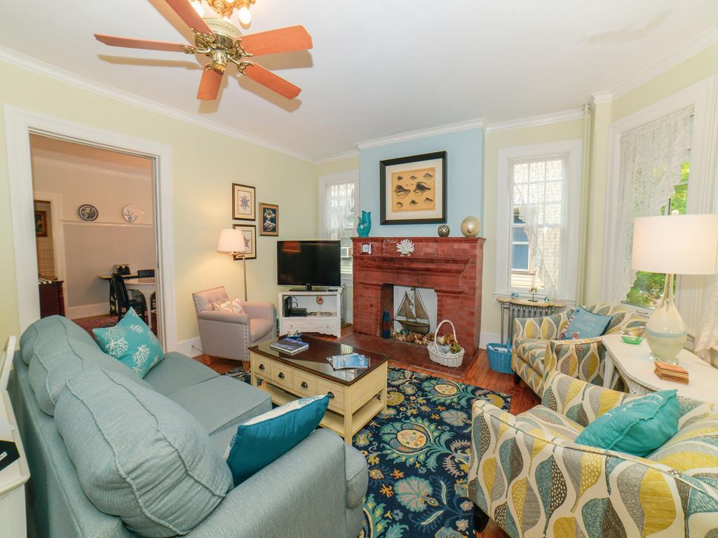 Popular Hughes Street home that has Cape May Charm with carriages passing by, restaurants nearby and 2 blocks to the beach or Washington Street Mall. First floor has living room, dining room, kitchen, full bath with with a tub. Six bedroom home with 4 bedrooms on the 2nd floor, 4 are Queen beds and a full bath. 2 bedrooms on the 3rd floor, 1 bedroom with 2 twins, the other with a queen bed, a full bath on third floor. Off Street Parking for two cars, Outdoor shower