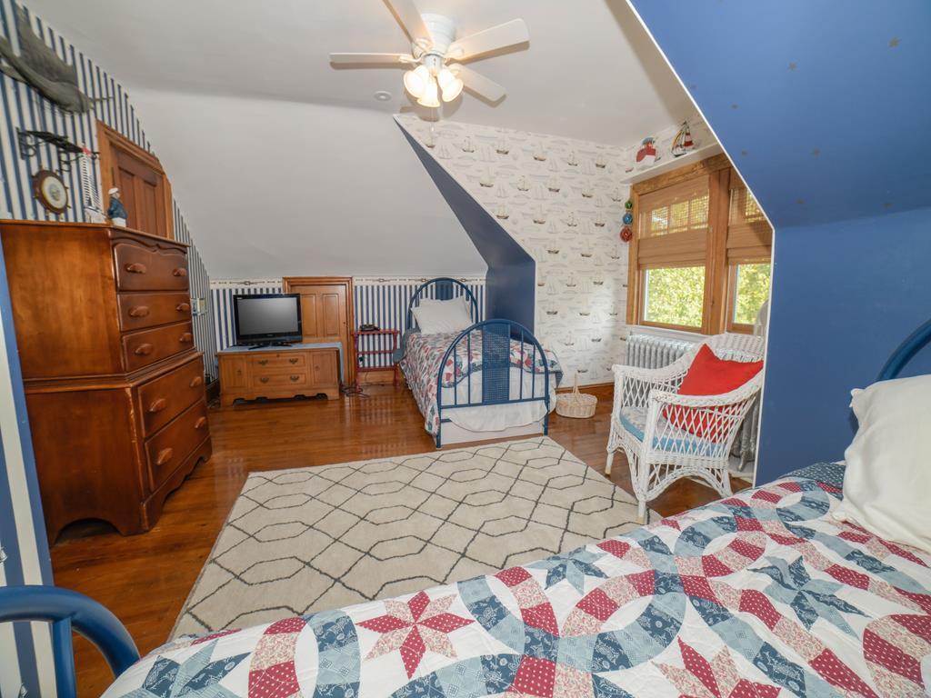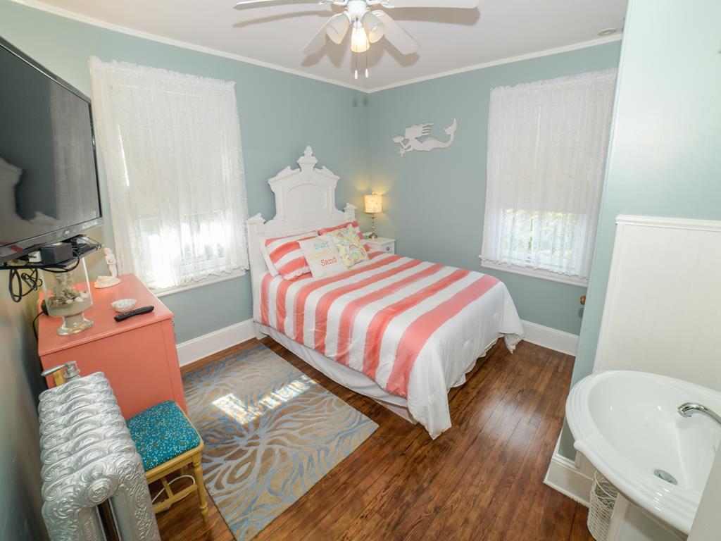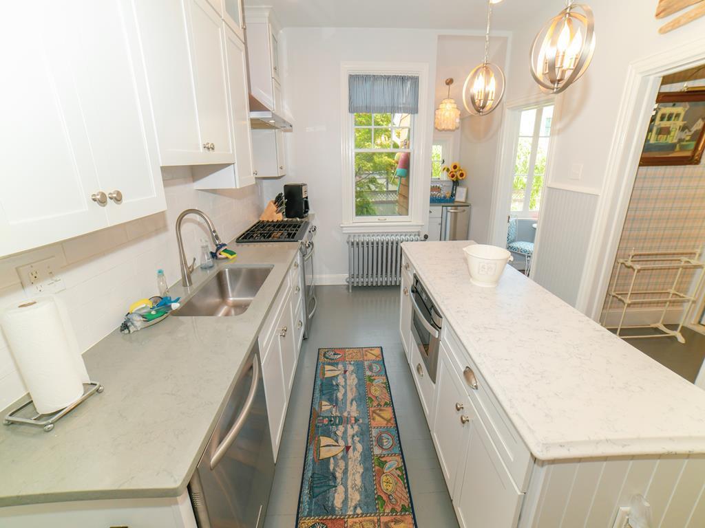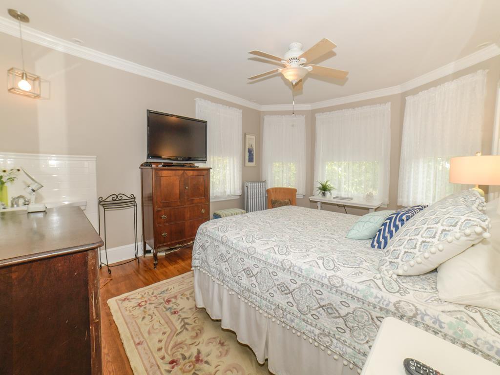 Popular Hughes Street home that has Cape May Charm with carriages passing by, restaurants nearby and 2 blocks to the beach or Washington Street Mall. First floor has living room, dining room, kitchen, full bath with with a tub. Six bedroom home with 4 bedrooms on the 2nd floor, 4 are Queen beds and a full bath. 2 bedrooms on the 3rd floor, 1 bedroom with 2 twins, the other with a queen bed, a full bath on third floor. Off Street Parking for two cars, Outdoor shower