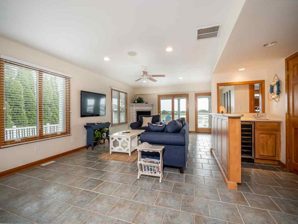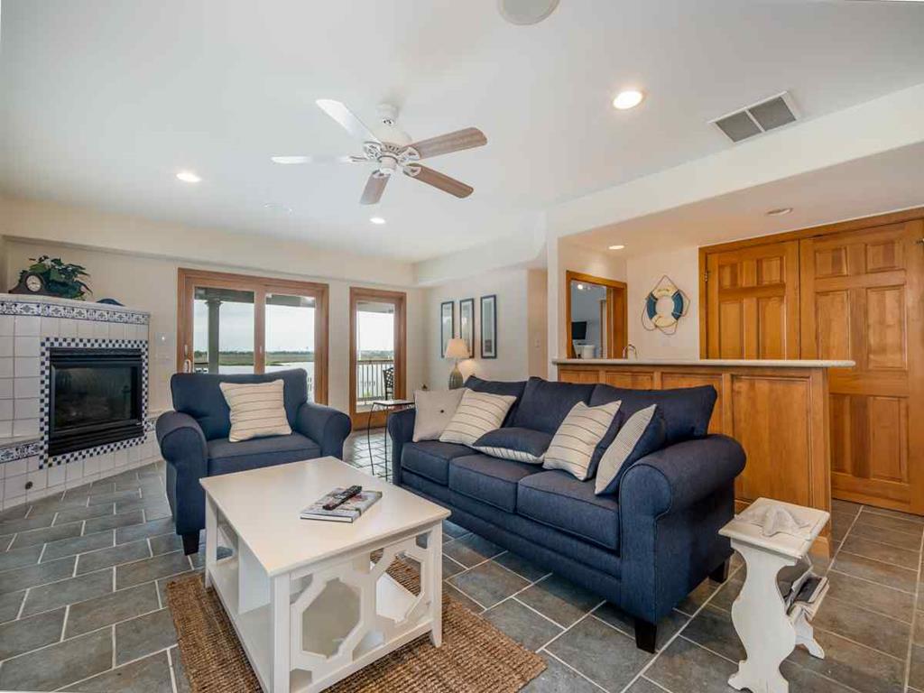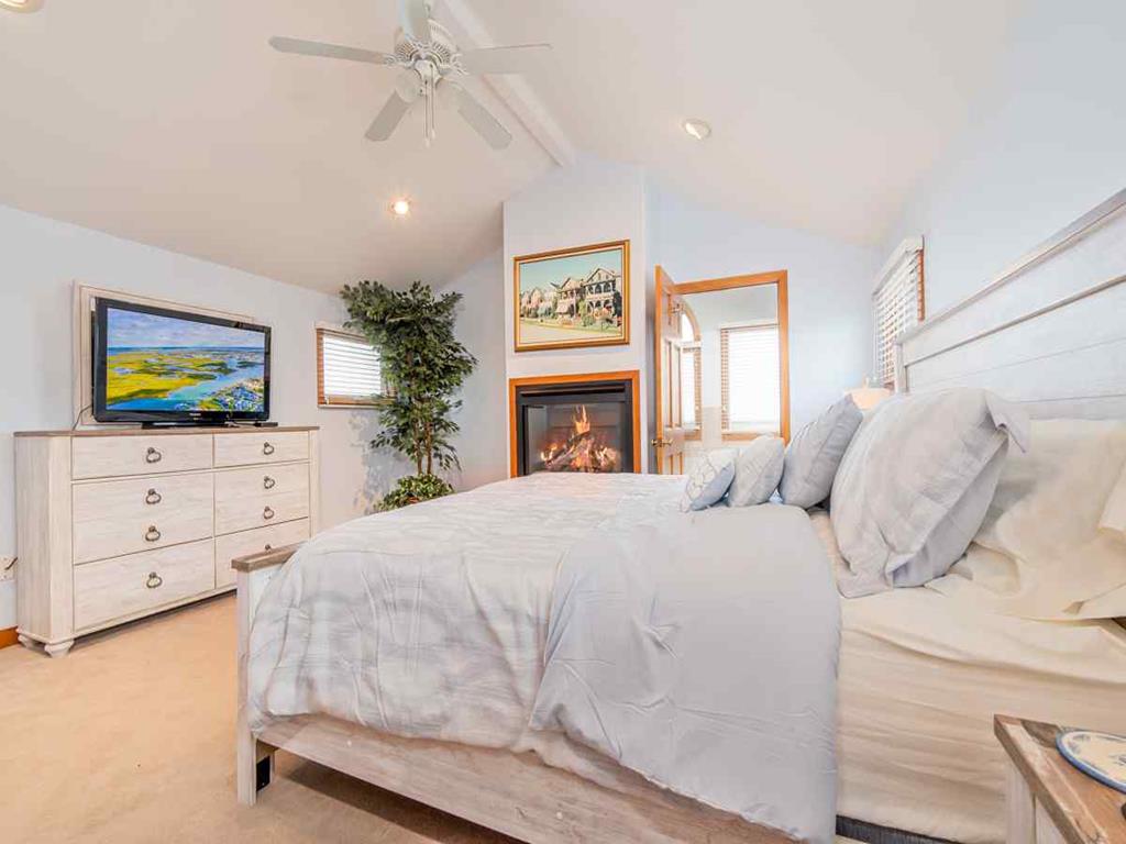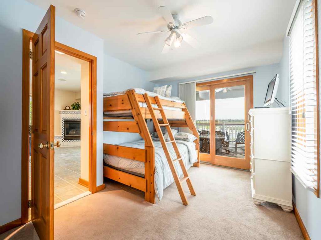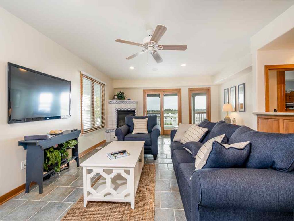 Second floor has panoramic views thorough out. A bright & comfortable living area greets you, fireplace, Smart 65in HDTV, dinning room seating for 8, Well stocked kitchen and counter seating for 3, Sun porch for those rainy days seating for 4-6, along with two more additional bedrooms on the 2nd floor. One bedroom with two queen sized beds the other with a King bed and finally a full-shared hall bathroom.
