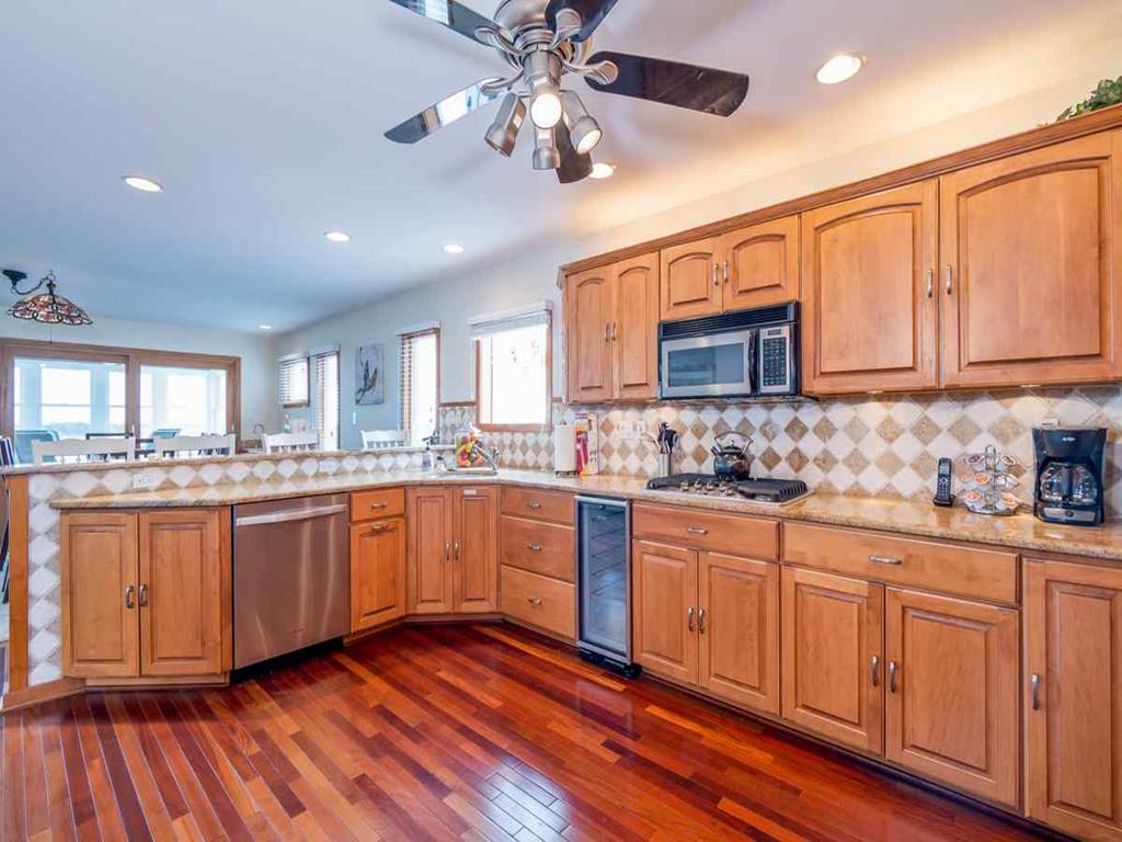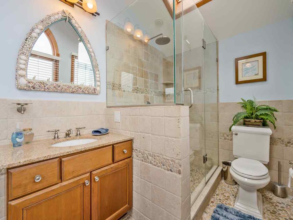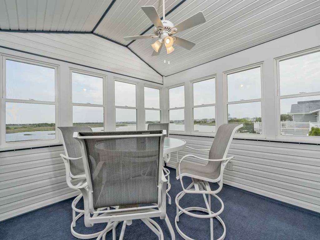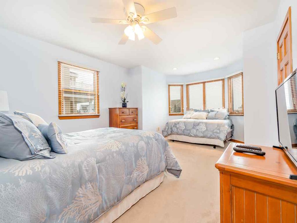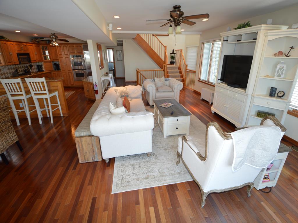Second floor has panoramic views thorough out. A bright & comfortable living area greets you, fireplace, Smart 65in HDTV, dinning room seating for 8, Well stocked kitchen and counter seating for 3, Sun porch for those rainy days seating for 4-6, along with two more additional bedrooms on the 2nd floor. One bedroom with two queen sized beds the other with a King bed and finally a full-shared hall bathroom.