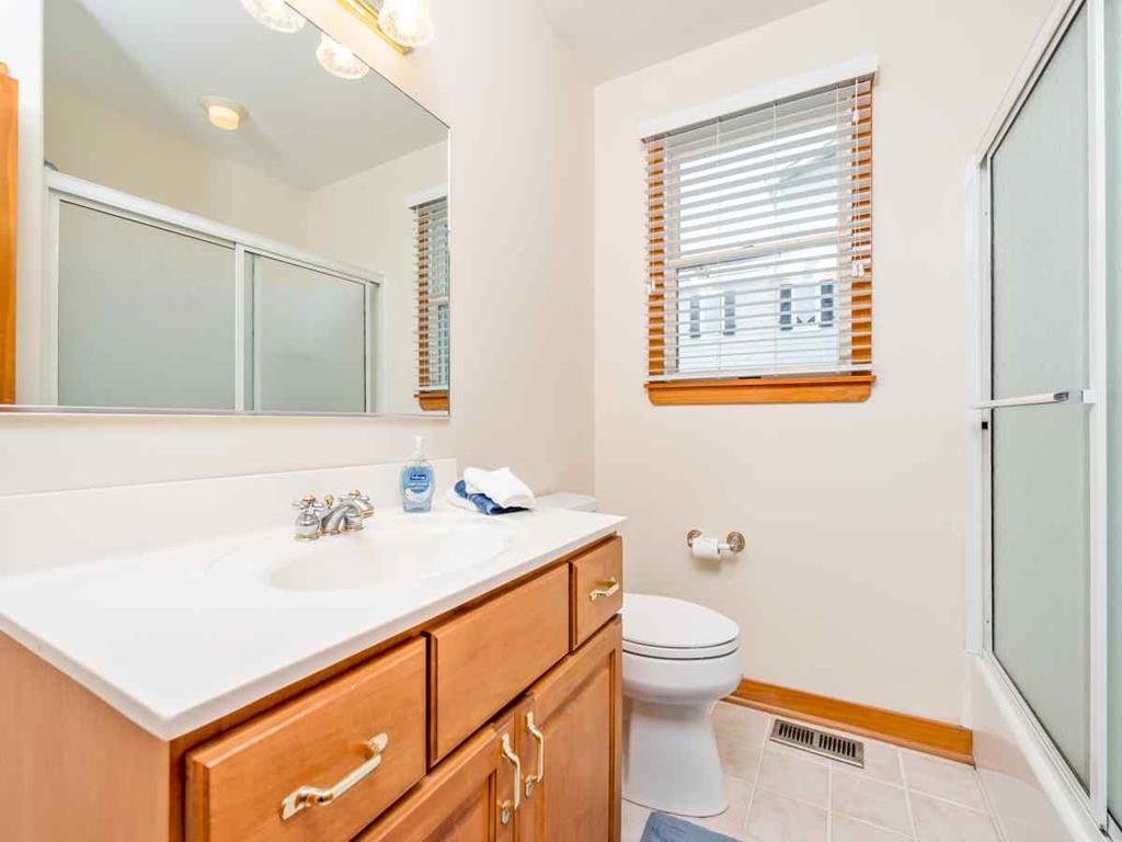 Entering on the first floor - you will find a welcoming family room with wet bar area, fireplace, large smart HDTV, 2 bedrooms -First of two bedrooms on this first floor has a Queen bed and private bath with walk in shower and the 2nd bedroom has bunk bed double mattress on the on bottom twin mattress on top, a full bathroom in the hall and laundry room.