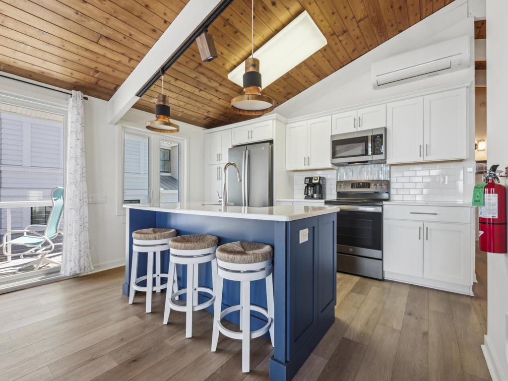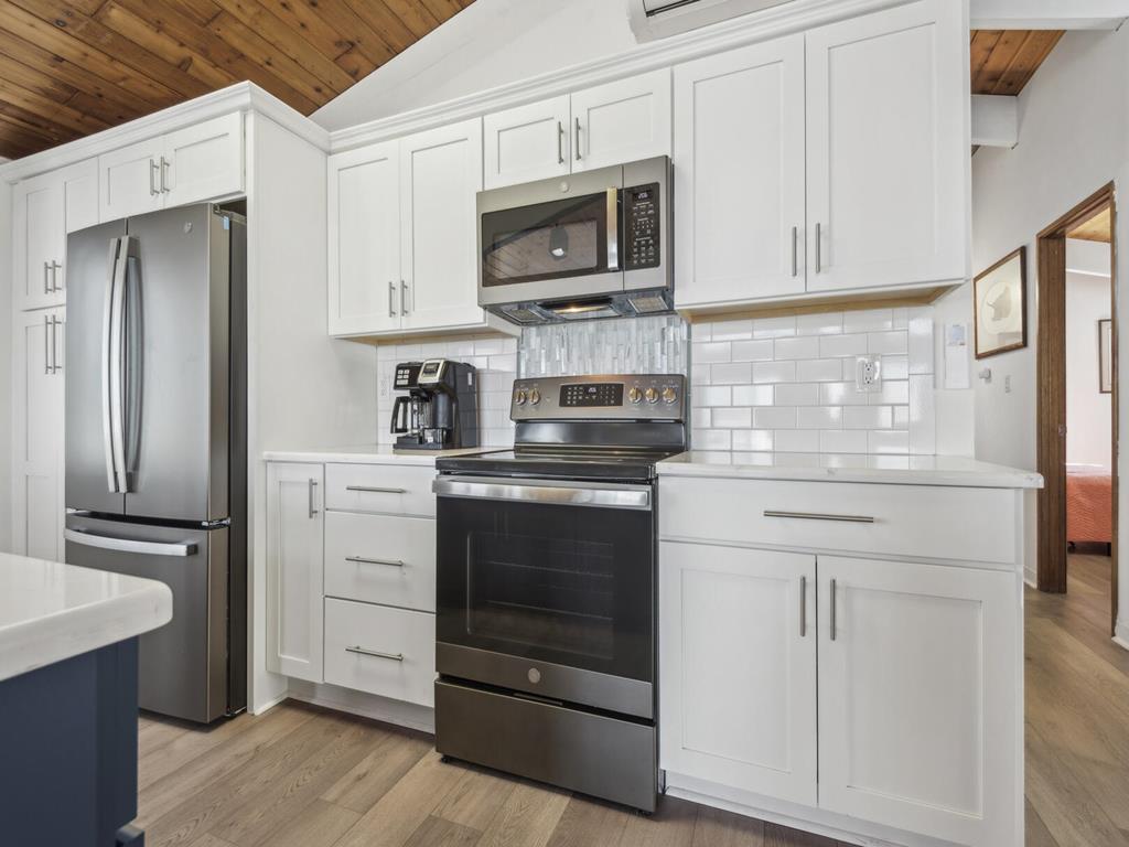As you step inside, you'll find a beautifully furnished living space with modern amenities such as central AC, ceiling fans, and high-speed internet. The kitchen is fully equipped with a dishwasher, coffee maker, toaster, and all the essentials for preparing delicious meals during your stay.