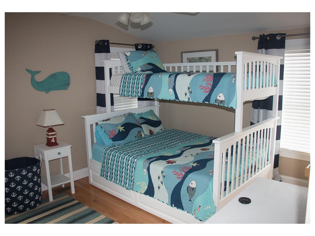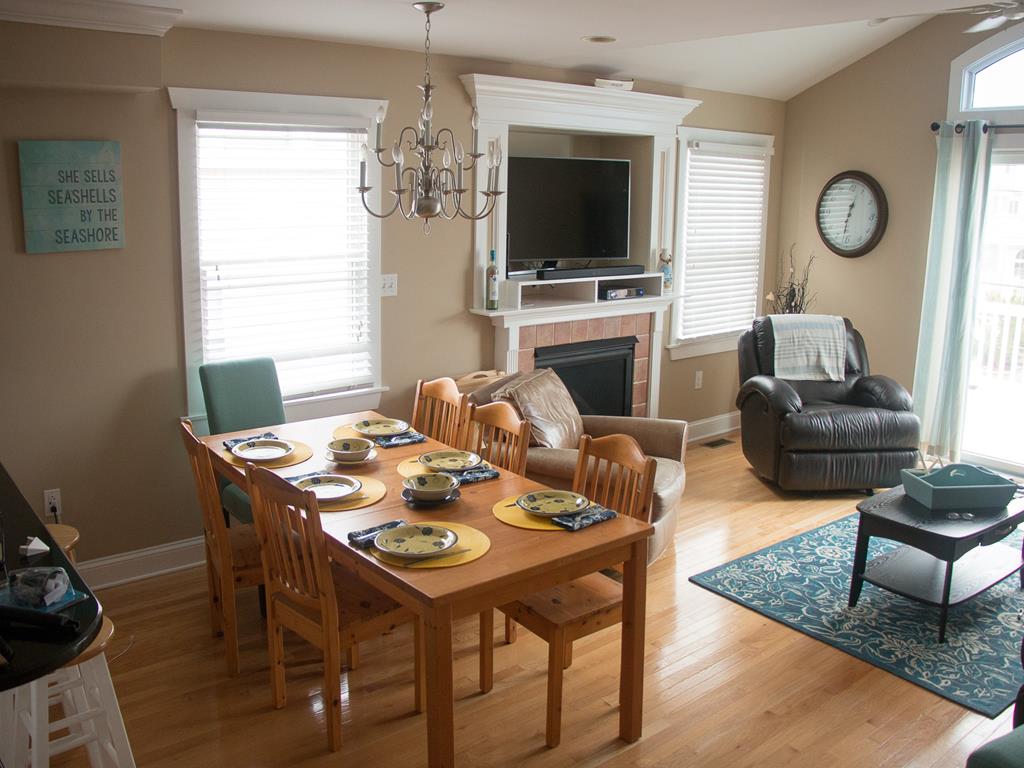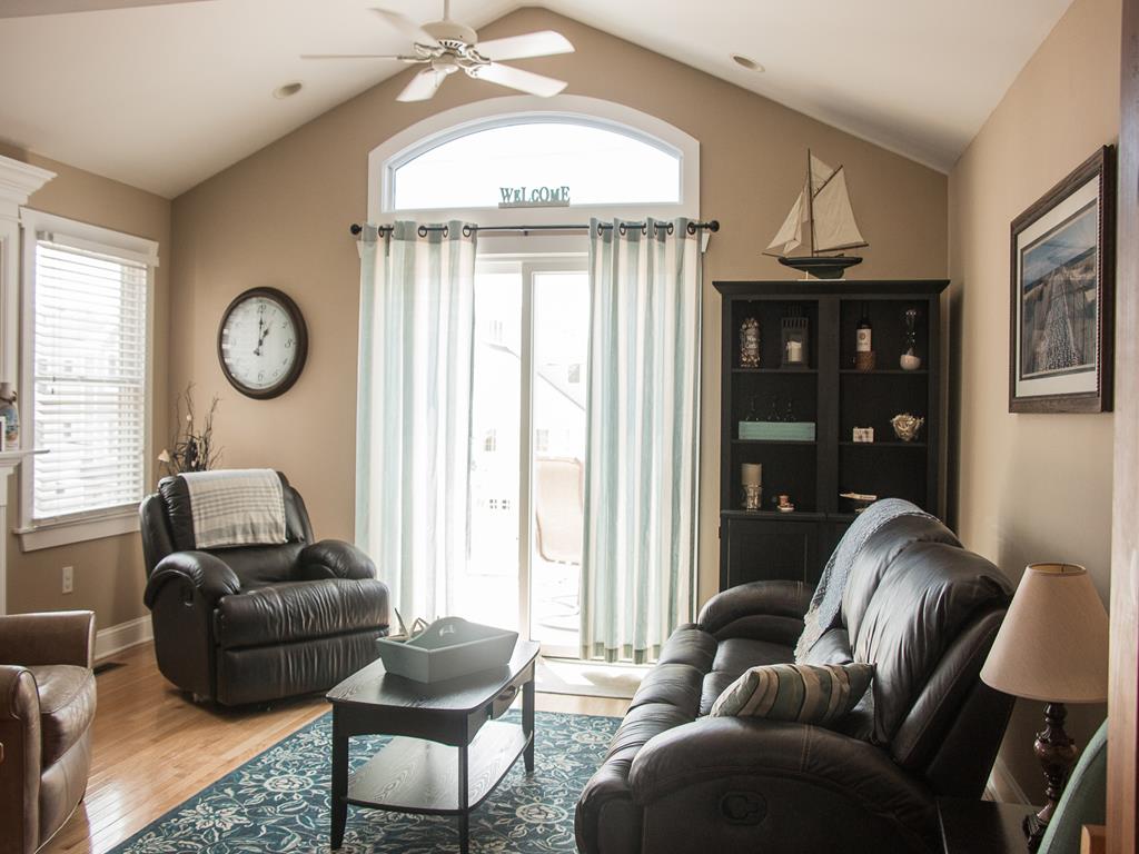 Enjoy your vacation in this beautiful three story townhouse featuring lovely views of the bay and wetlands. With four bedrooms and three bathrooms, there's plenty of room for everyone. A family room on the first floor leads to one of four decks. Also on the first floor is a bedroom with a queen-size bed, a full bathroom with a shower, and laundry room with the convenience of a washer, dryer, and utility sink. The living area on the second floor consists of the kitchen, dining area, and living room which extends to one of the second floor decks. A second floor bedroom with a queen bed has its own deck as well. A full bathroom with a tub completes the second floor. Two more bedrooms are located on the third floor as well as a full bathroom with shower. One bedroom has a queen-size bed and its own private deck - perfect for viewing spectacular sunsets after a long day at the beach. The other has a full bed with a trundle and a single bed. This vacation retreat features all hardwood floors for added beauty. There are 2 'smart' TVs, a full-size crib, high chair, two 'pack 'n plays', two child safety gates, book library. For added convenience it has an outside shower, three boogie boards, beach chairs, all-terrain radio flyer wagon, storage for bikes, and two off-street parking spaces. Located just steps from a public dock on the bay. Note: The owner has a family member that is allergic to all dogs. No dogs permitted at the property at any time.