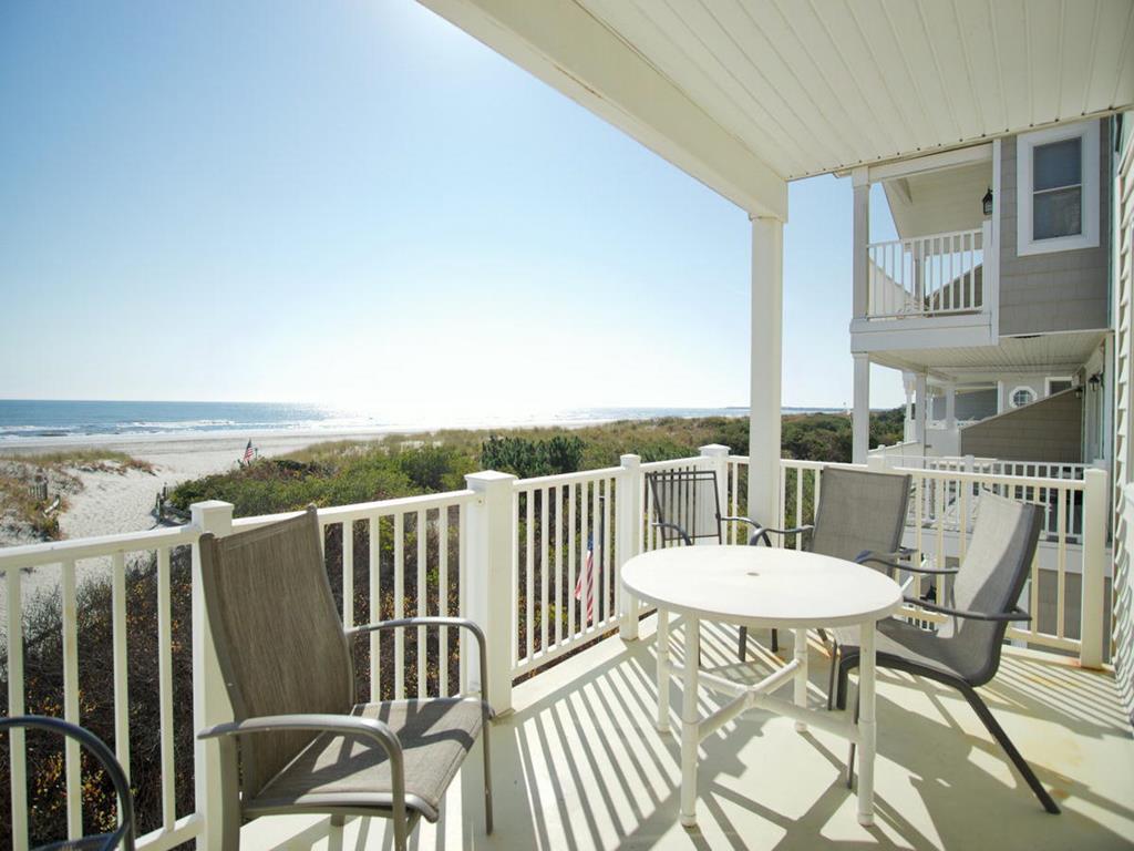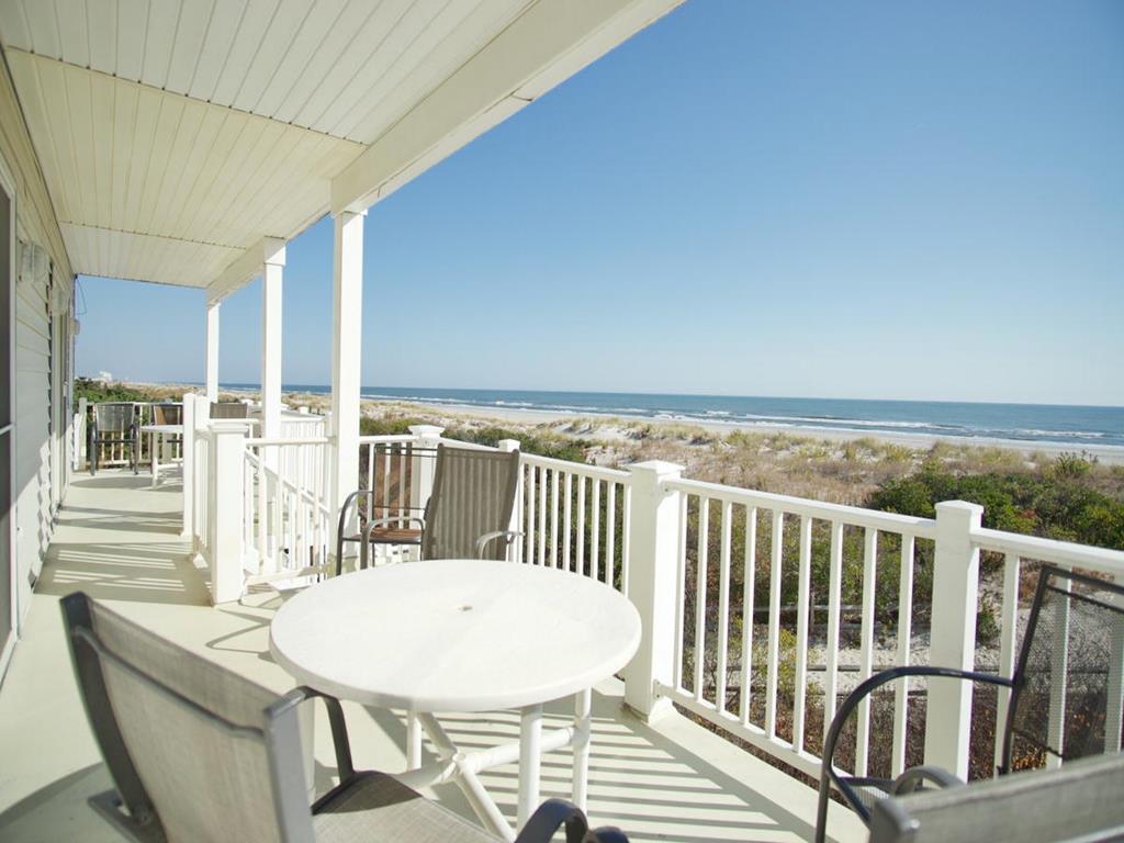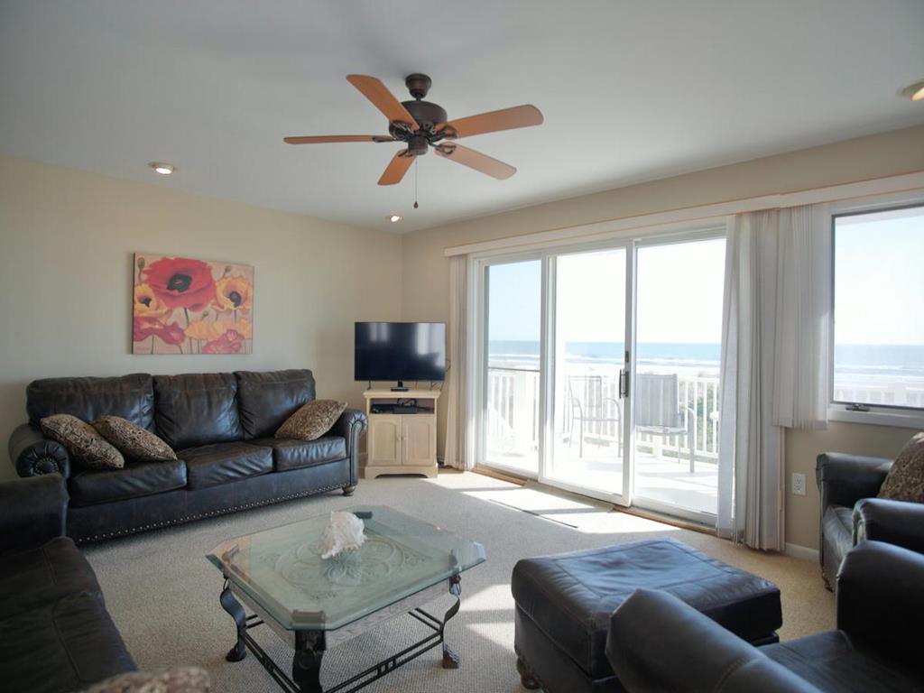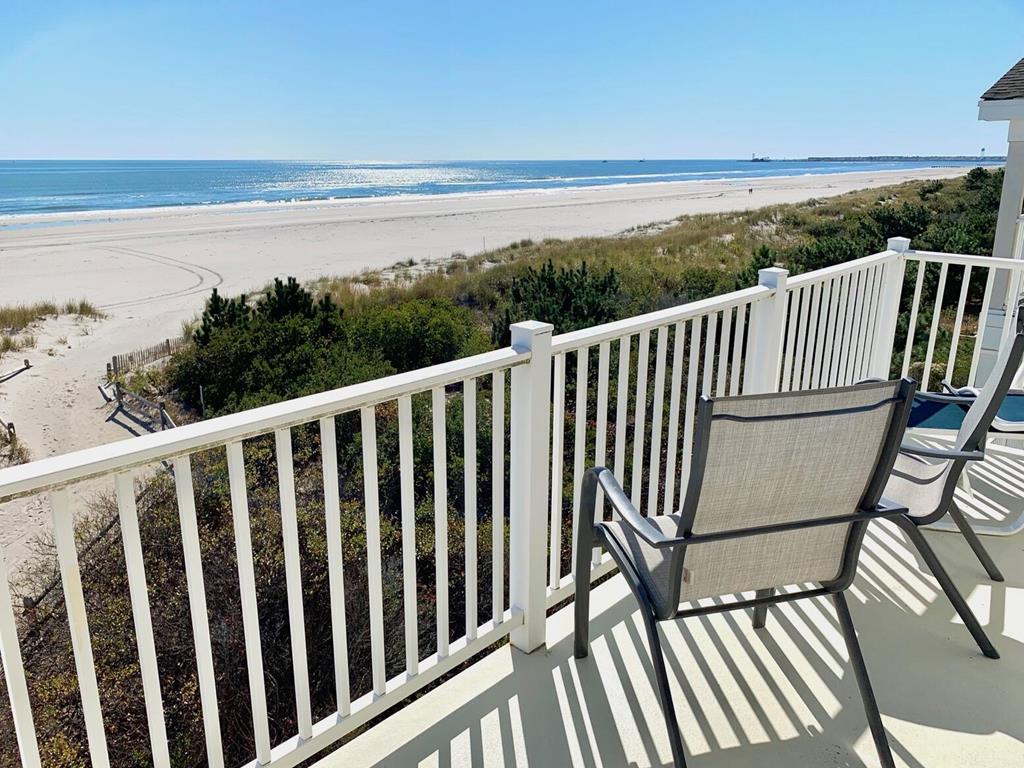 Beachfront Townhouse with Stunning Views!Amenities include ;1st floor master bedroom with full bath and beachfront deck. 2nd bedroom contains 2 sets bunk beds. 3rd bedroom has 2 single beds, TV. There is also a full hall bathroom. 2nd level has living area, dining room, kitchen, half bath and an amazing ocean view deck. Unobstructed views from the deck. 3rd level is the master suite with a queen bed, TV, full bath and sweeping views of the coast line. In total there are three beachfront decks for your viewing pleasure!