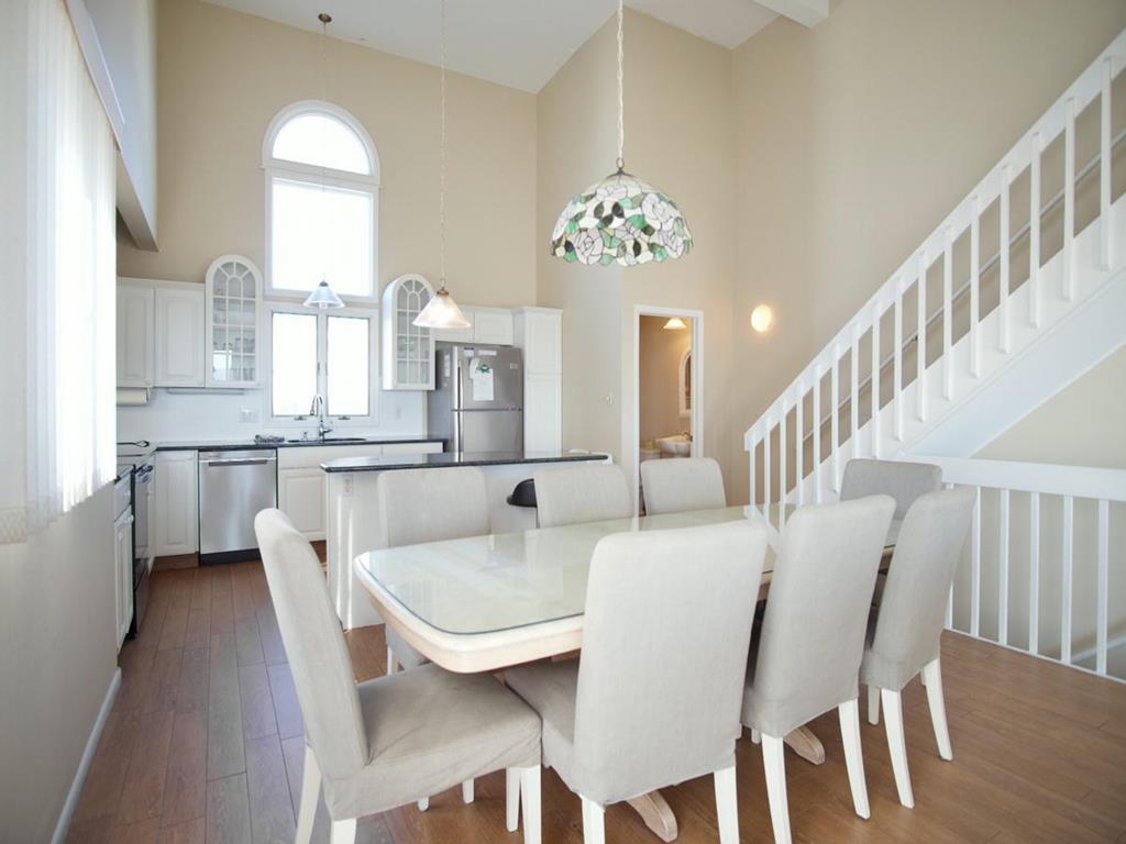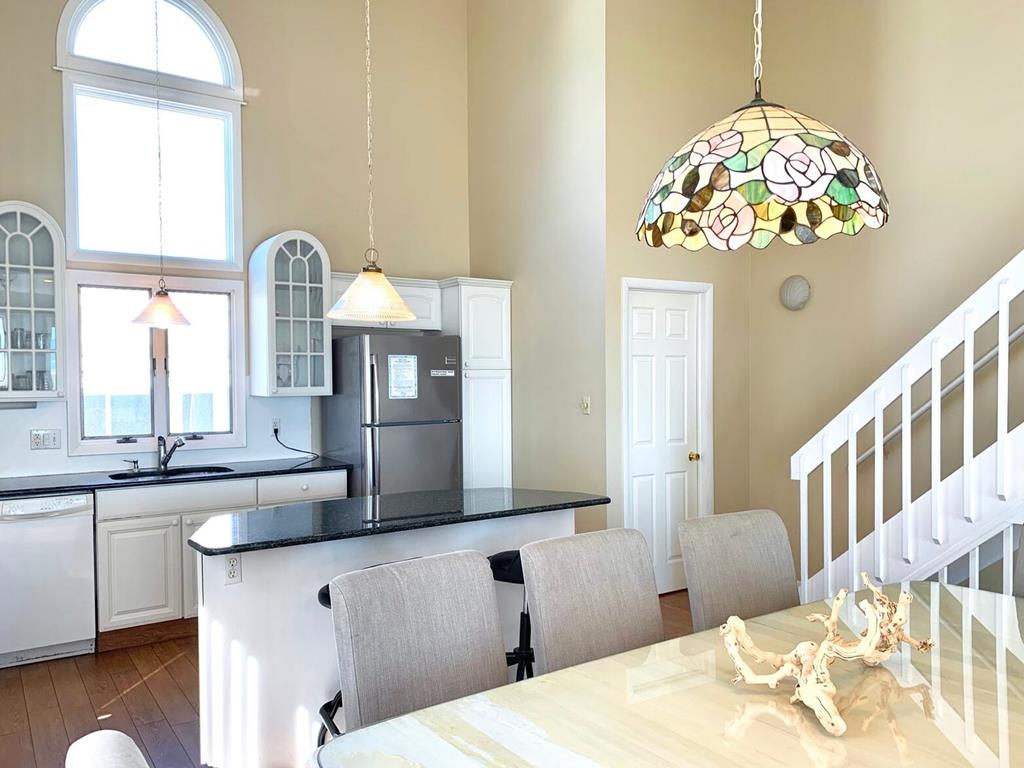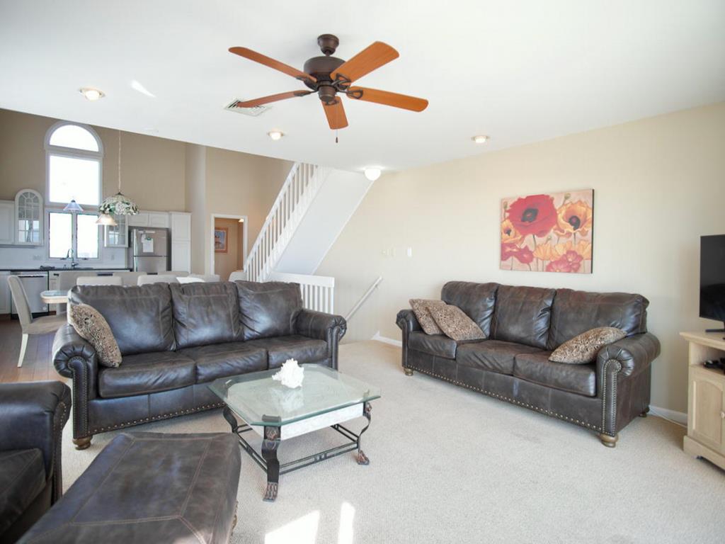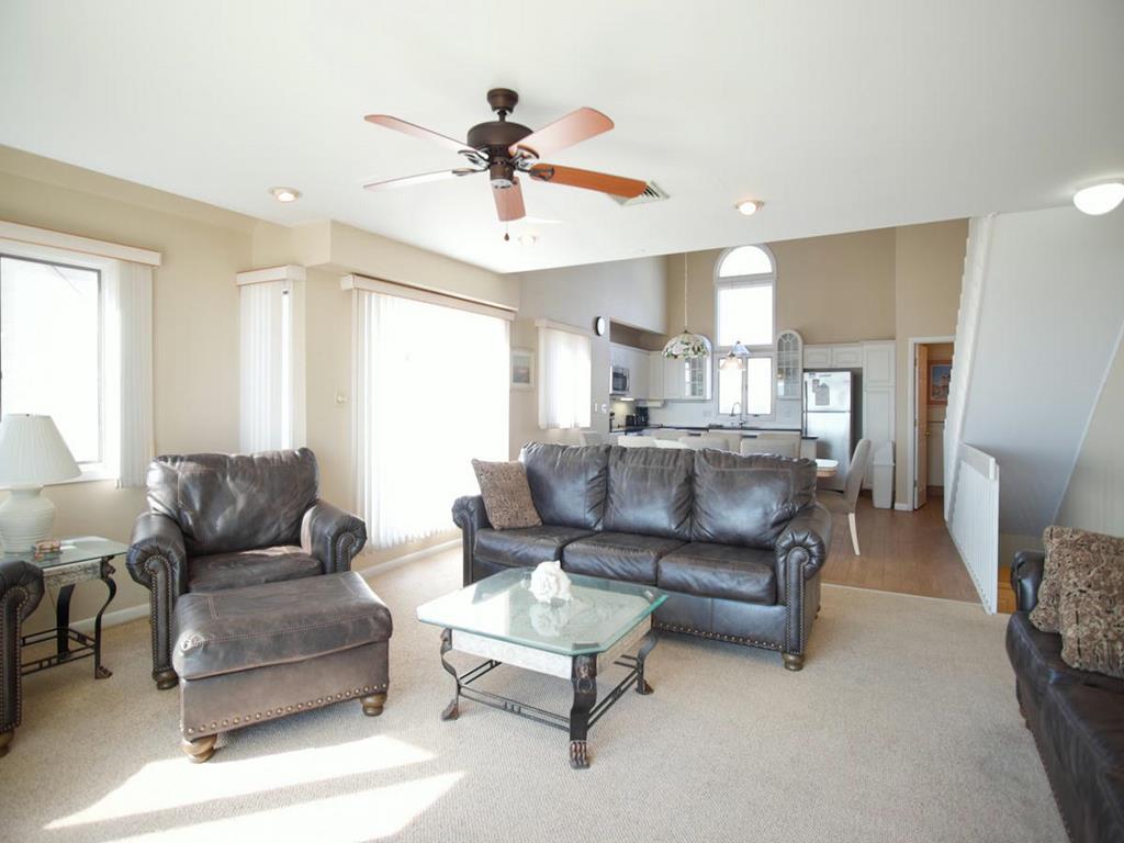 Beachfront Townhouse with Stunning Views!Amenities include ;1st floor master bedroom with full bath and beachfront deck. 2nd bedroom contains 2 sets bunk beds. 3rd bedroom has 2 single beds, TV. There is also a full hall bathroom. 2nd level has living area, dining room, kitchen, half bath and an amazing ocean view deck. Unobstructed views from the deck. 3rd level is the master suite with a queen bed, TV, full bath and sweeping views of the coast line. In total there are three beachfront decks for your viewing pleasure!