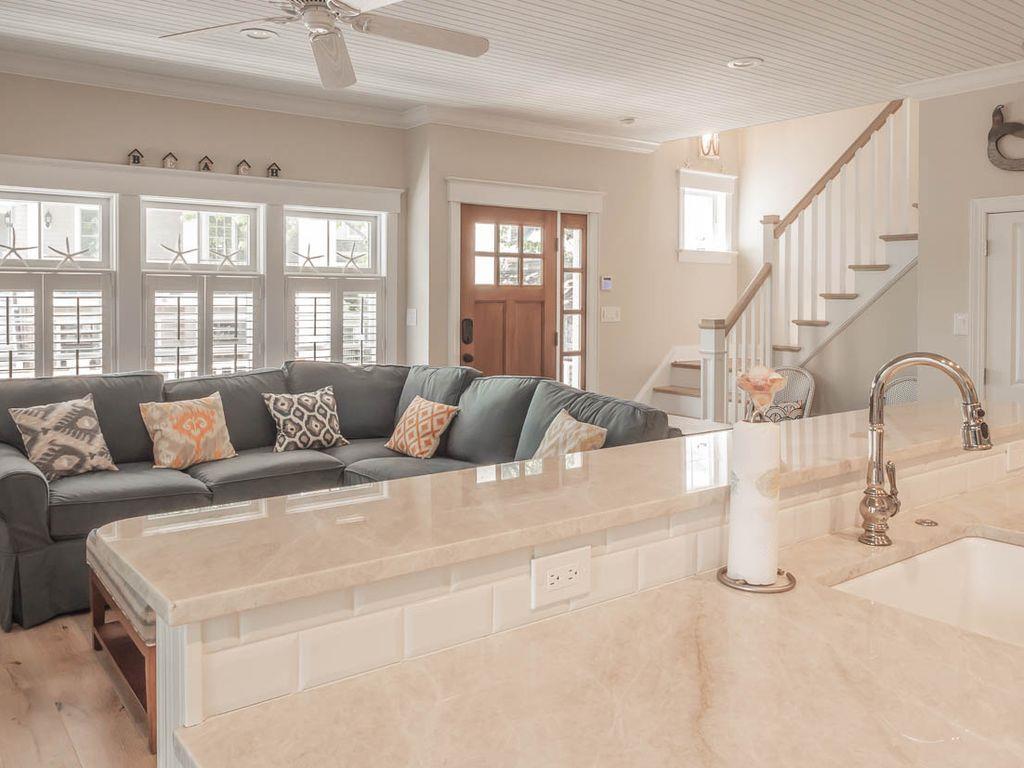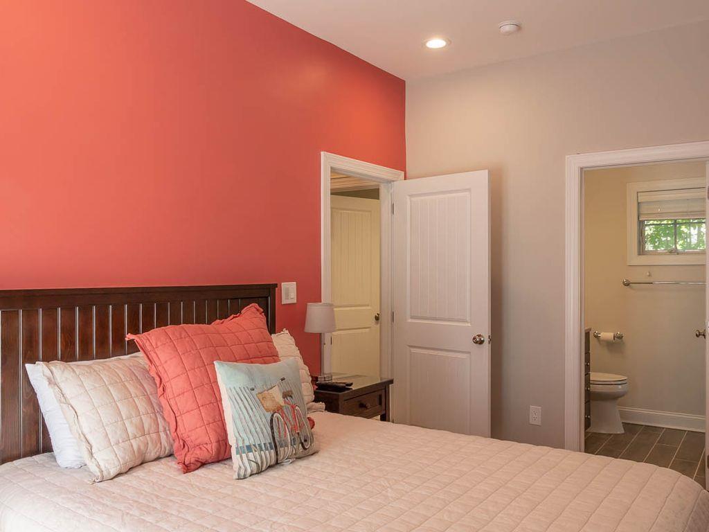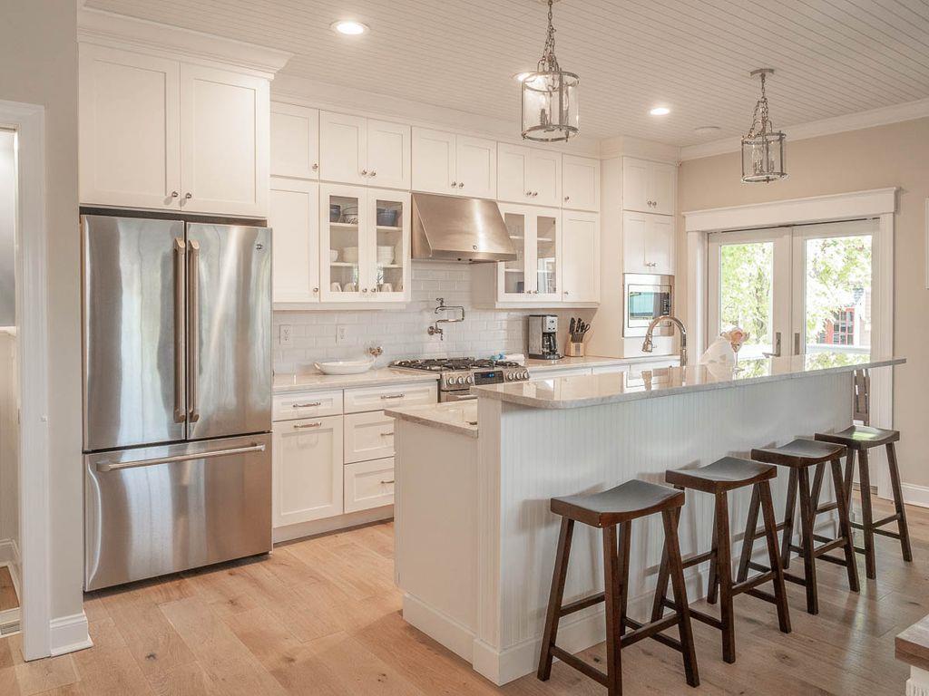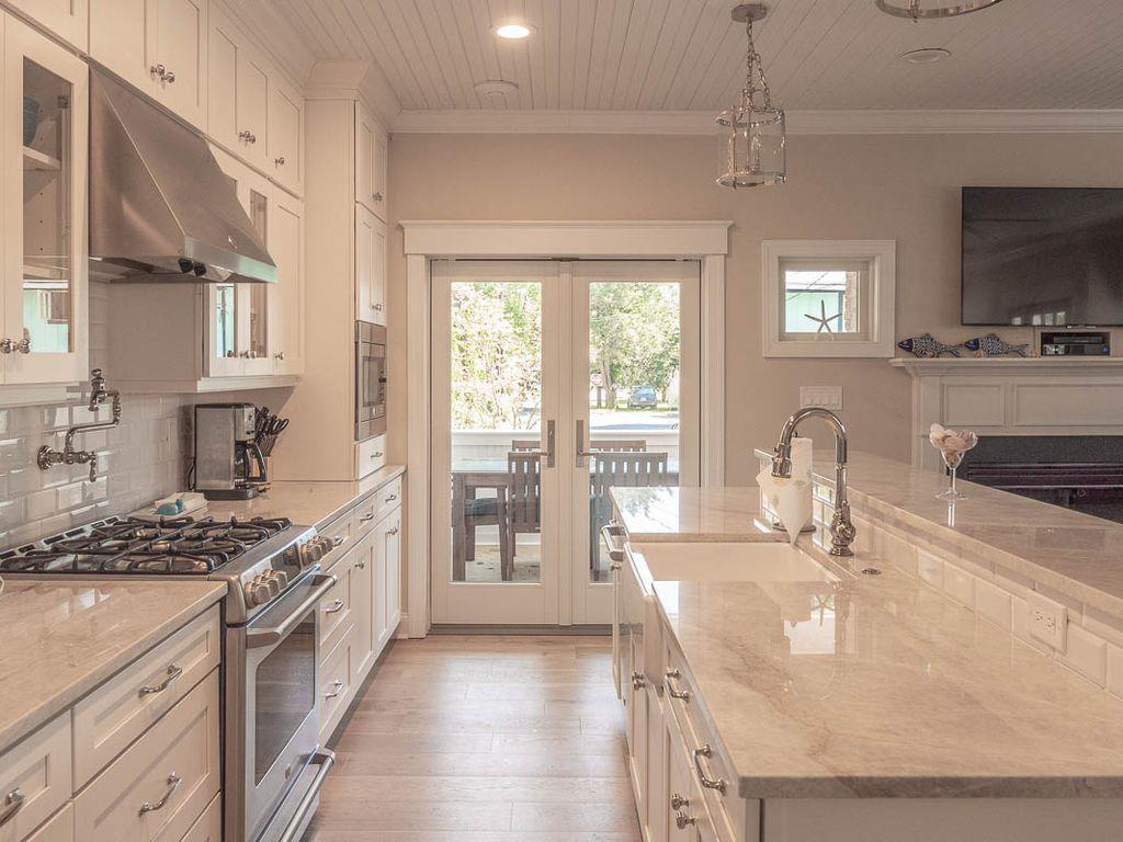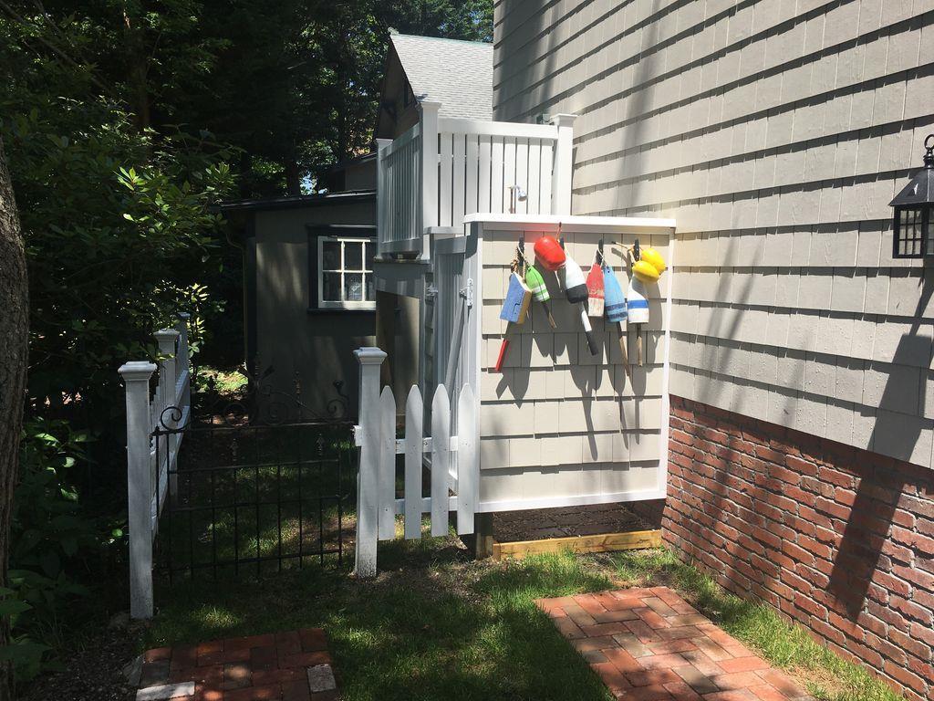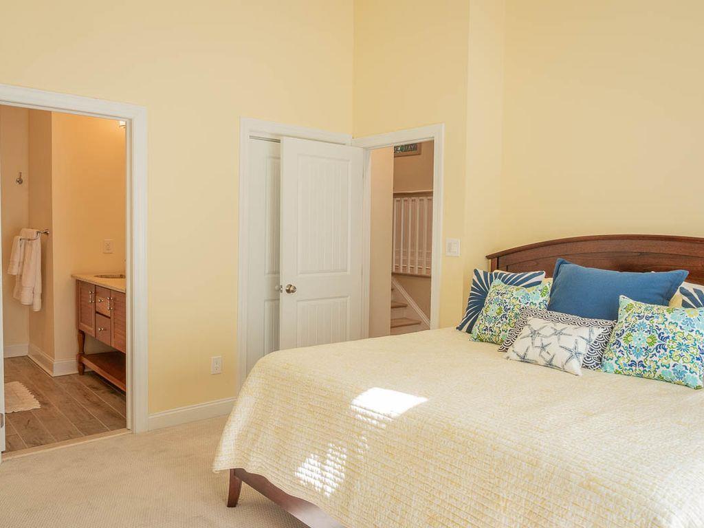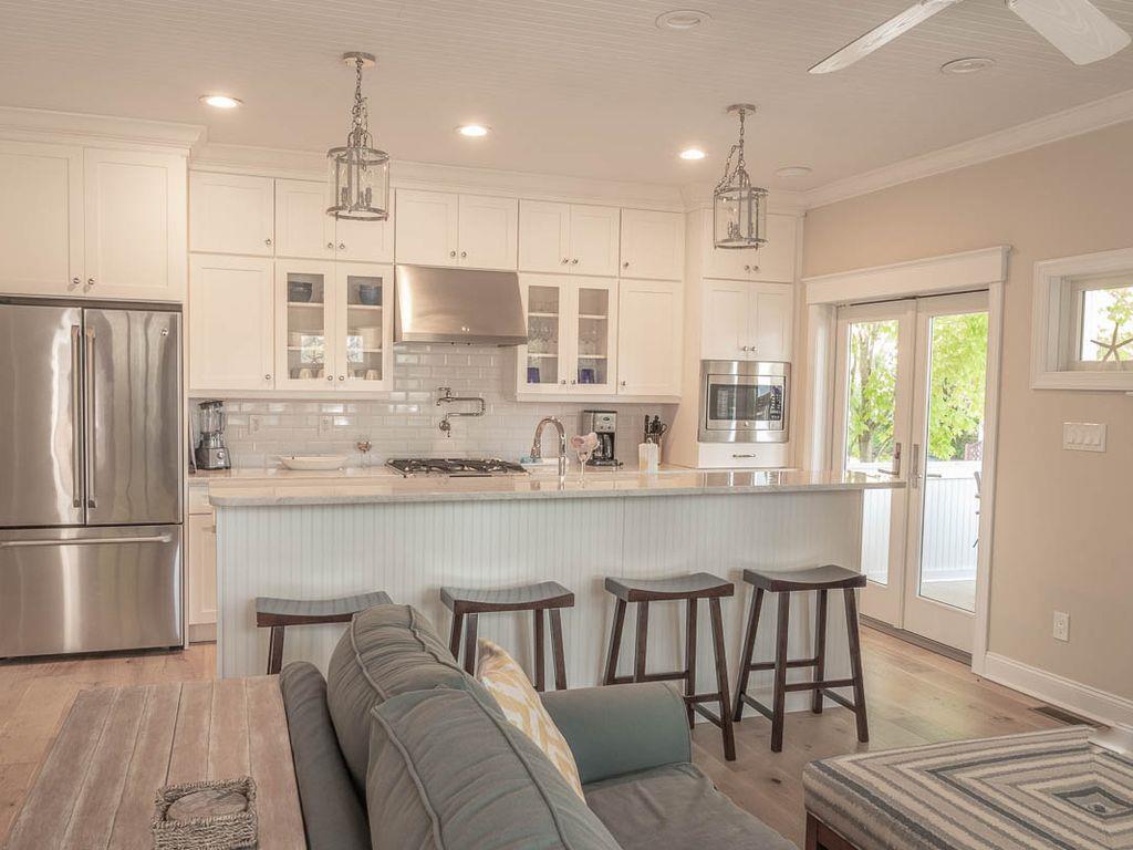 Brand new construction on the historic and tree lined alley of Page Street in the heart of Cape May. Centrally located within walking distance to the beach, churches, gourmet restaurants, Washington Street Mall, adjacent to the Cape May Day Spa, off street parking, 52" flat screen TV in living room, 1,400 square feet of living space with a 300 square feet outdoor living room porch, gourmet kitchen, ceiling fans in all rooms, outdoor shower, complimentary beach service and located on a horse & carriage route. The house consists of 3 bedrooms and 3.5 bathrooms. The master bedroom contains a king size bed, large private bathroom with double sinks and private, Juliet balcony. Bedroom 2 contains a queen size bed with a twin size trundle, private bathroom and private walk out balcony. Bedroom 3 contains a full over full bunk bed and a full hallway bathroom with a tub. Each bedroom has a ceiling fan and 42" HDTV. Rental includes professional cleaning before check in and on-call professional property management service.