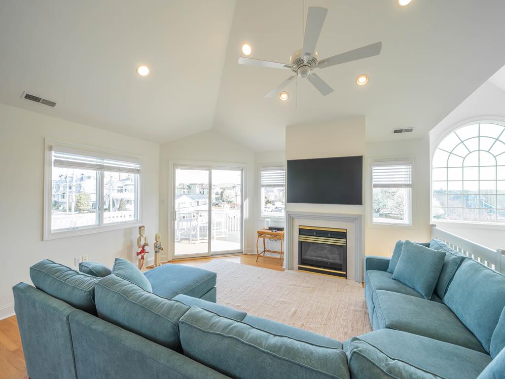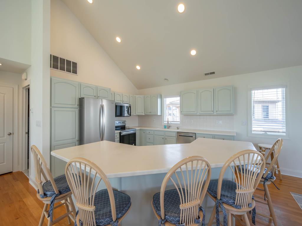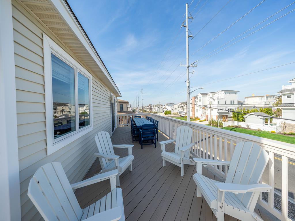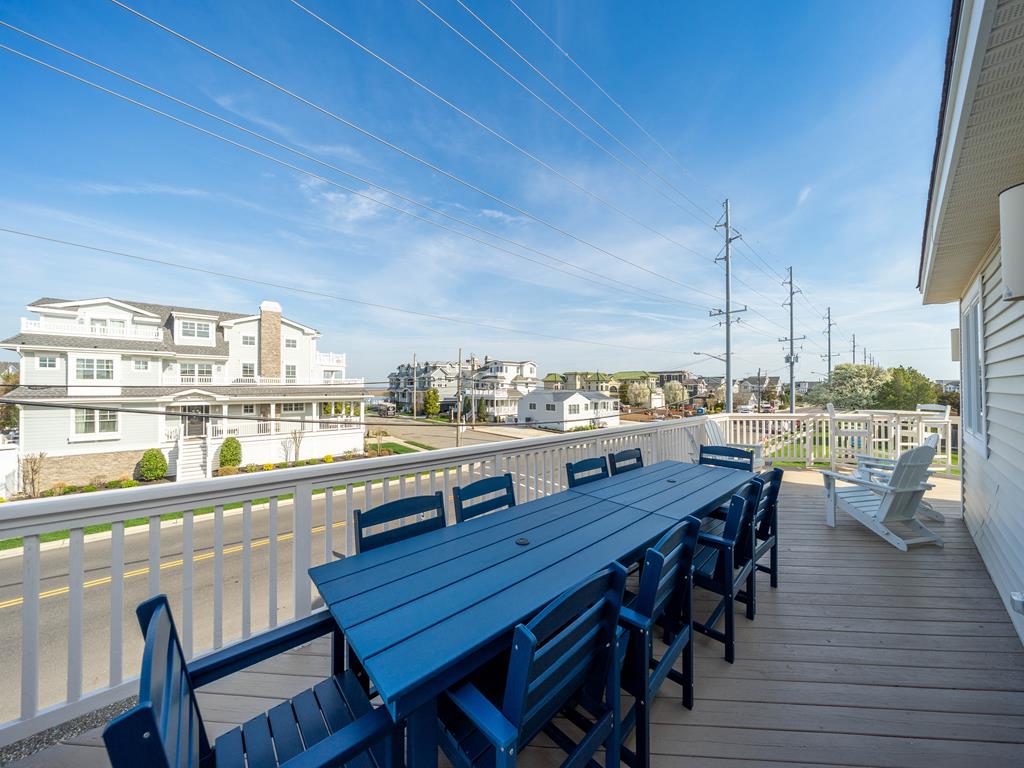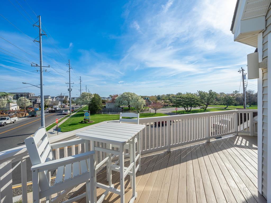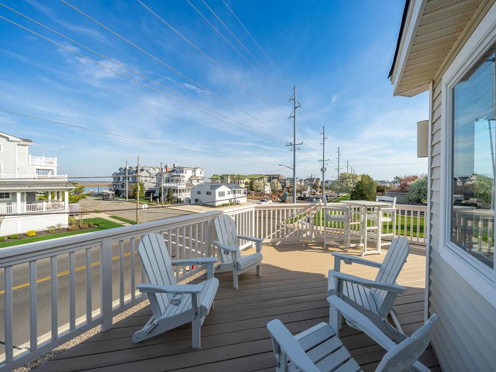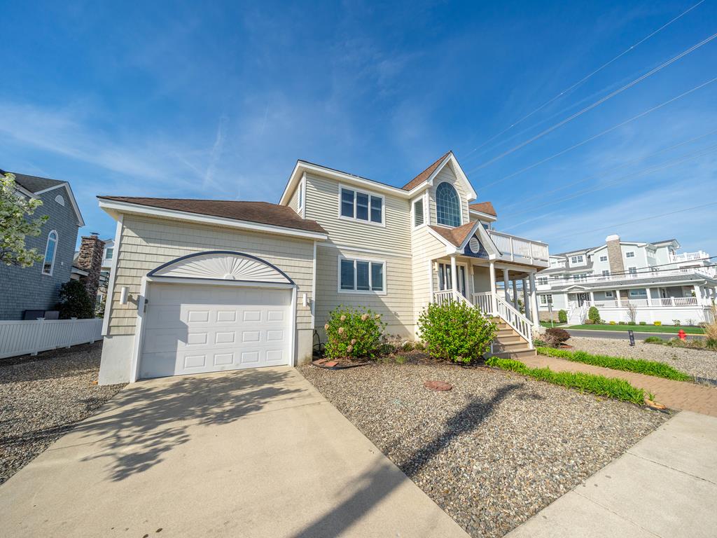 Updated 2 story upside down style home located in the south end of Avalon, some bay views and a short 2 block walk to Avalon's best beaches. The first floor consists of 3 large bedrooms, laundry room off the garage, open two story foyer and a family room with sliding glass doors out to a rear deck and back yard. The 2nd floor consists of a spacious great room with cathedral ceiings, updated painted cabinets, new appliances, living and dining area open to a wrap around deck with views of the bay. There is a powder room and the primary bedroom suite with large walk-in closet, bathroom with double sink, walk-in shower and jacuzzi tub. New paint, carpet, and furniture throughout. Ideal home for the larger family, off-street parking, garage for storage and outdoor shower and bbq grill. Linens and beach equipment included. 8 beach chairs, 2 beach umbrellas, beach cart provided.