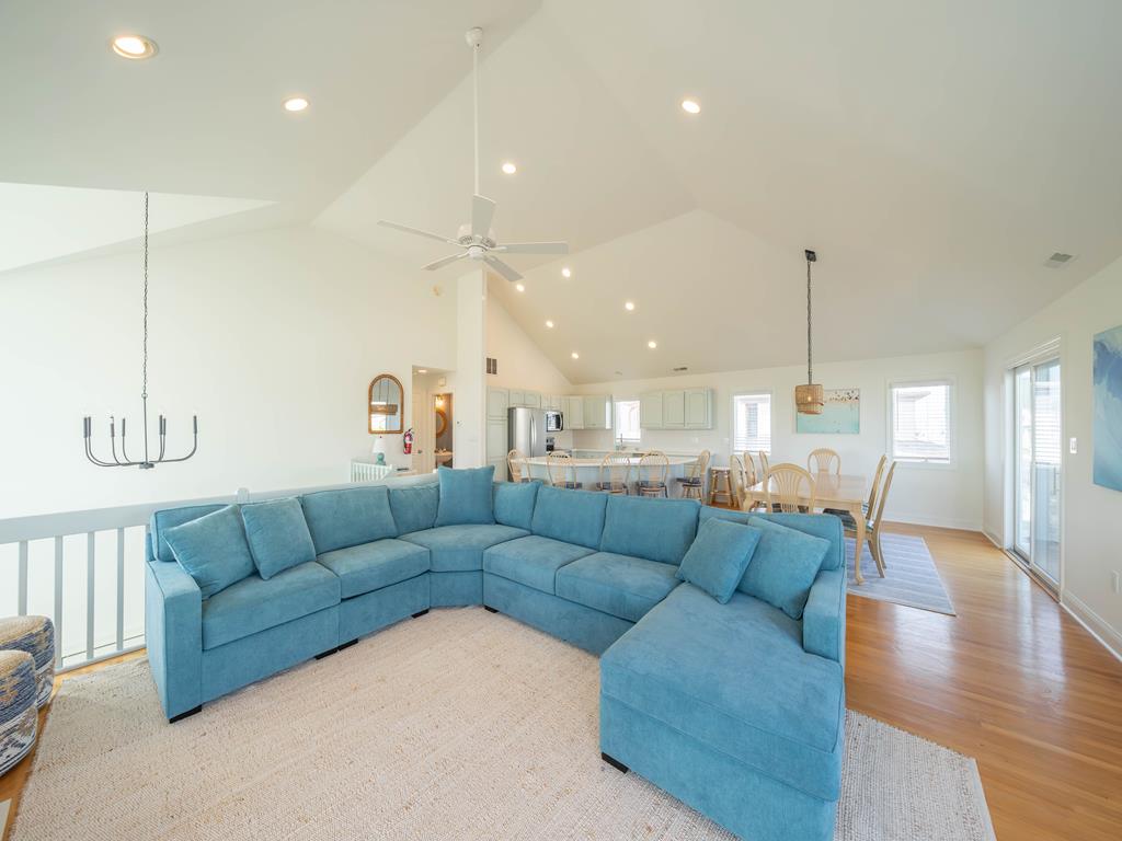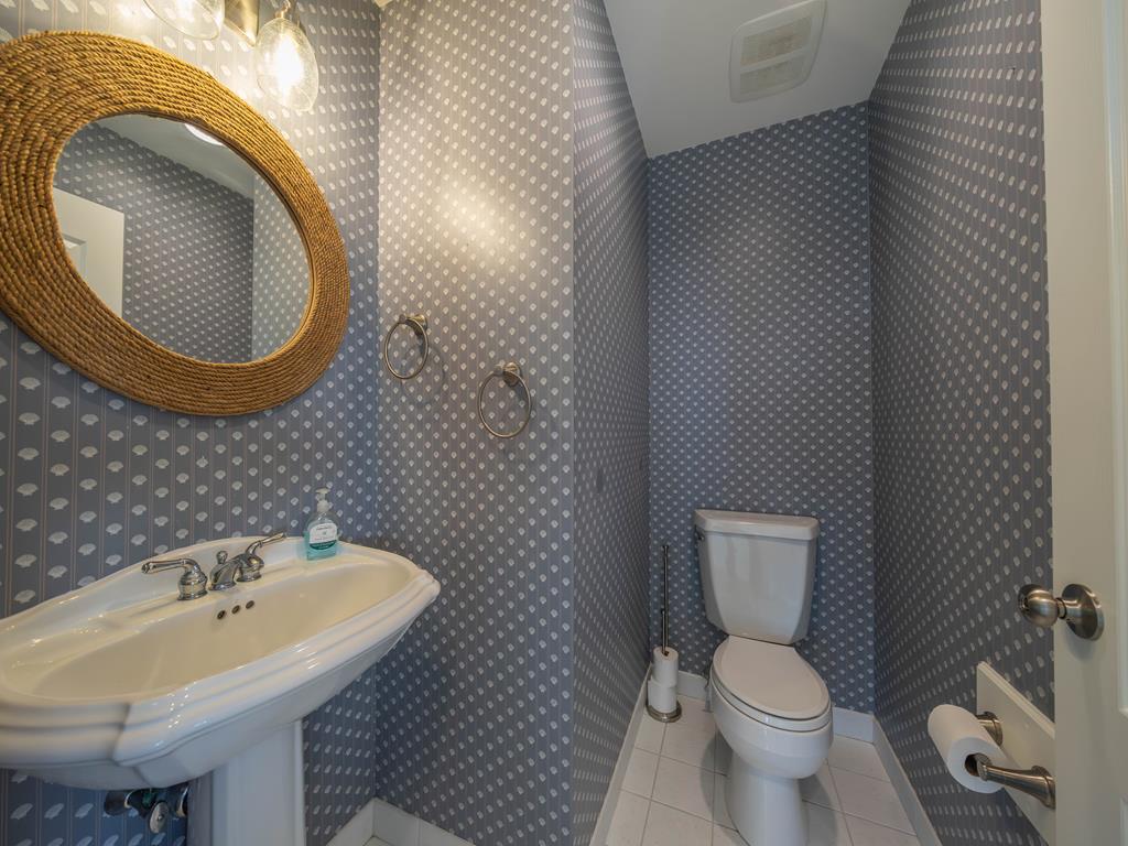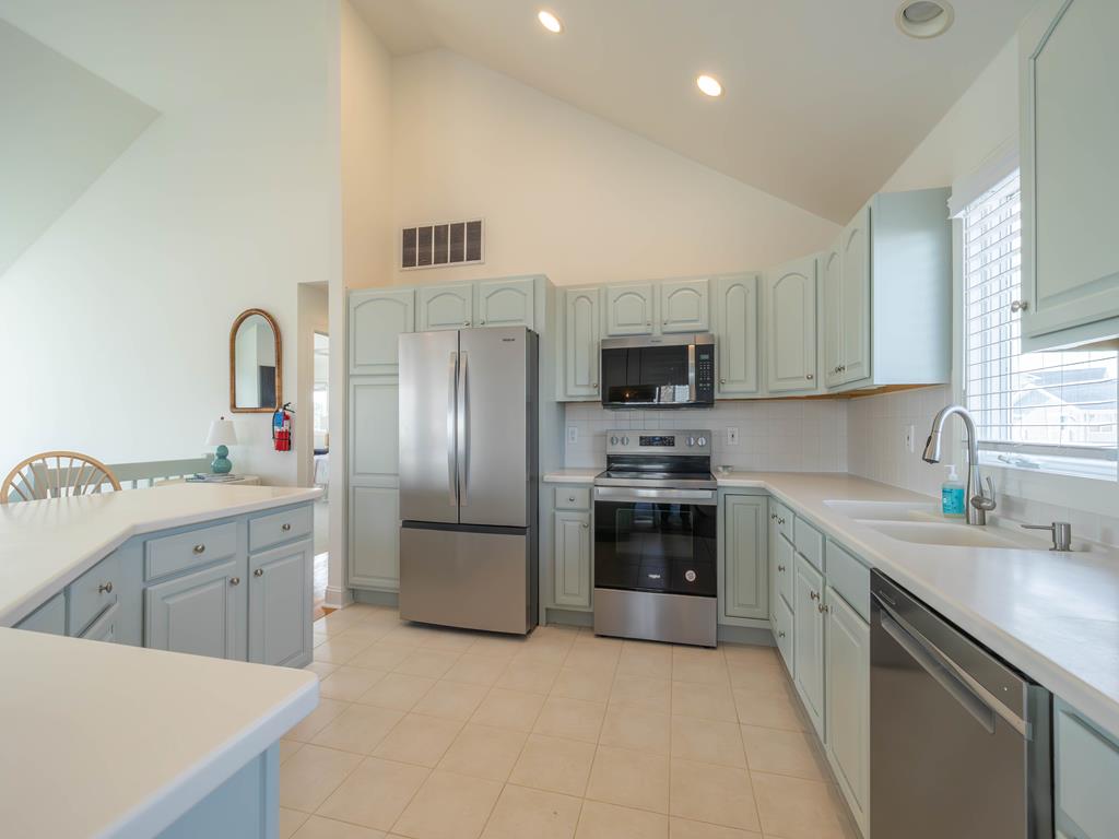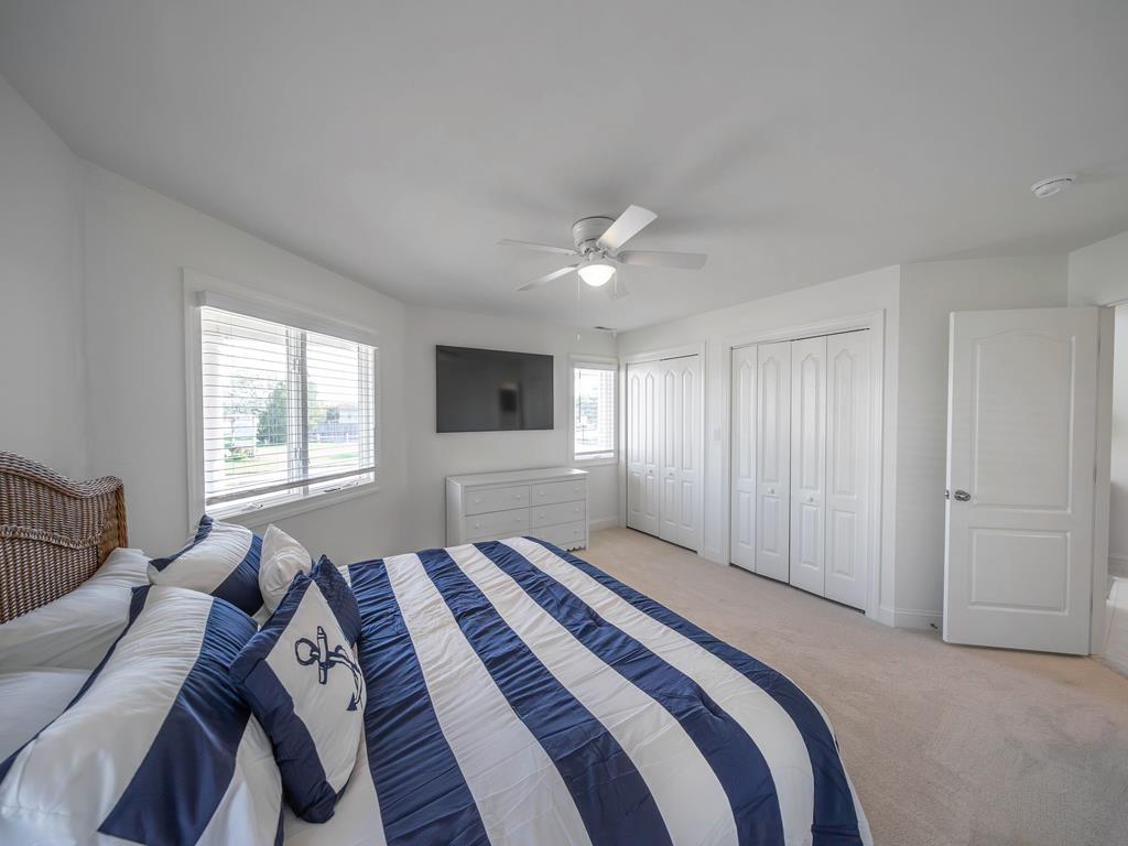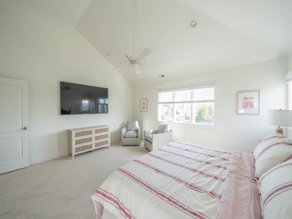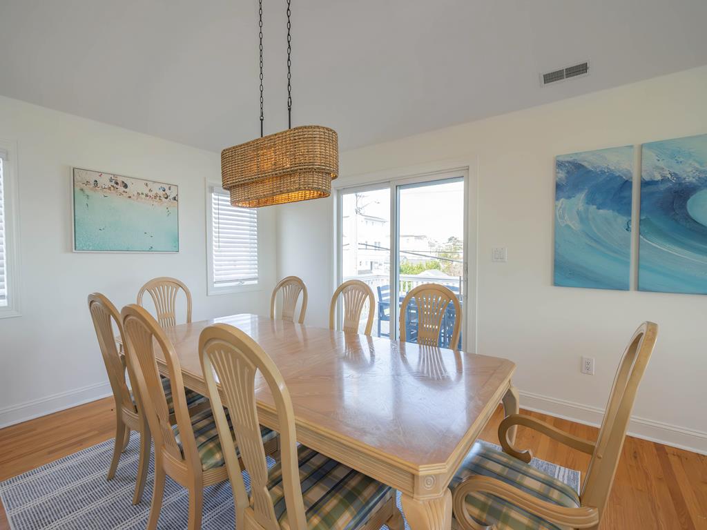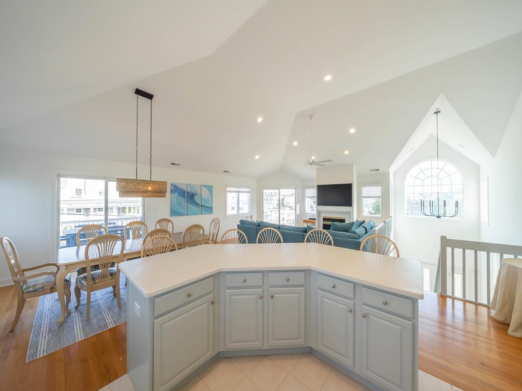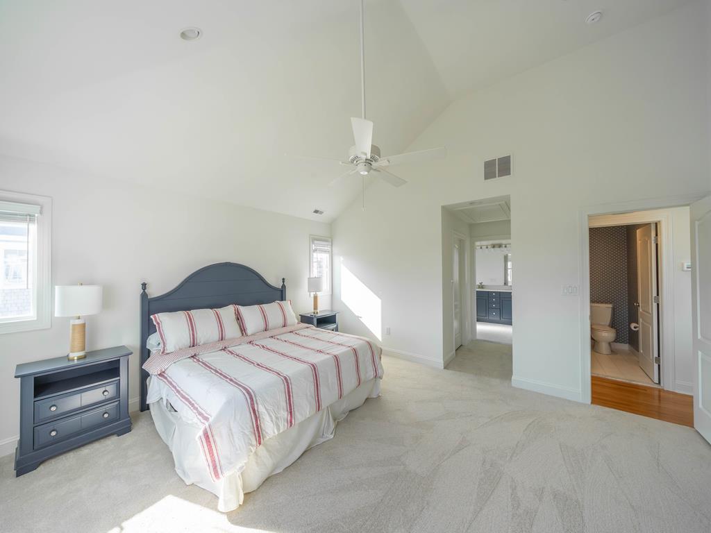 Updated 2 story upside down style home located in the south end of Avalon, some bay views and a short 2 block walk to Avalon's best beaches. The first floor consists of 3 large bedrooms, laundry room off the garage, open two story foyer and a family room with sliding glass doors out to a rear deck and back yard. The 2nd floor consists of a spacious great room with cathedral ceiings, updated painted cabinets, new appliances, living and dining area open to a wrap around deck with views of the bay. There is a powder room and the primary bedroom suite with large walk-in closet, bathroom with double sink, walk-in shower and jacuzzi tub. New paint, carpet, and furniture throughout. Ideal home for the larger family, off-street parking, garage for storage and outdoor shower and bbq grill. Linens and beach equipment included. 8 beach chairs, 2 beach umbrellas, beach cart provided.