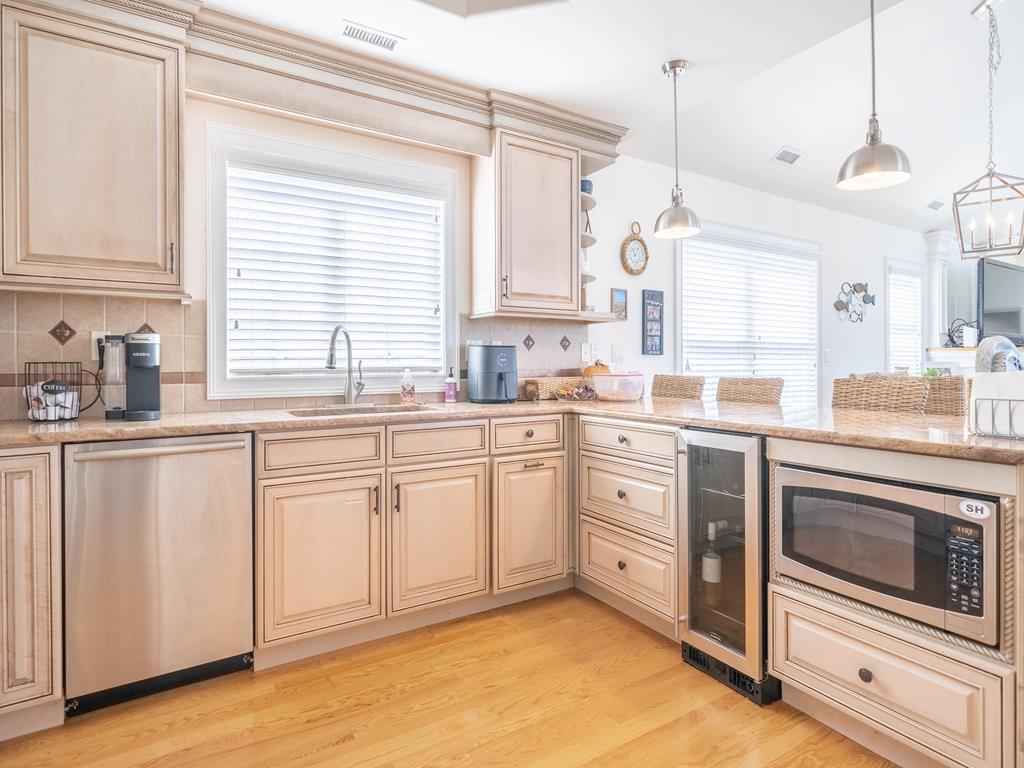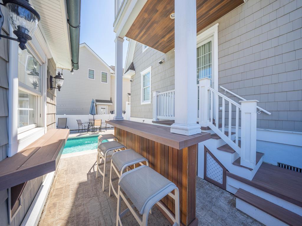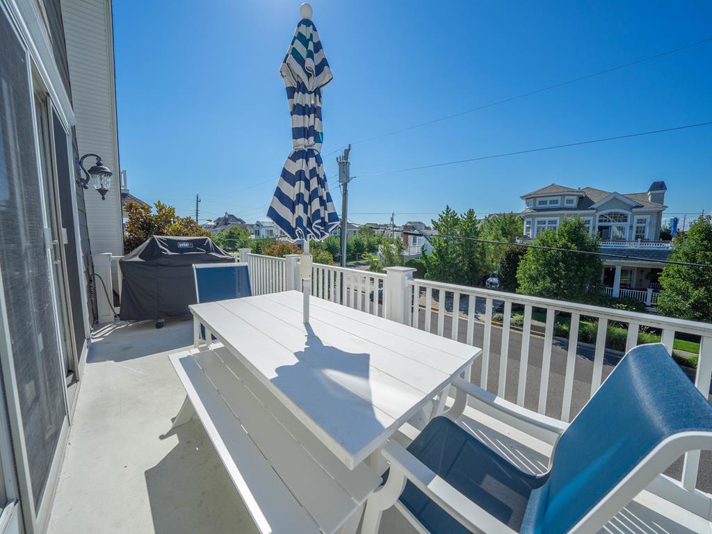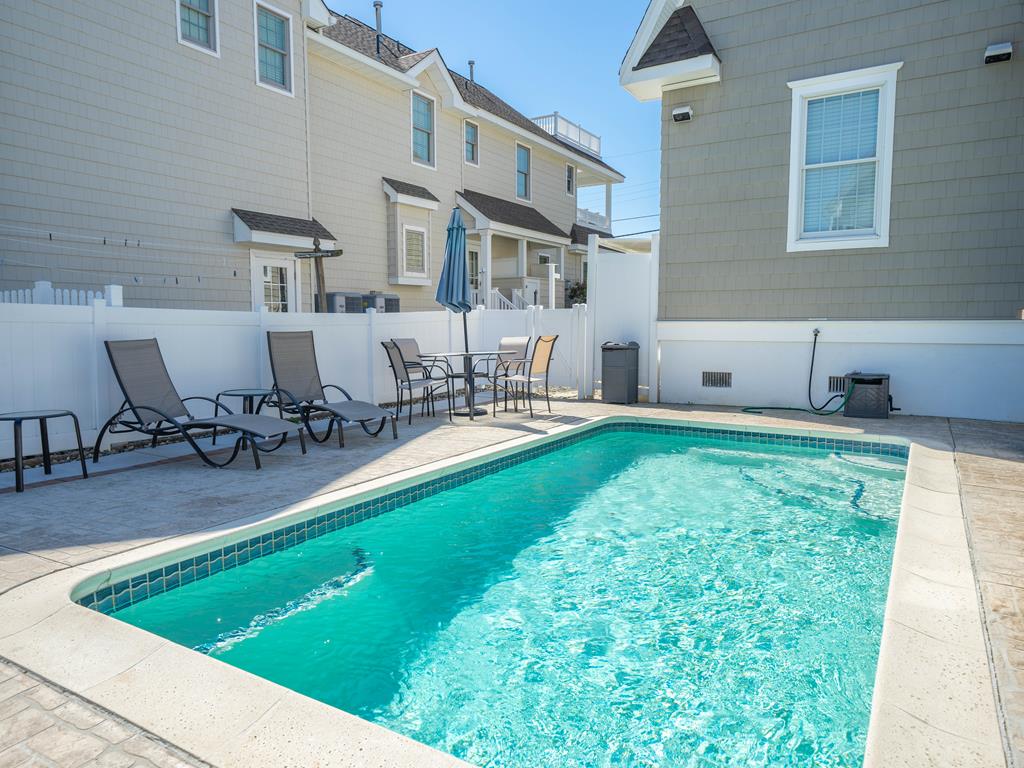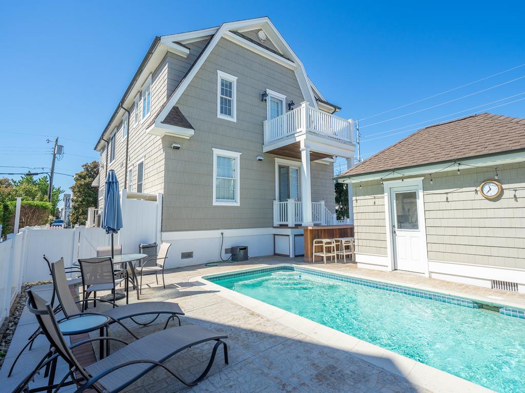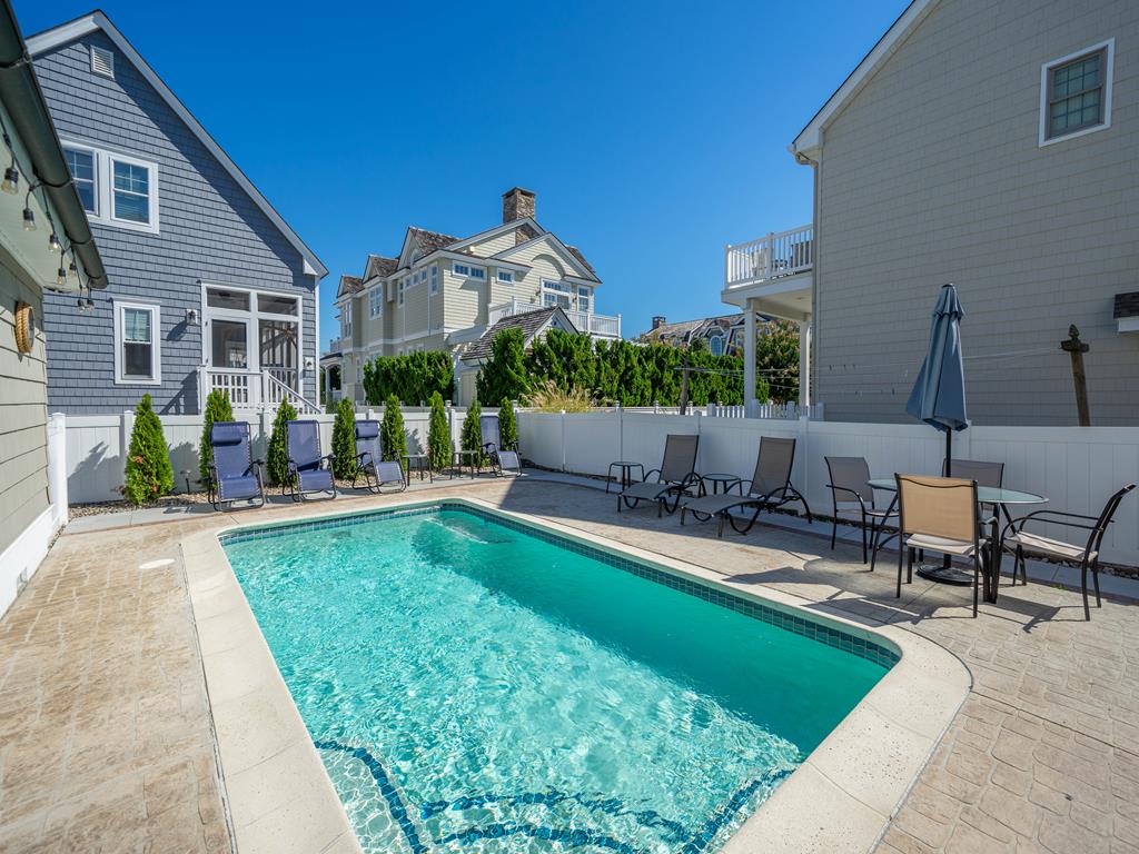 FRIDAY TO FRIDAY rental opportunity. Welcome to this exceptionally located single-family Stone Harbor beauty. Offering the ultimate convenience of a short walk to the best beaches. The property has outstanding curb appeal from this slightly larger corner lot with pristine landscaping. This upside-down layout includes 5 bedrooms along with 4.1 baths. The custom home beautifully blends interior square footage while maximizing exterior space. Walking through the front door, the spacious foyer flows into 4 bedrooms, three full baths, and a large den. Sleeping arrangements include 4 queen beds, 1 double (sofa bed) and 1 single bed (above the bunk). Two bedrooms on the first floor share a charming covered deck facing 86th street. The den towards the back provides easy access to the in-ground pool, cabana, lounging area, and outside bar. This backyard oasis is ideally set up for relaxing and entertaining. Moving up to the second floor, you are greeted with an open-concept layout with tall cathedral ceilings. The sunlight-filled space highlights a living area, dining table, and equipped eat-in kitchen. Custom cabinetry and high-end appliances are a chef s dream on vacation. Beach views can be enjoyed from the spacious second-level deck, which also includes a grill. Beyond the kitchen is the master suite with a private balcony overlooking 2nd Ave and the impressive backyard. This suite contains a king bed, a double-vanity bathroom, and a walk-in closet. Other amenities include 2 full-size refrigerators, 2 washers and dryers, 2 off-street parking spots, an outside shower, and beach equipment. Secure this vacation dream home today.
